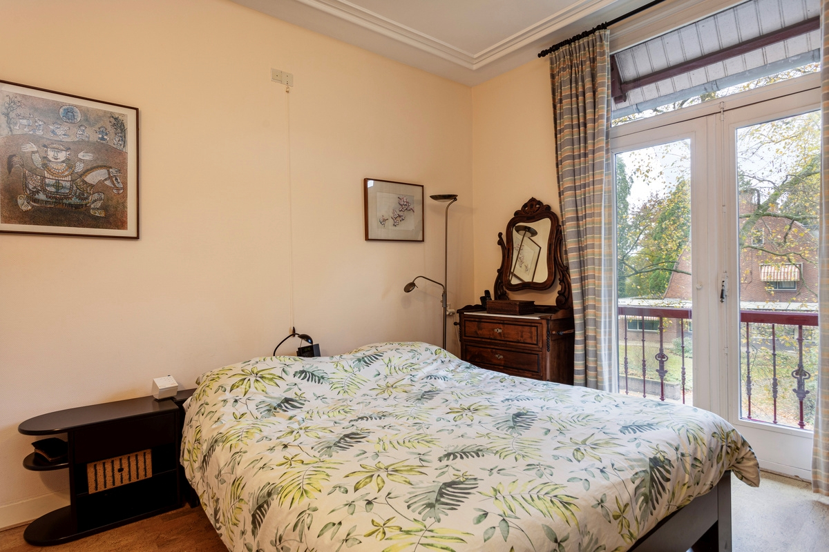 Overloop, vide, 2 slaapkamers waarvan 1 met openslaande deuren naar een Frans balkon. De andere slaapkamer is voorzien van een wastafel en vaste kast en wordt op dit moment als 2e kantoor gebruikt. Ruime badkamer met dubbele wastafel, spiegelkast, douche, bad en voorzien van een vaste kast en ventilatie. De wand en vloertegels zijn in een neutrale kleurstelling uitgevoerd. Separaat 2e toilet met fonteintje en een raam.
