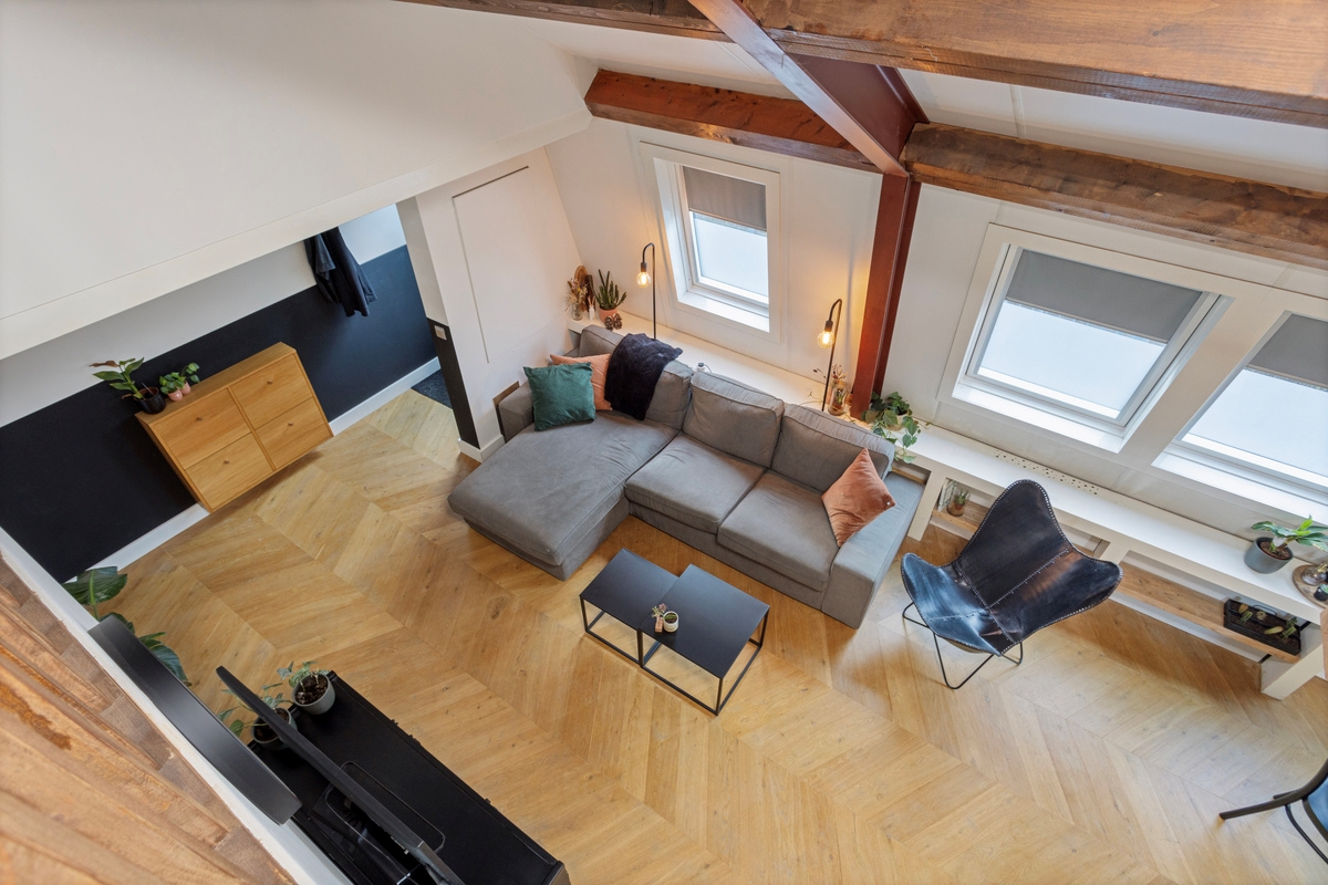 • Ruime, lichte woonkamer met Velux dakramen