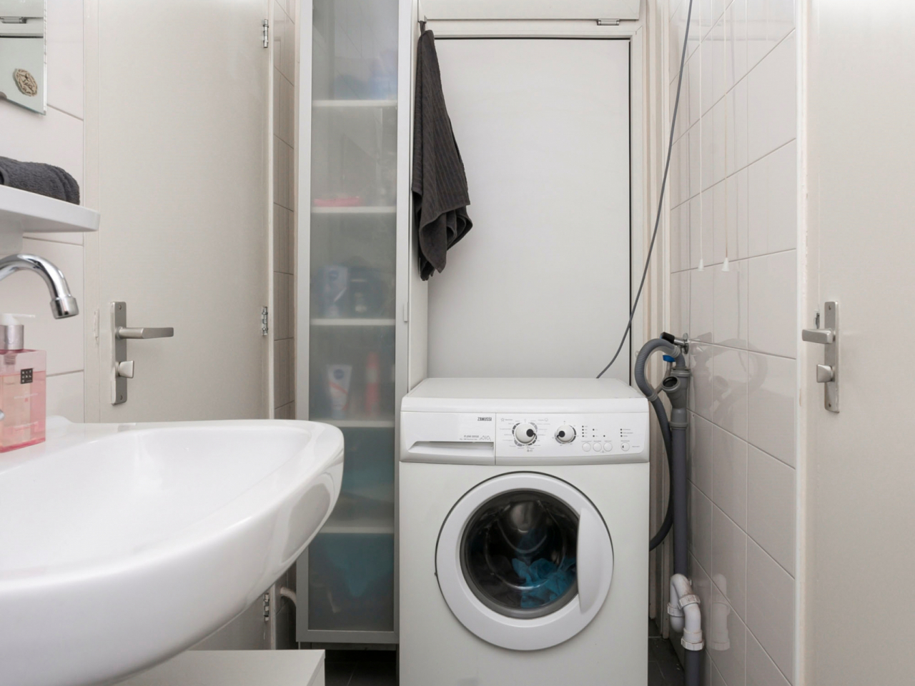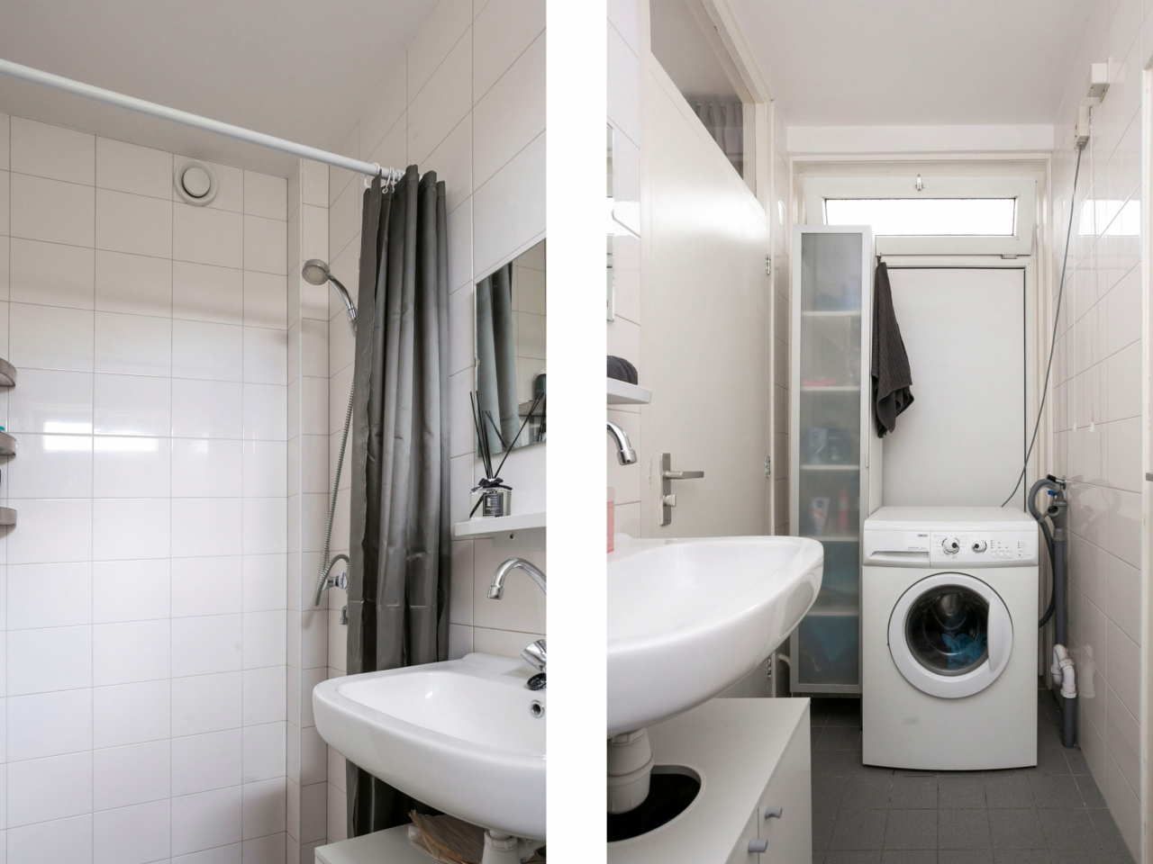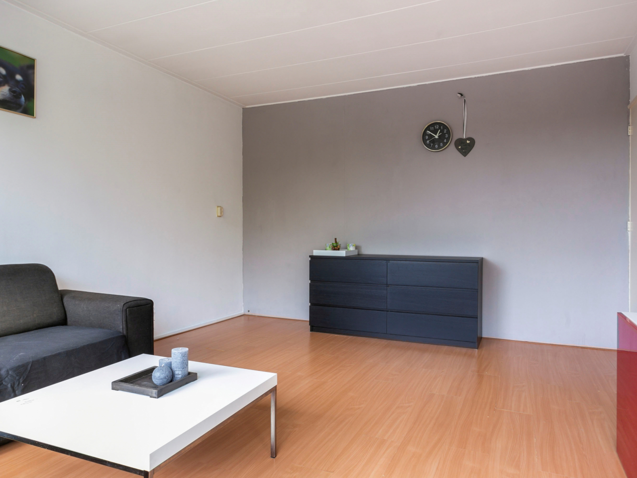 Lichte woonkamer met laminaatvloer en toegang naar het tweede - op het oosten gelegen - balkon met uitzicht op de straatkant en vele bomen. De eerste slaapkamer bevindt zich aan de voorkant van het complex, deze geeft ook toegang tot het balkon gelegen op het oosten. De badkamer is voorzien van een wastafel, een douche en wasmachine-aansluiting. De tweede slaapkamer is aan de achterkant gelegen en beschikt over inbouwkasten waarin ook de warm water geiser geplaatst is.