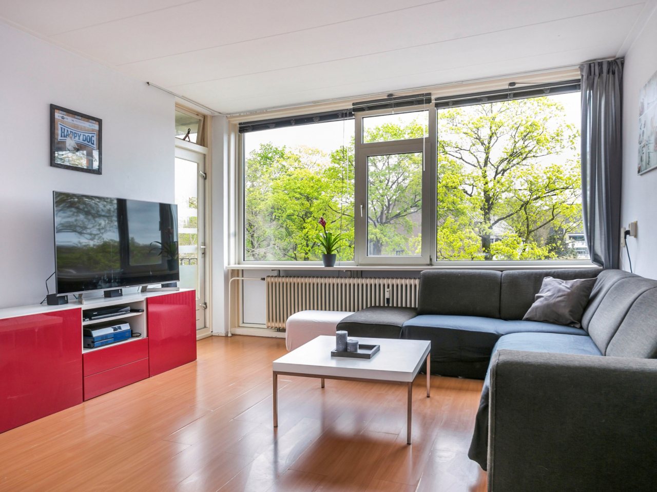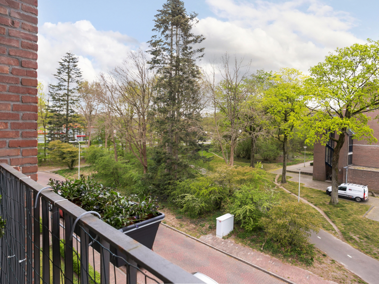 Het appartement bevindt zich op de bovenste etage (3e) en biedt mede door de grote raampartijen een fijn uitzicht.