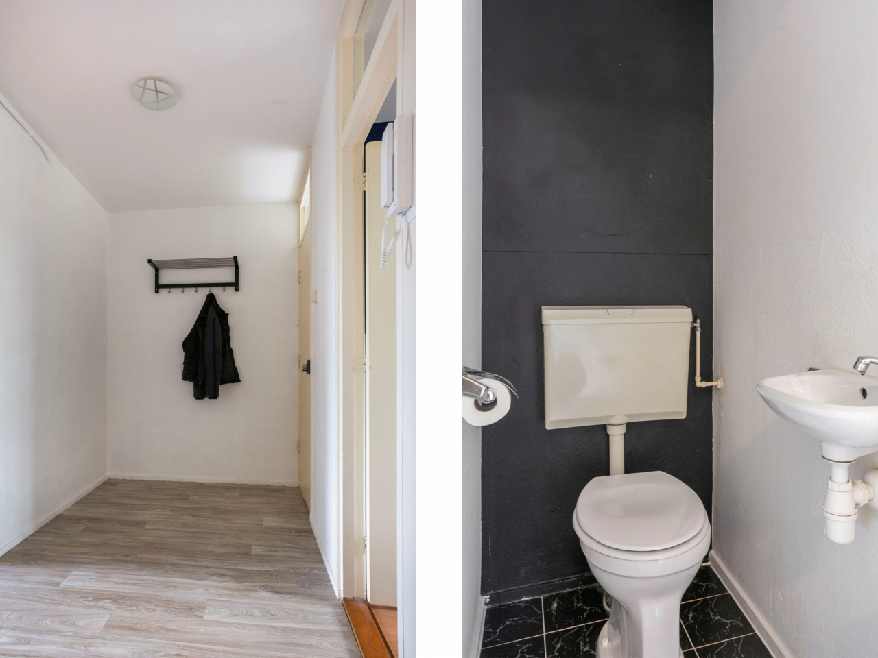 Entree, ruime hal die toegang biedt tot de meeste vertrekken, met meterkast en een toilet met fonteintje.