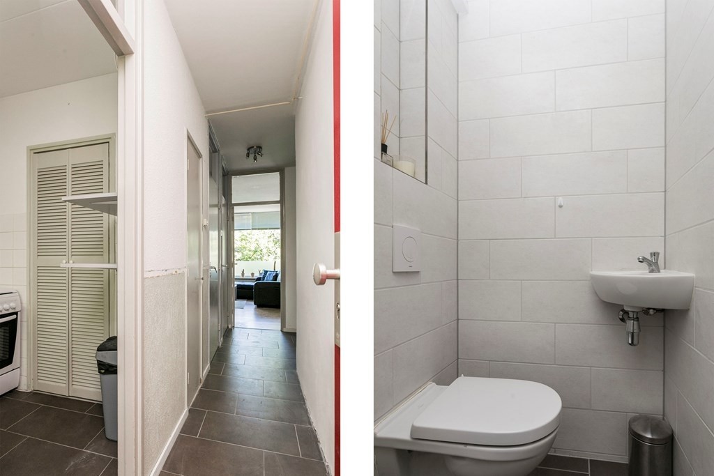 Drie ruime en lichte slaapkamers waarvan twee aan de galerijzijde en één aan de achterzijde met toegang tot het balkon. Moderne betegelde badkamer (2013) voorzien van een wastafelmeubel met spiegelkast, inloopdouche met stortdouche en wasmachine aansluiting. Apart toilet (2013) met fonteintje en nis.