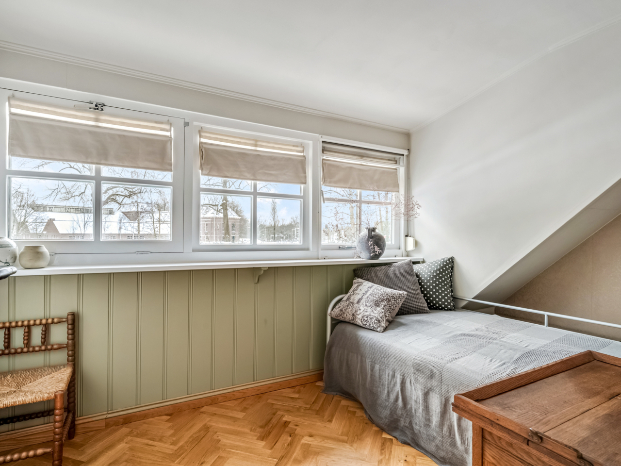 De tweede slaapkamer is voorzien van een dakkapel. Beide slaapkamers en de overloop hebben houten vloeren.