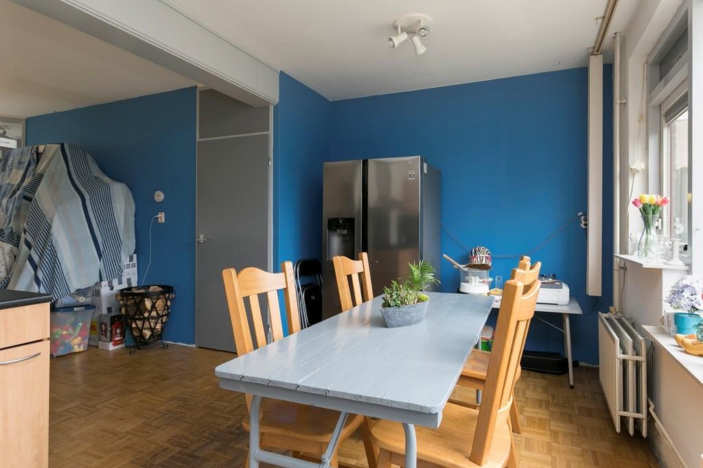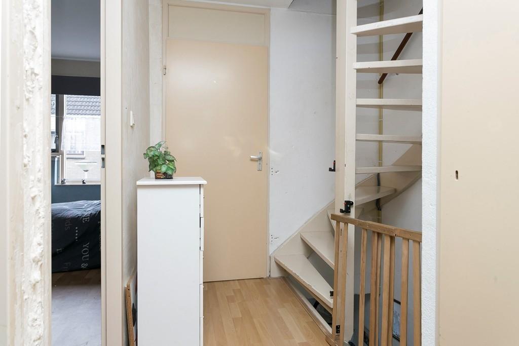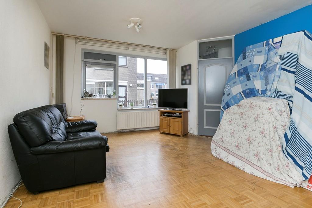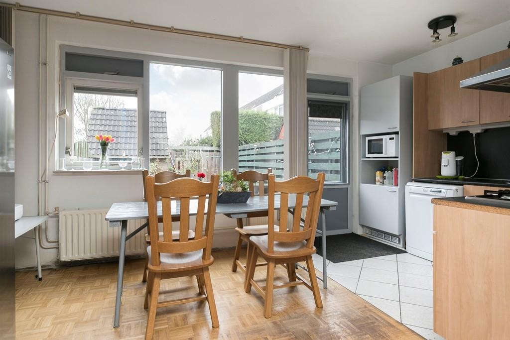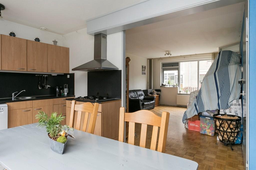 Hal/entree met garderobe, meterkast (8 groepen, vernieuwd) en trapopgang naar de 1e verdieping. Vanuit de hal is de straatgerichte ruime en lichte woonkamer bereikbaar. De woonkamer is v.v. een parketvloer. De keuken met daarnaast de eethoek is aan de tuinzijde gesitueerd en beschikt over een 5-pits gaskookplaat en een afzuigkap. In een tussenportaal bevindt zich de toiletruimte met fonteintje.