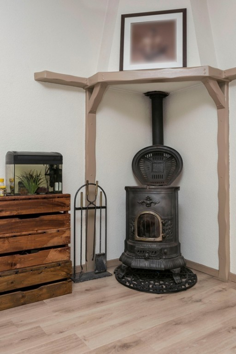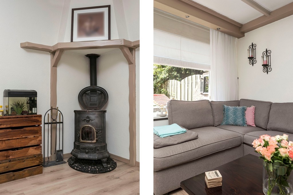 - Tuingerichte woonkamer met trapkast en sfeervolle allesbrander;