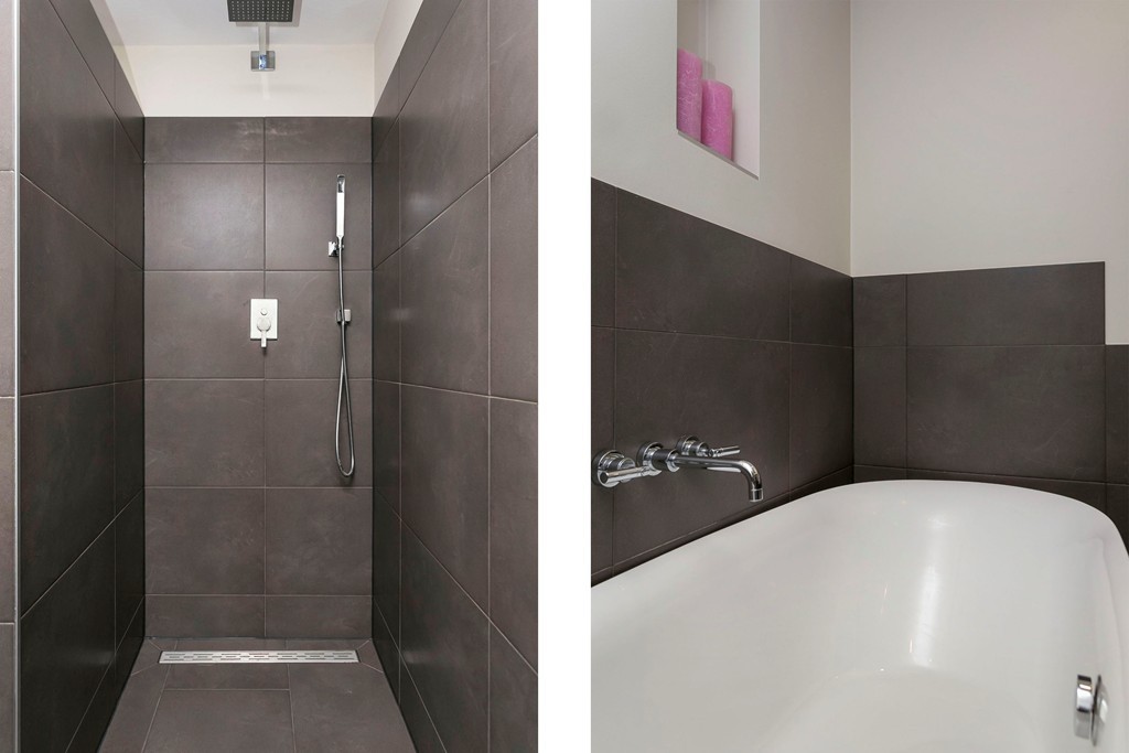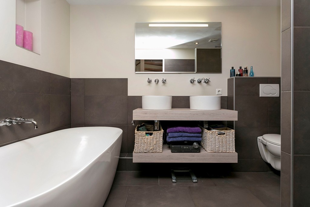 Overloop, 2 ruim bemeten slaapkamers met waarvan 1 met vloerbedekking en deur naar het balkon (met elektrische zonwering) op het westen gelegen. De andere slaapkamer is v.v. laminaat. Beide kamers zijn ook voorzien van een kastenwand. De luxe vergrote badkamer (2013) is voorzien van een dubbele wastafel, inloopdouche, bad, 2e toilet, vloerverwarming en muziekinstallatie (met geïntegreerde boxen in het plafond) waardoor u ontspannen naar uw favoriete muziek kunt luisteren. Vaste trap naar ….