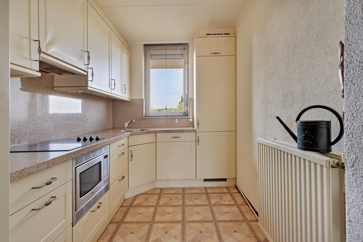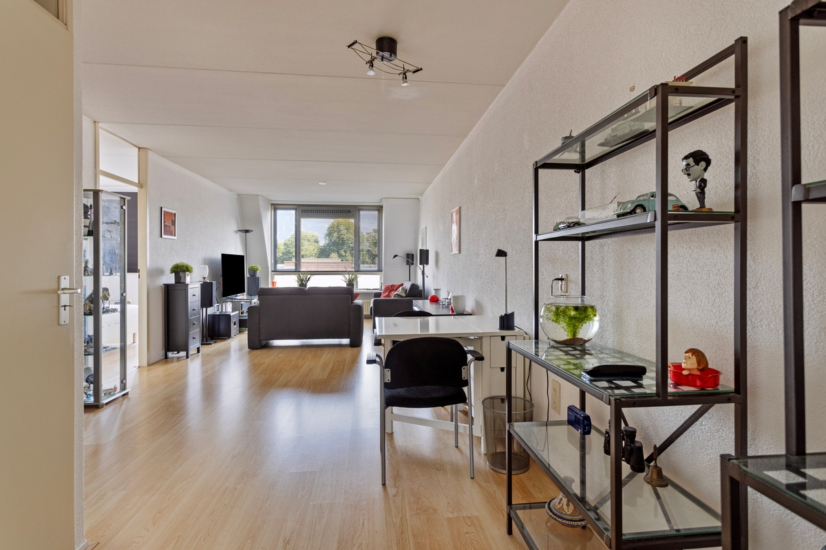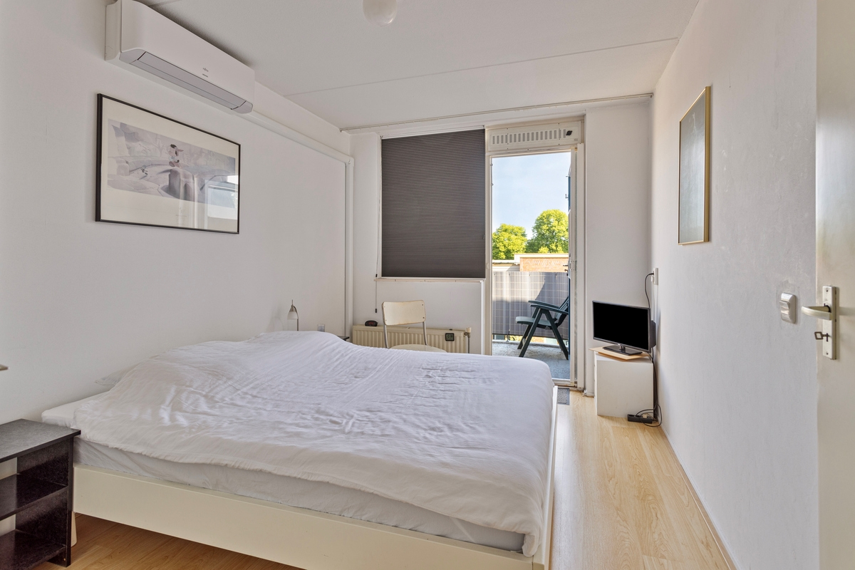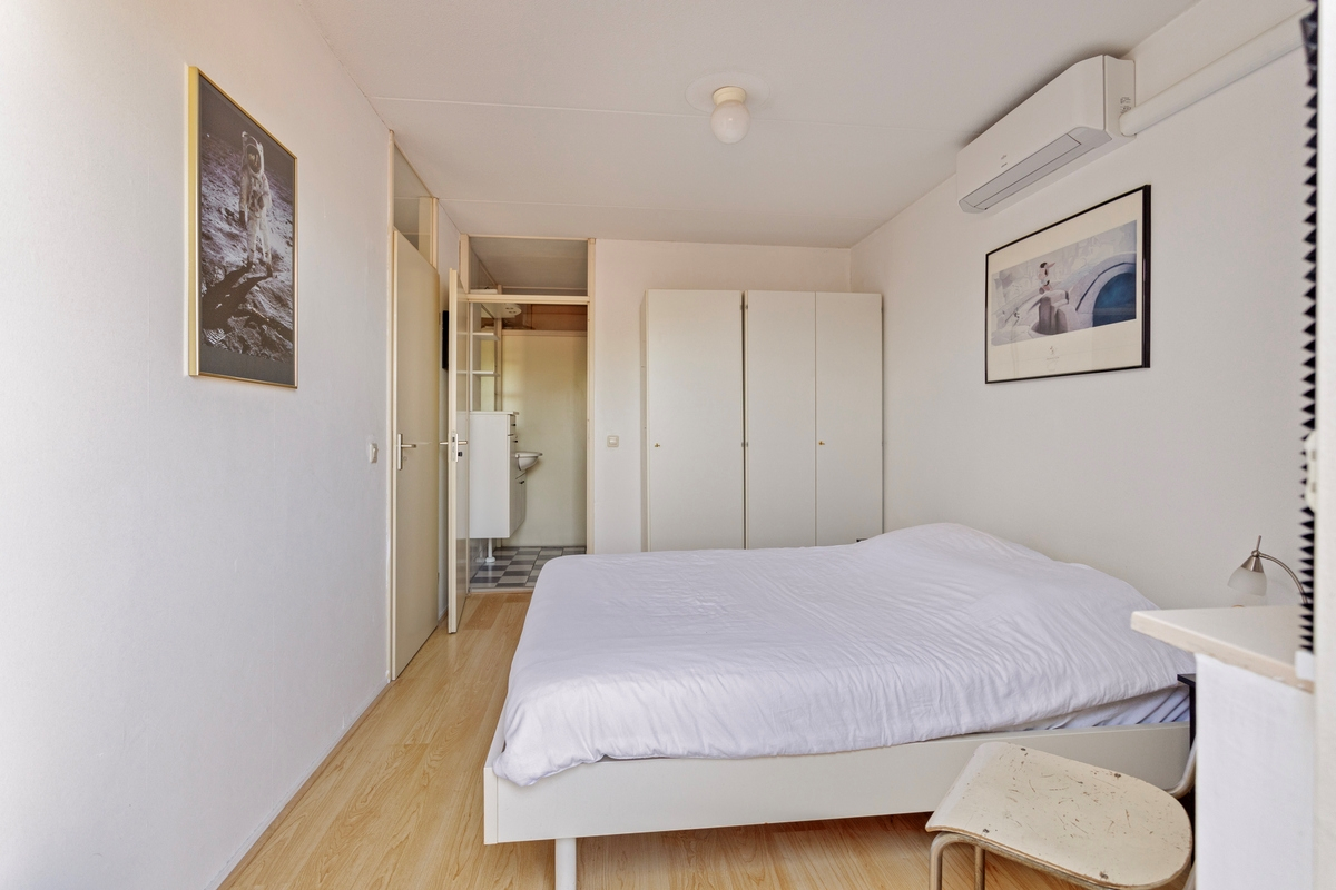 Het appartement bevindt zich op de derde en bovenste verdieping aan het eind van de galerij, dus heerlijk rustig. Entree, hal, handige garderobehoek, moderne meterkast, opbergkast met CV ketel (Intergas - 2024) en de aansluitingen voor de was-apparatuur, een toilet met fonteintje en ventilatie. Lichte woonkamer van ca. 24 m2 met laminaatvloer. Open keuken gelegen aan de galerijkant en voorzien van een spoelbak, elektrische kookplaat met 4 zones, afzuigkap, oven, koel/vriescombinatie en voldoende opbergkasten. De hoofdslaapkamer is via de woonkamer te bereiken en is voorzien van airconditioning voor extra slaapcomfort. Via deze slaapkamer heeft u toegang tot het balkon en ook tot de badkamer. De tot het plafond betegelde badkamer is voorzien van een wastafelmeubel, douchecabine, radiator en ventilatie. De tweede slaapkamer bevindt zich aan de galerijkant en kan eventueel ook als logeerkamer, werk- of hobbykamer gebruikt worden.