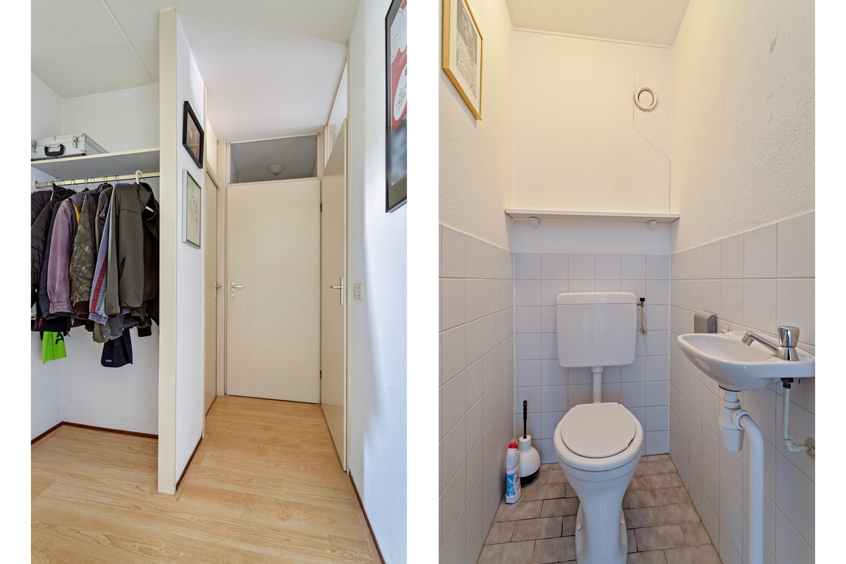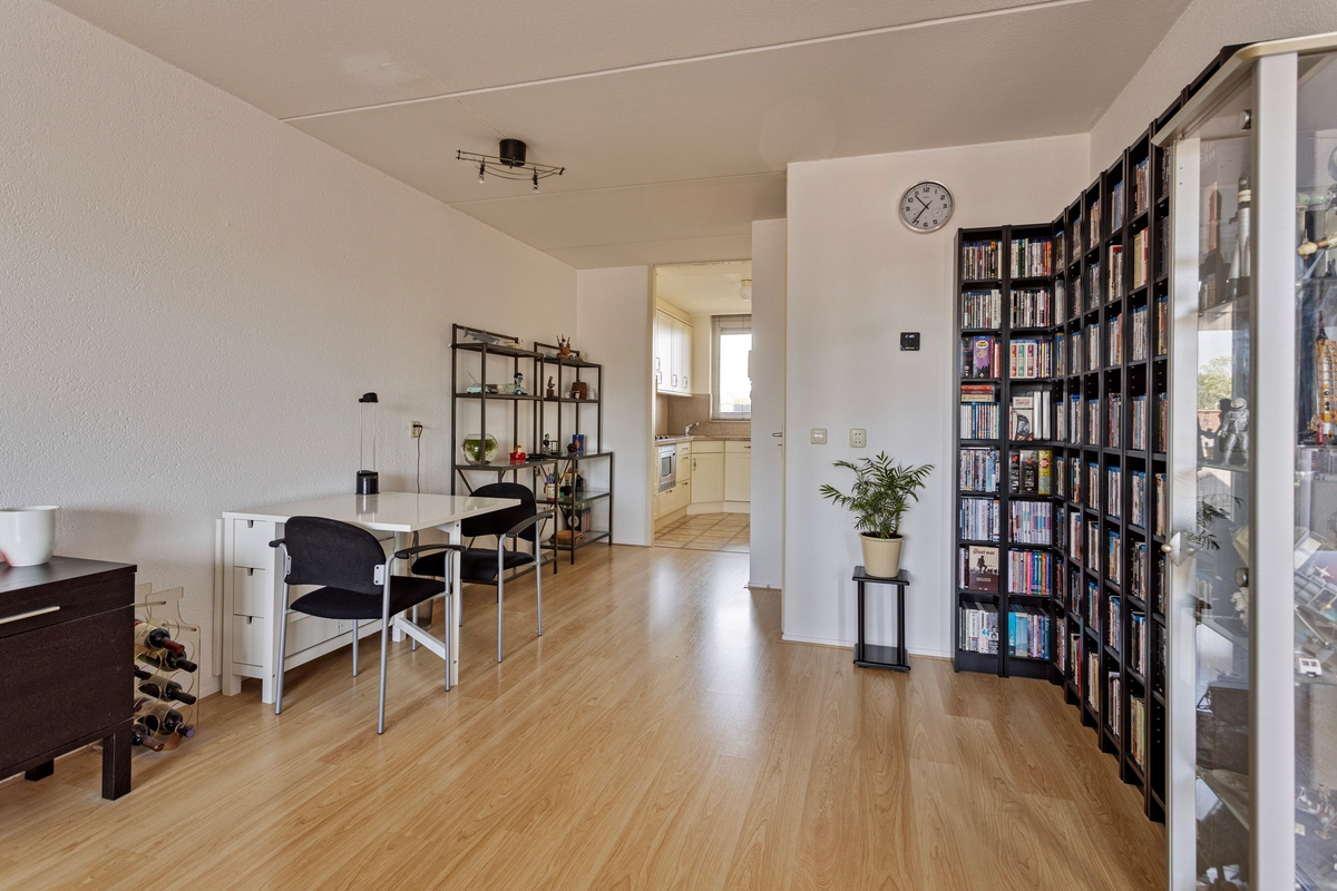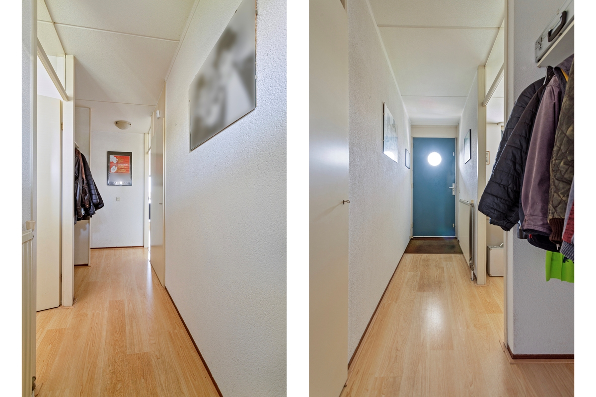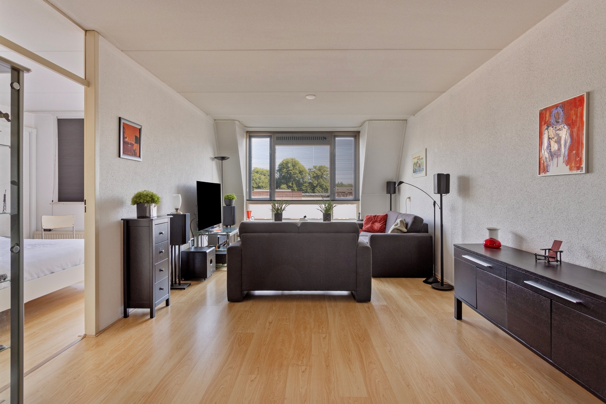 Het appartement bevindt zich op de derde en bovenste verdieping aan het eind van de galerij, dus heerlijk rustig. Entree, hal, handige garderobehoek, moderne meterkast, opbergkast met CV ketel (Intergas - 2024) en de aansluitingen voor de was-apparatuur, een toilet met fonteintje en ventilatie. Lichte woonkamer van ca. 24 m2 met laminaatvloer. Open keuken gelegen aan de galerijkant en voorzien van een spoelbak, elektrische kookplaat met 4 zones, afzuigkap, oven, koel/vriescombinatie en voldoende opbergkasten. De hoofdslaapkamer is via de woonkamer te bereiken en is voorzien van airconditioning voor extra slaapcomfort. Via deze slaapkamer heeft u toegang tot het balkon en ook tot de badkamer. De tot het plafond betegelde badkamer is voorzien van een wastafelmeubel, douchecabine, radiator en ventilatie. De tweede slaapkamer bevindt zich aan de galerijkant en kan eventueel ook als logeerkamer, werk- of hobbykamer gebruikt worden.