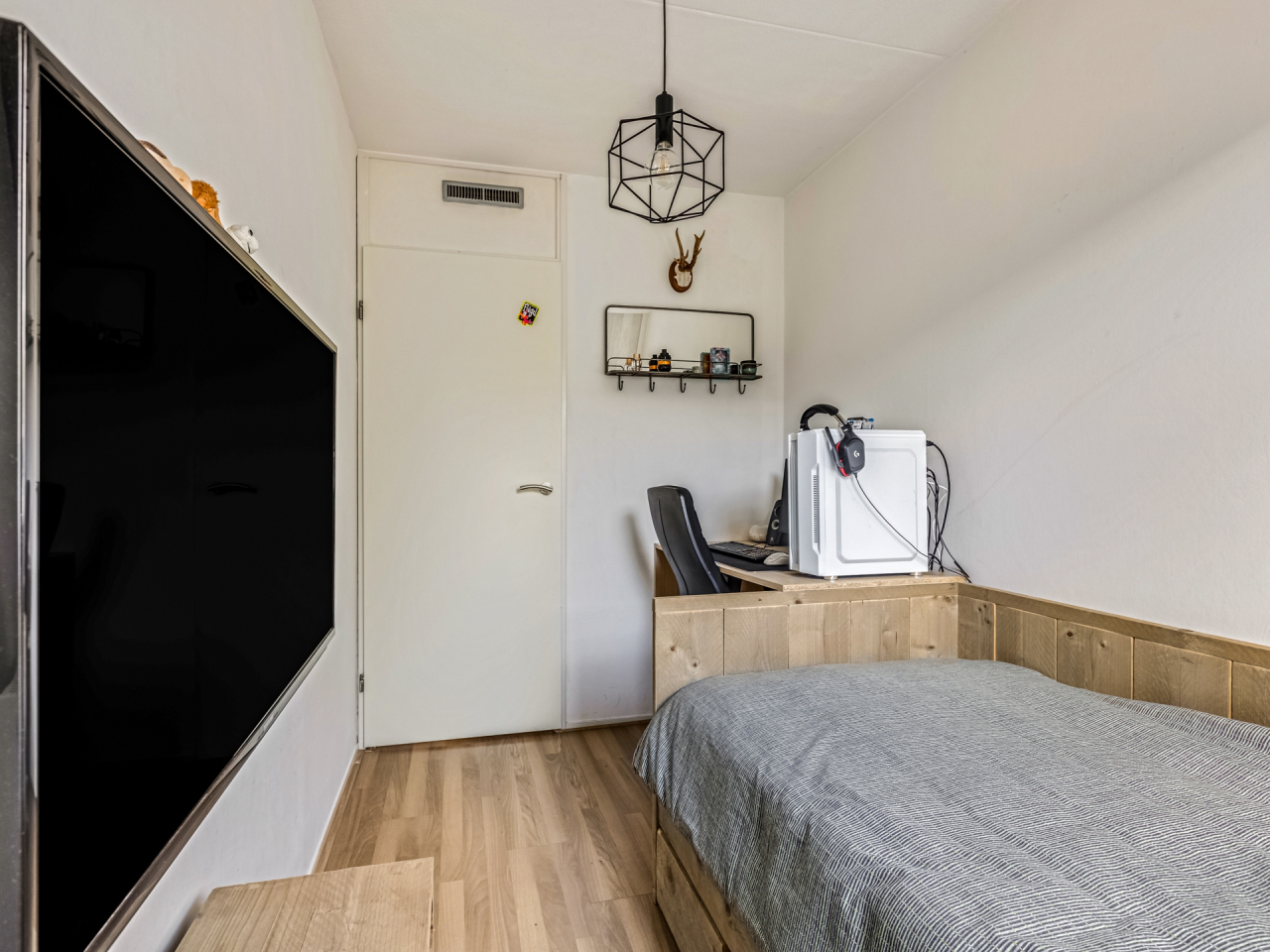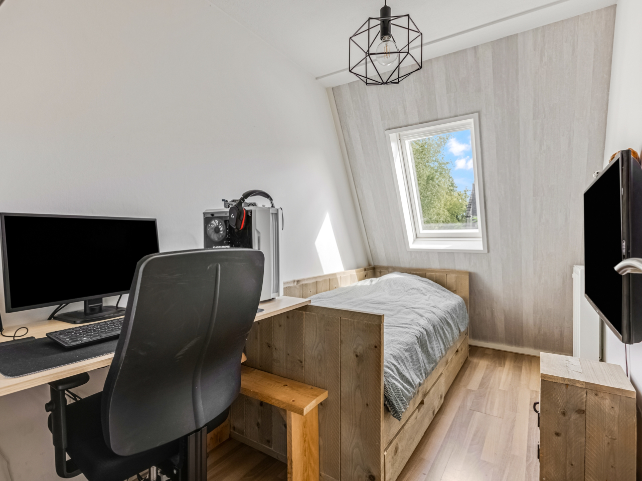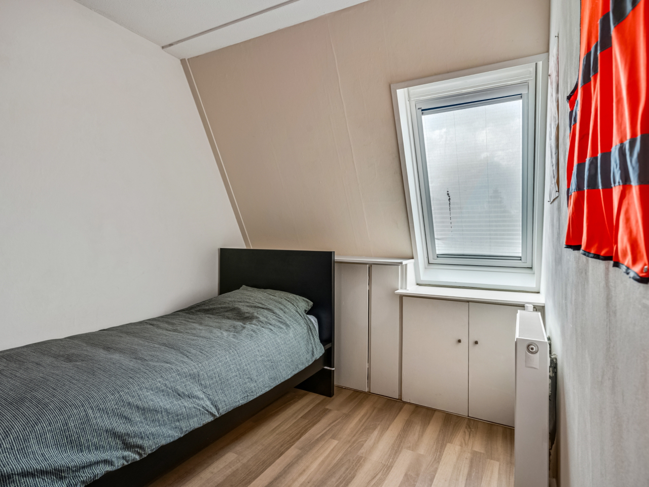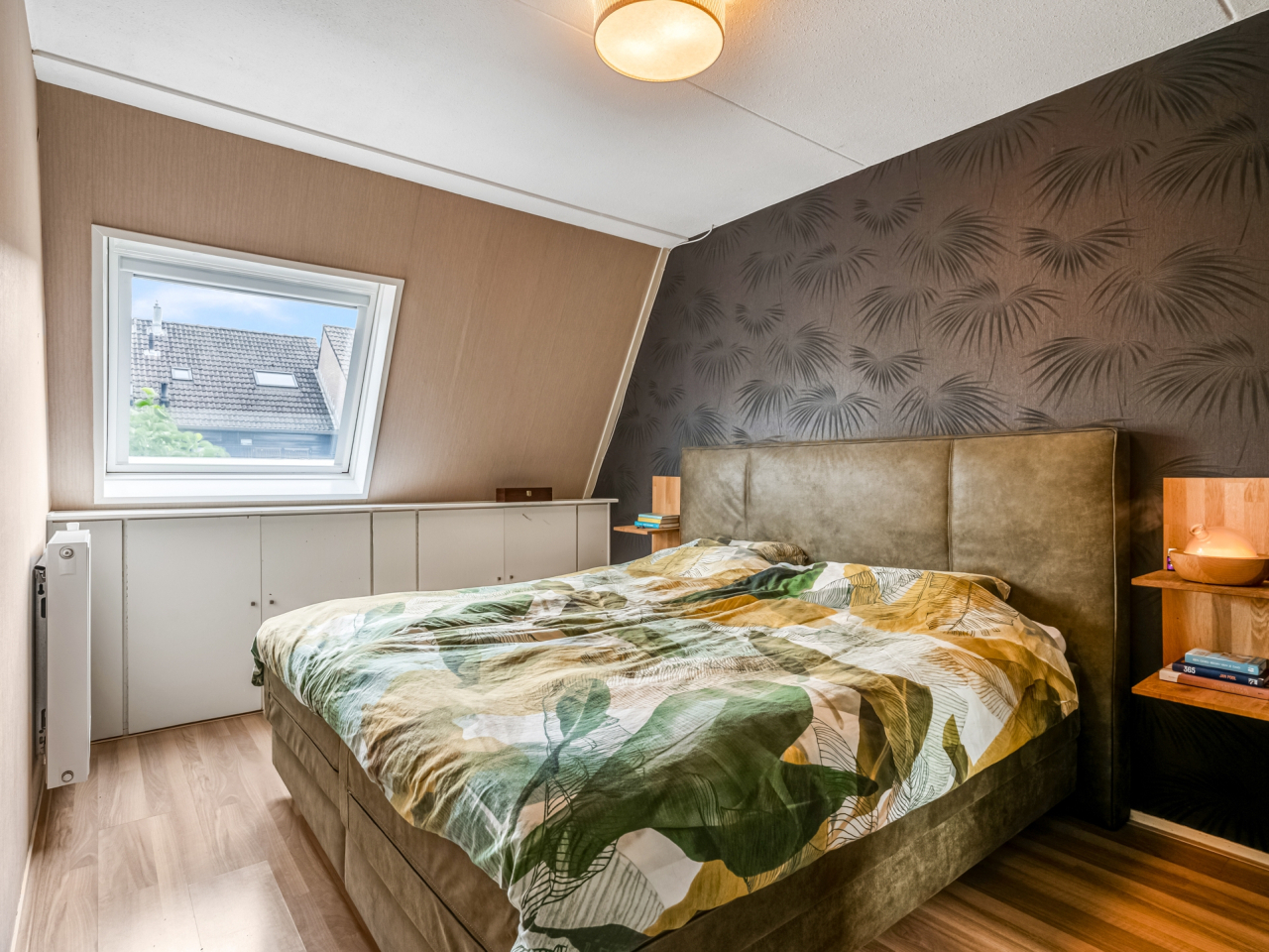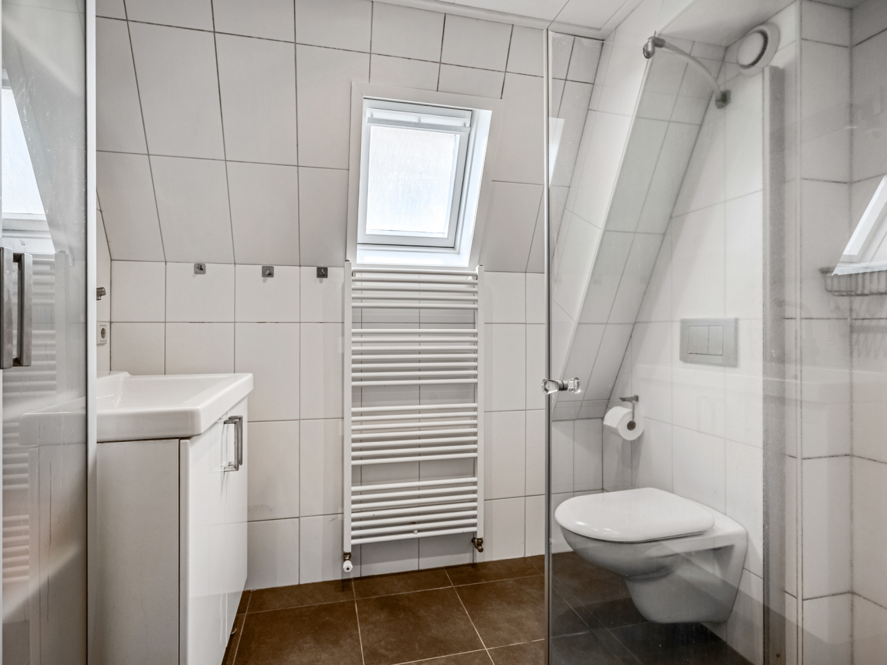 Overloop, drie slaapkamers waaronder twee aan de voorzijde en één aan de achterzijde van de woning gelegen. Badkamer voorzien van een wastafelmeubel, douche, 2e toilet, handdoekradiator, een dakraam voor natuurlijk daglicht en mechanische ventilatie.