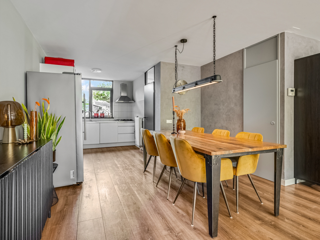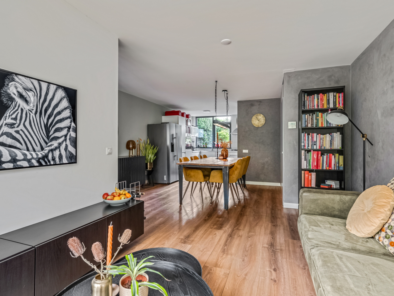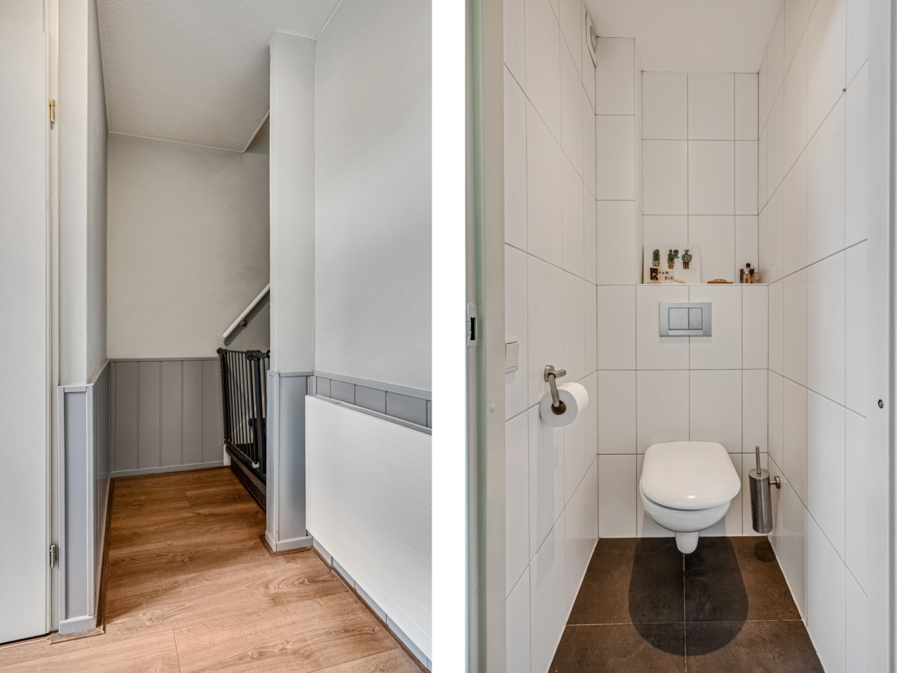 Via de mooie groene voortuin bereikt u de entree van de woning. Lichte hal met garderobe en meterkast. Uitgebouwde woonkamer (2021) met aan de voorzijde de lichte zithoek en aan achterzijde de L-vormige keuken. De keuken is voorzien van een 4- zone gaskookplaat, afzuigkap, multi-stoomoven, een losse koel/vries combinatie, vaatwasser en voldoende opbergruimte. Aansluitend aan de keuken is er ruimte voor een grote eettafel die garant staat voor gezellige momenten met familie en vrienden. Handige trapkast voor extra opbergruimte. De begane grond is voorzien van een nette laminaatvloer. Het achterportaal biedt toegang tot de toiletruimte, de kast met opstelplaats van de CV-ketel, deur naar de achtertuin en de trapopgang.