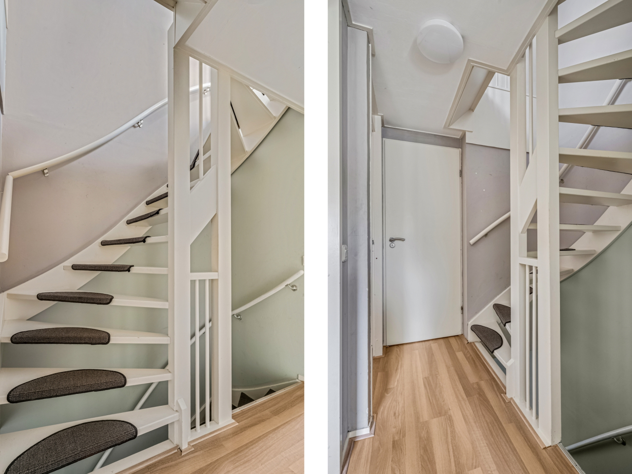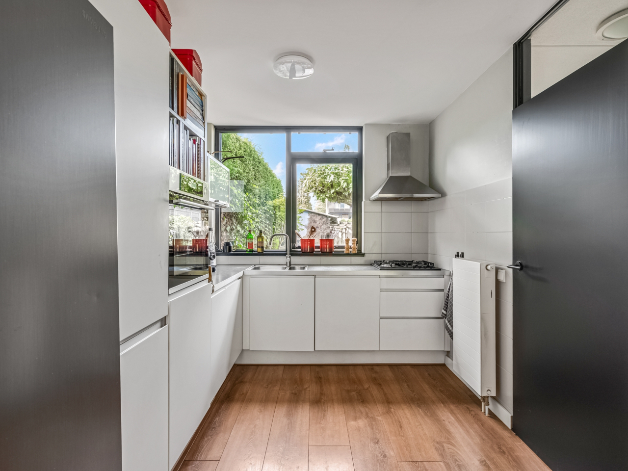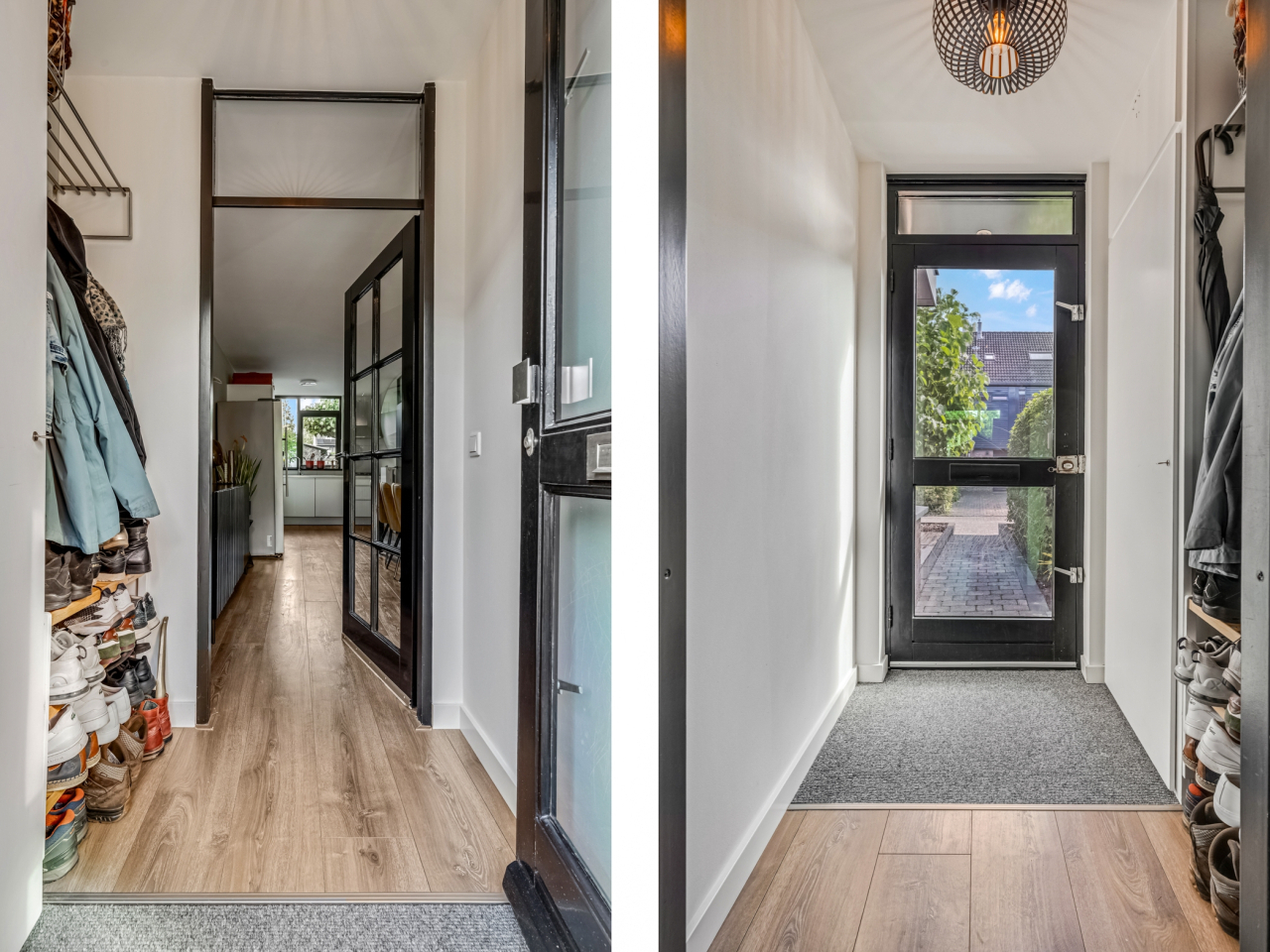 Via de mooie groene voortuin bereikt u de entree van de woning. Lichte hal met garderobe en meterkast. Uitgebouwde woonkamer (2021) met aan de voorzijde de lichte zithoek en aan achterzijde de L-vormige keuken. De keuken is voorzien van een 4- zone gaskookplaat, afzuigkap, multi-stoomoven, een losse koel/vries combinatie, vaatwasser en voldoende opbergruimte. Aansluitend aan de keuken is er ruimte voor een grote eettafel die garant staat voor gezellige momenten met familie en vrienden. Handige trapkast voor extra opbergruimte. De begane grond is voorzien van een nette laminaatvloer. Het achterportaal biedt toegang tot de toiletruimte, de kast met opstelplaats van de CV-ketel, deur naar de achtertuin en de trapopgang.