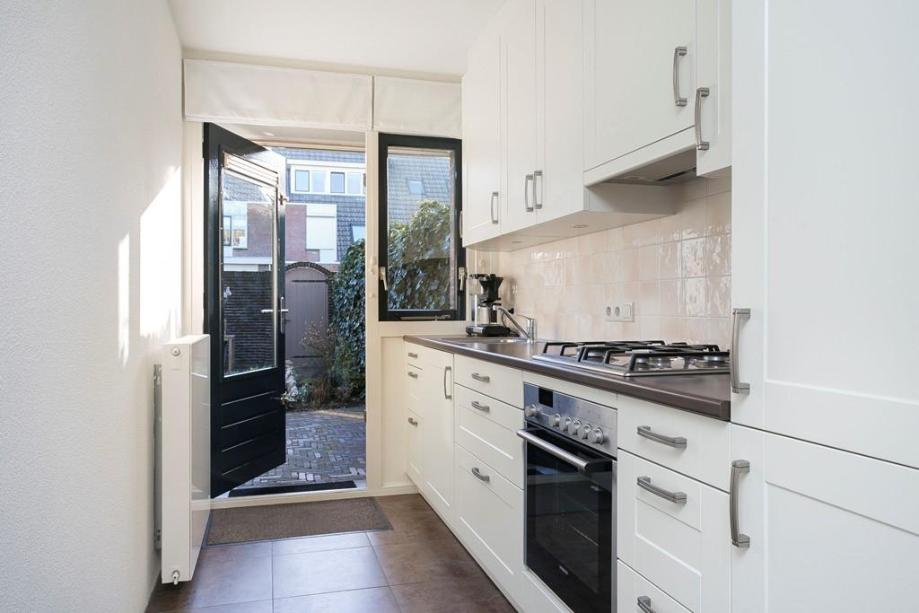 Entree, hal, lichte woonkamer met houten vloer en erker. Keuken voorzien van Italiaanse plavuizen vloer en diverse inbouwapparatuur zoals een 4-pits gasfornuis, afzuigkap, oven en een koel/vriescombinatie. Tussenportaal met toegang tot de slaapkamer, welke is voorzien van inbouwkasten en een deur naar de tuin. Badkamer met bad, wastafel en designradiator.