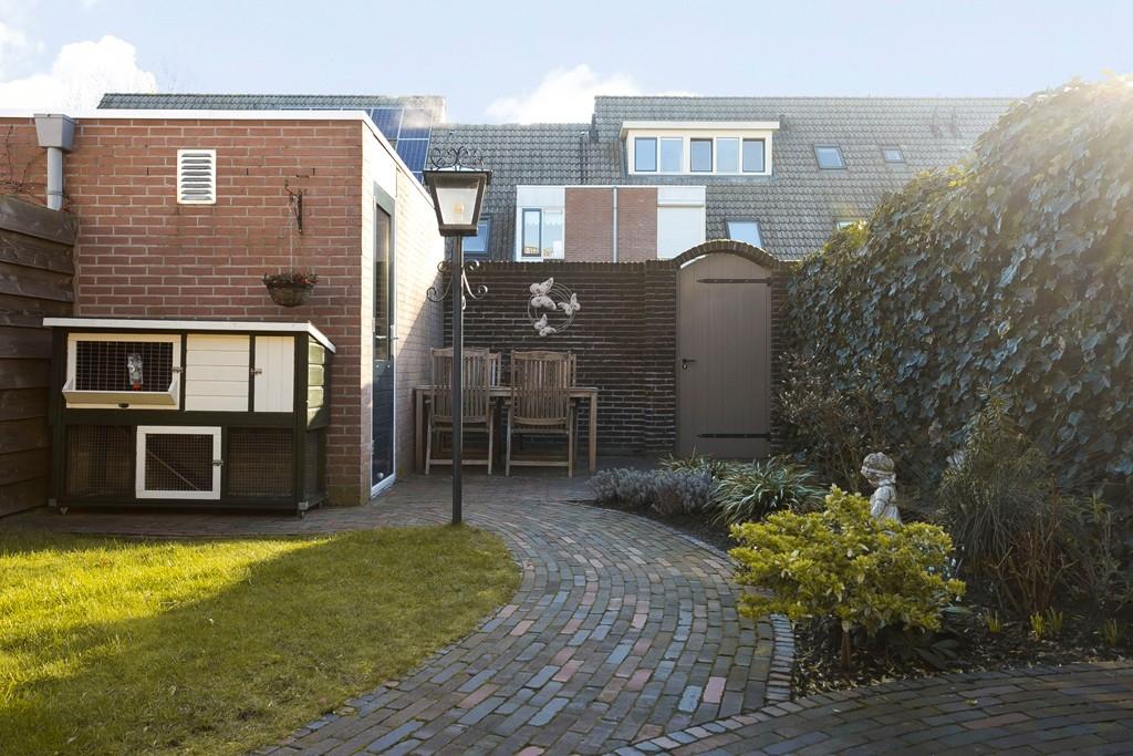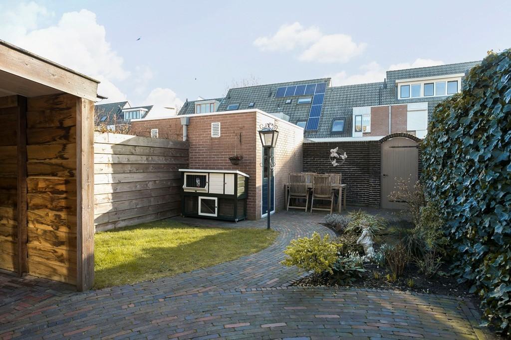 De achtertuin is gelegen op het oosten, heeft een achterom en een vrijstaande stenen berging. Daarnaast is er nog een houten overkapping om bijvoorbeeld fietsen te stallen. De achtertuin alsmede de tuinmuur zijn in 2011 aangelegd. De dakbedekking van de berging is in 2016 vernieuwd en de deur in 2013.