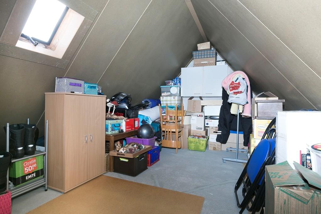 Via vlizotrap bereikbare ruime bergzolder, gedeeltelijk op stahoogte.
