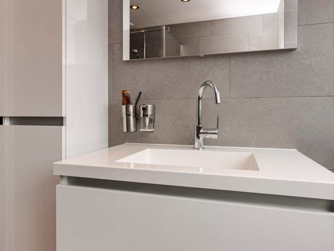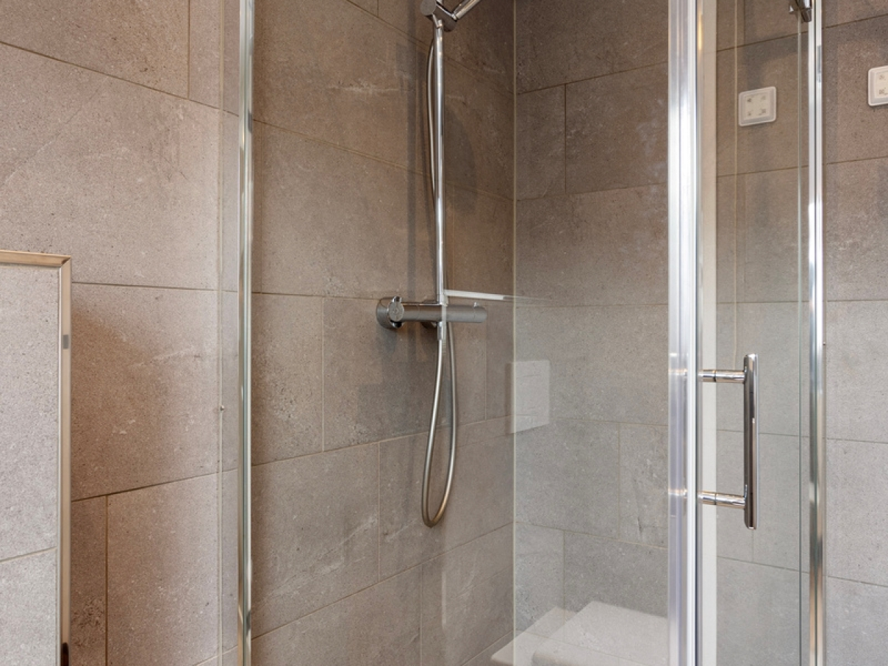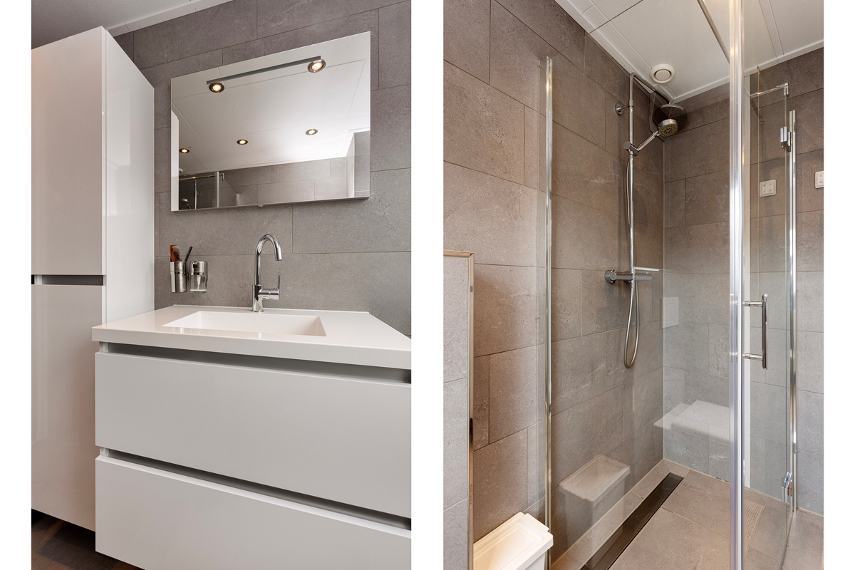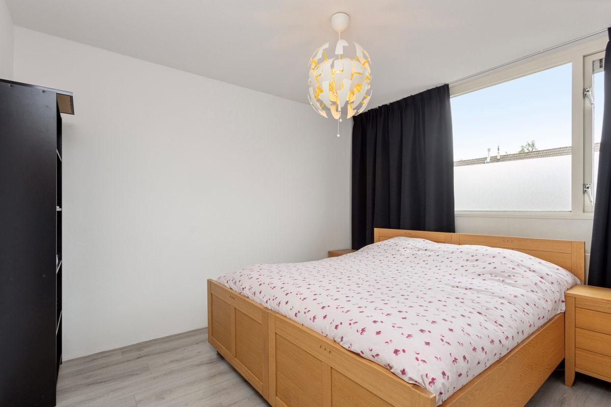 Vanaf de overloop bereiken we als eerste de royale ouderslaapkamer, welke bestaat uit een tweetal samengevoegde kamers (naar wens is dit vrij eenvoudig weer terug te brengen naar de oorspronkelijke staat). Momenteel is dit gedeelte in gebruik als inloopkast. Deze kamer is gesitueerd aan de voorzijde van de woning. Aan de achterzijde treffen we de tweede slaapkamer en de badkamer aan. Deze in 2019 gemoderniseerde badkamer is voorzien van een douchehoek, een wastafelmeubel en een zwevend toilet.
