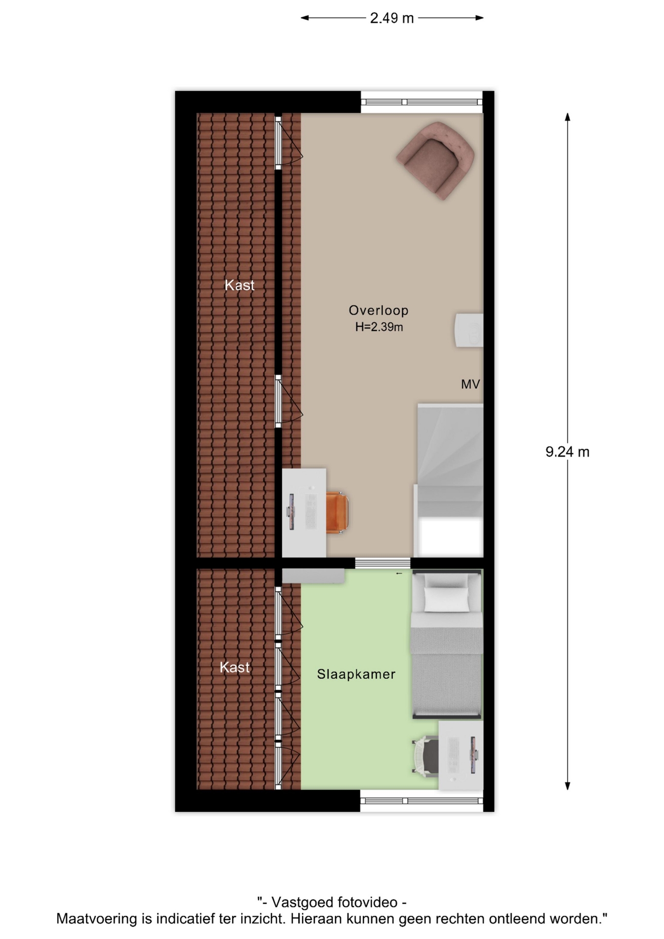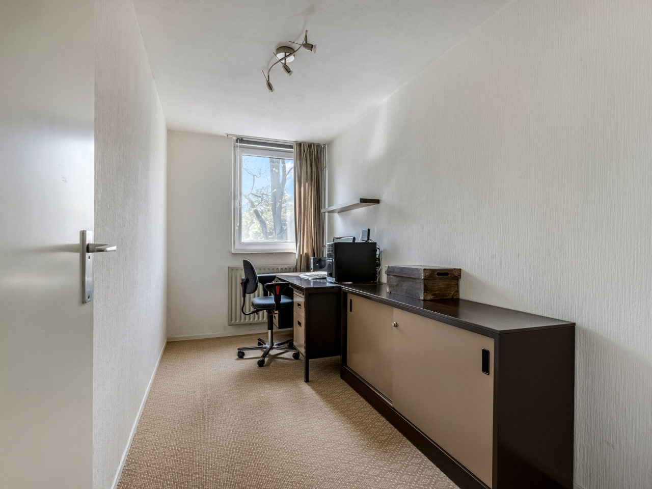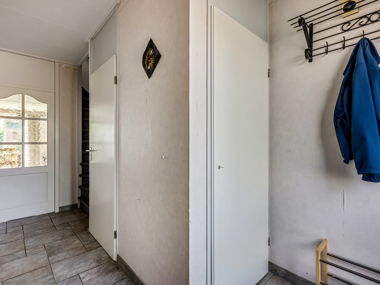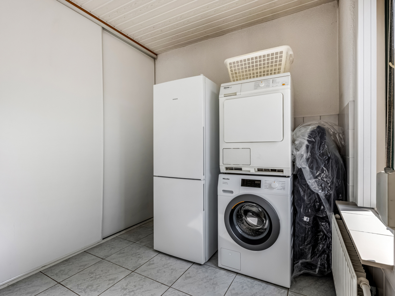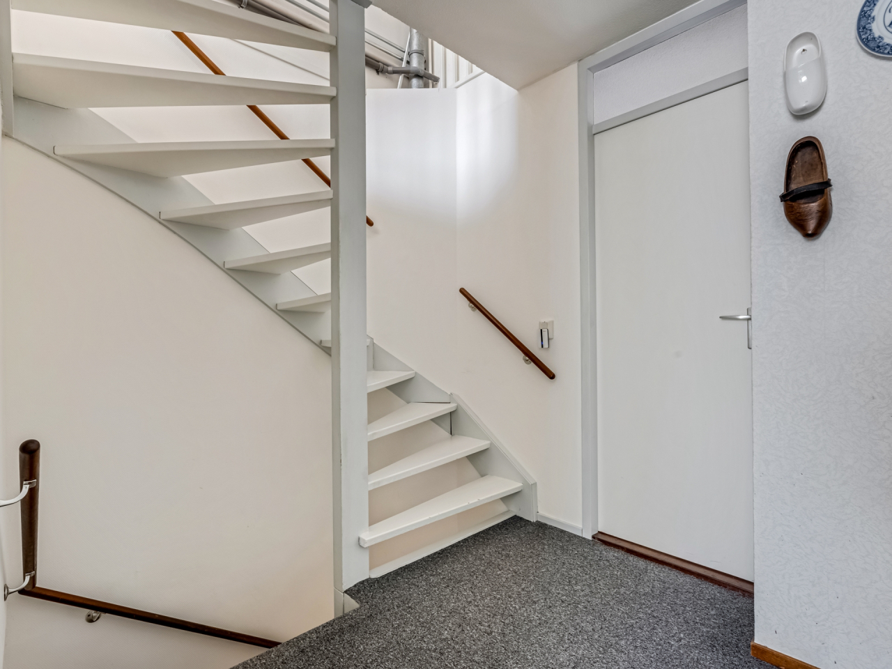 Voorzolder met stookruimte en een vierde slaapkamer. In de stookruimte bevindt zich de CV-ketel en de box voor de mechanische ventilatie. Hiernaast is tevens voldoende ruimte voor een werkplek of eventueel een 5e slaapkamer. Veel bergruimte achter het dakbeschot aanwezig.