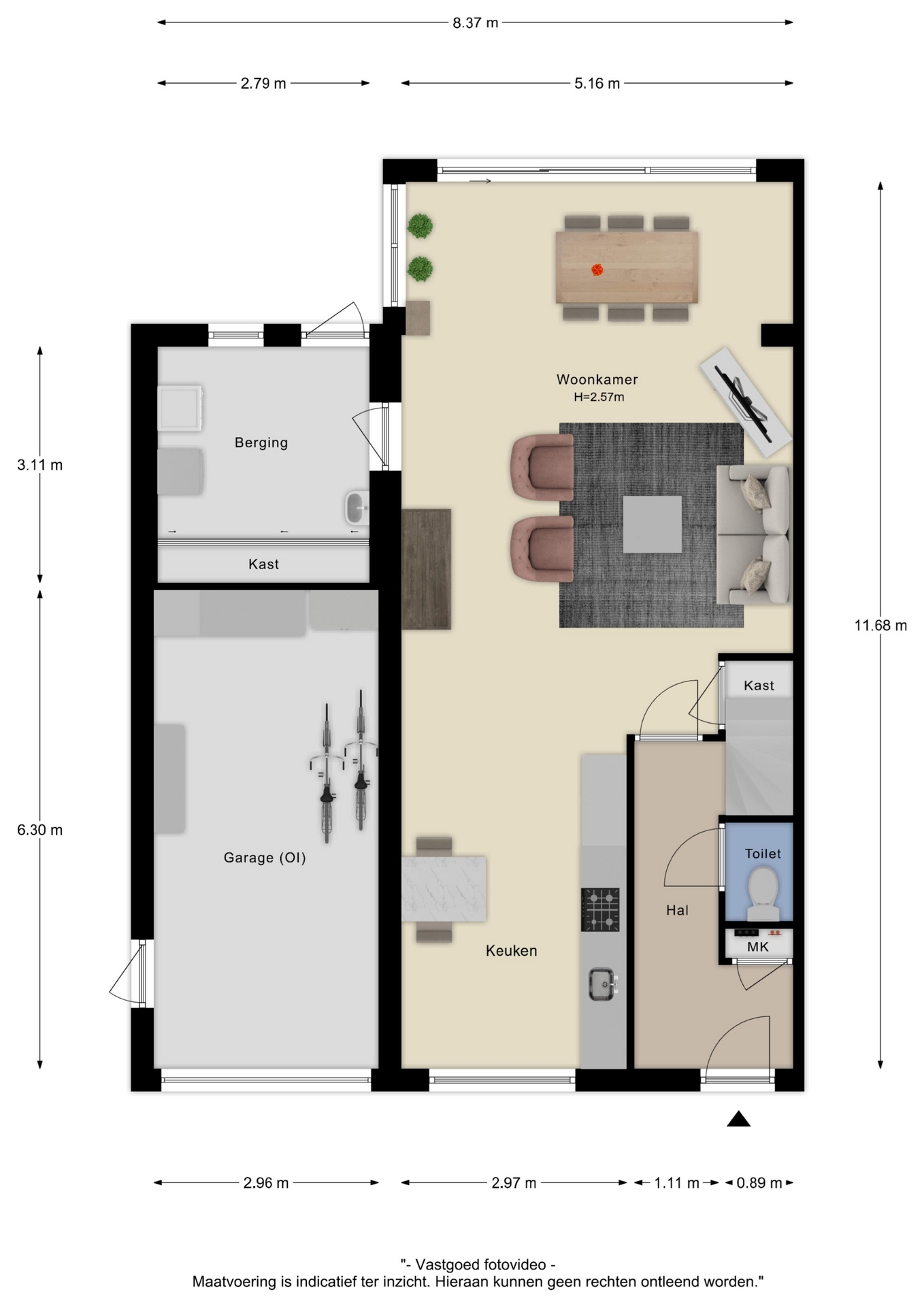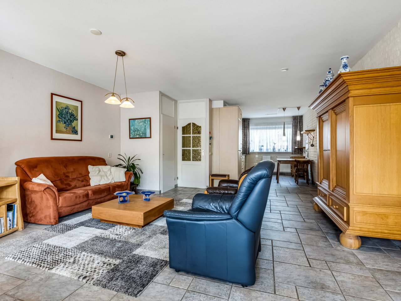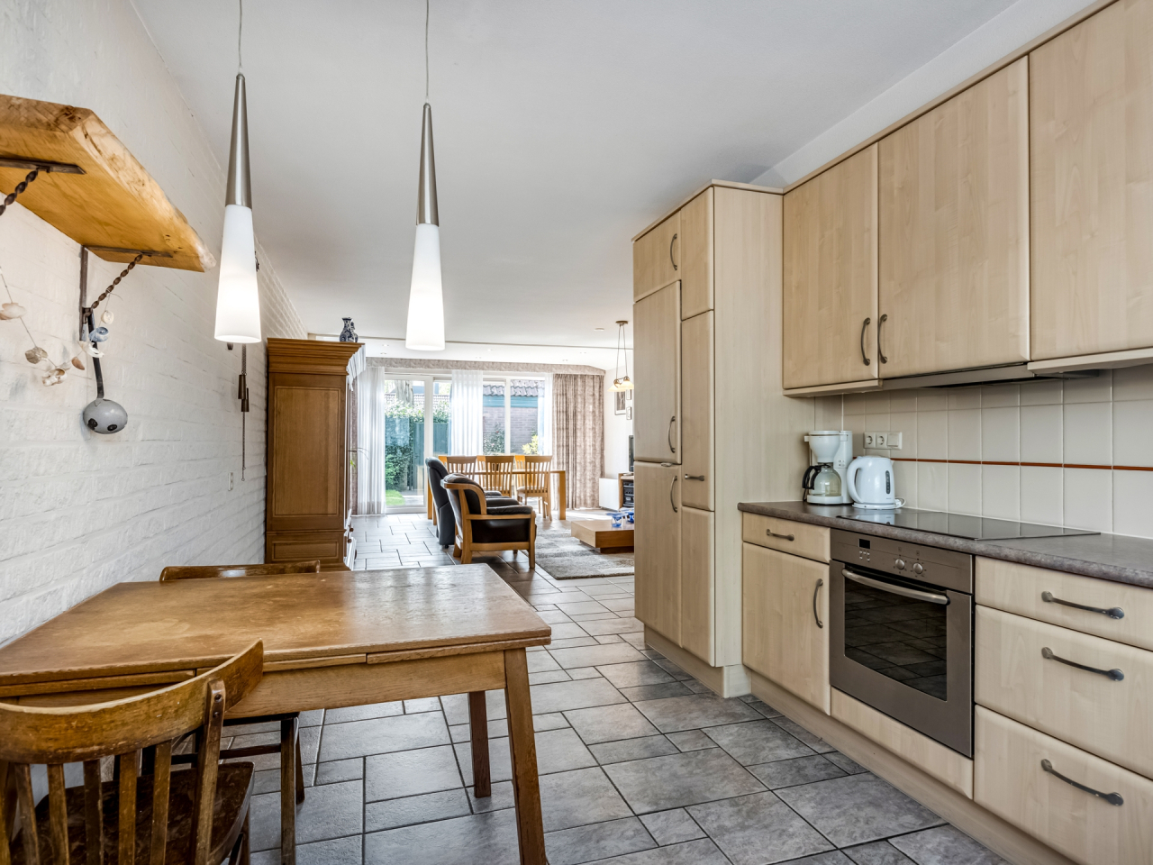Overdekte entree, hal met garderobe-nis, meterkast en toegang tot het toilet, de woonkamer en de trapopgang naar de 1e verdieping. Heerlijk lichte uitgebouwde woonkamer waar de grote kunststof schuifpui voor veel natuurlijke lichtinval en uitzicht op de achtertuin zorgt. Aan de voorzijde bevindt zich de keukenopstelling met diverse inbouwapparatuur (o.a. een koelkast, vaatwasser, oven en inductiekookplaat). Vanuit de woonkamer is de bijkeuken bereikbaar met veel kastruimte, een wastafel en aansluitingen voor de was-apparatuur. Ruime garage met elektra en elektrisch bedienbare garagedeur. Tevens is er parkeergelegenheid op eigen terrein.