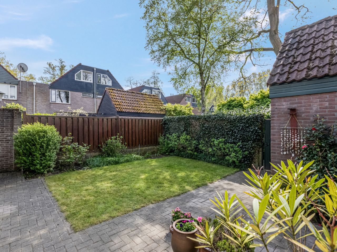 De woning beschikt over een voor- en achtertuin. De achtertuin is extra breed door de hoekligging, biedt veel privacy en is gelegen op het zuidwesten. Tevens is hier nog een vrijstaande stenen berging aanwezig.