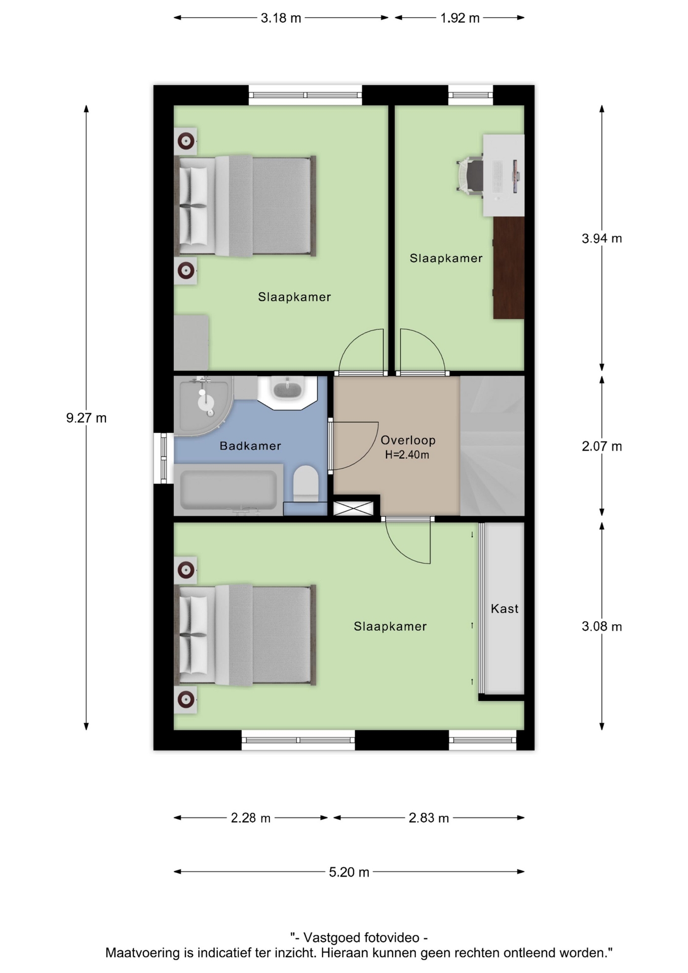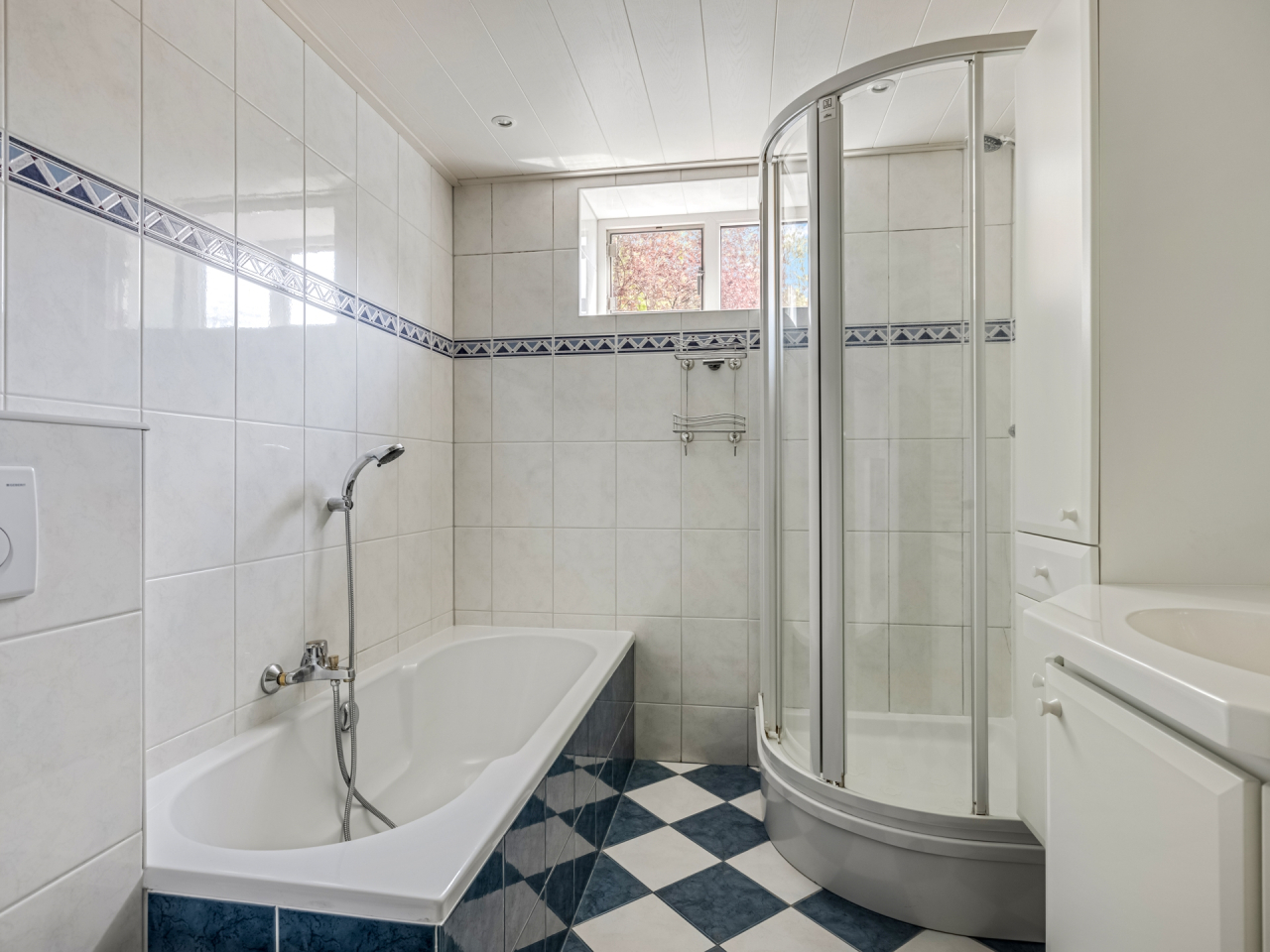 Overloop met toegang tot 3 slaapkamers en de badkamer. De ouderslaapkamer bevindt zich over de gehele breedte van de woning en heeft toegang tot het balkon. De badkamer is voorzien van zowel een ligbad als een separate douche, een wastafelmeubel en 2e toilet.