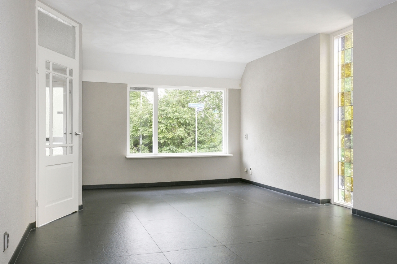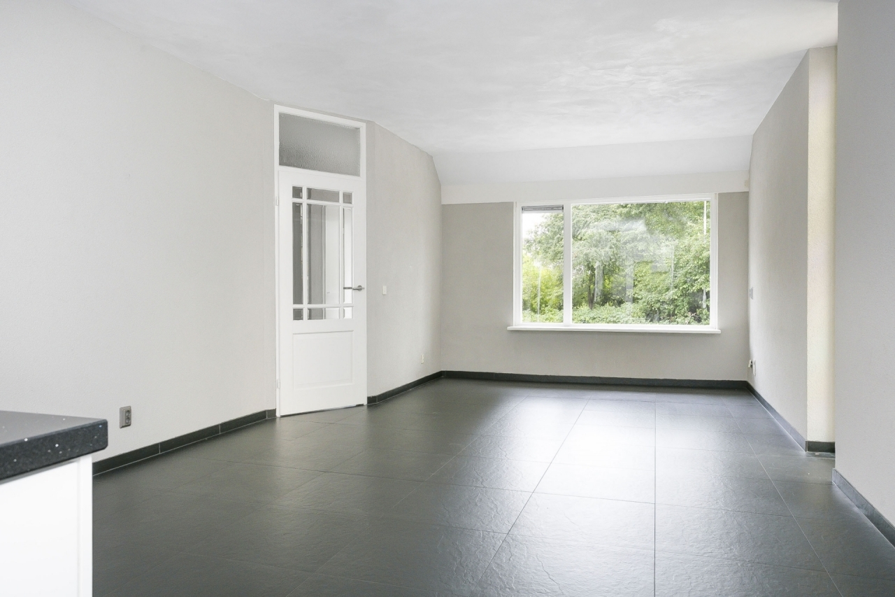 De woonkamer is tuingericht en dankzij grote raampartijen (met dubbel glas) is de woonkamer lekker licht. Via de tussenhal toegang tot het toilet.