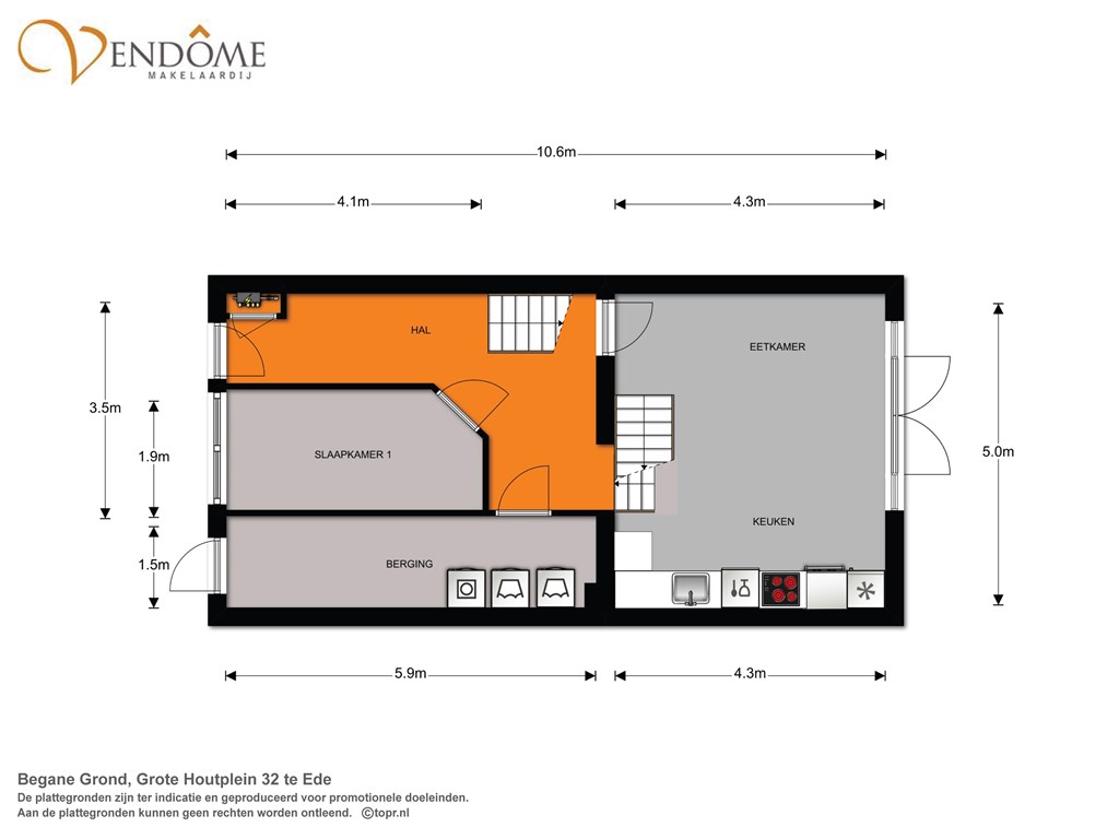 Deze informatie is door ons met de nodige zorgvuldigheid samengesteld. Onzerzijds wordt echter geen enkele aansprakelijkheid aanvaard voor enige onvolledigheid, onjuistheid of anderszins, dan wel de gevolgen daarvan. Alle opgegeven maten en oppervlakten zijn indicatief. Van toepassing zijn de VBO voorwaarden.
