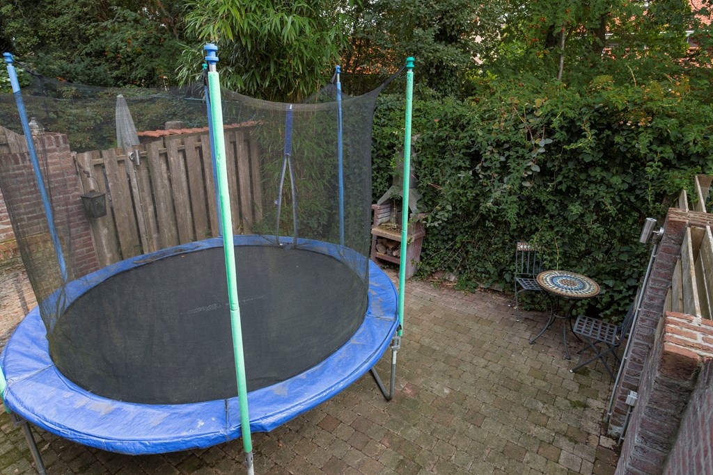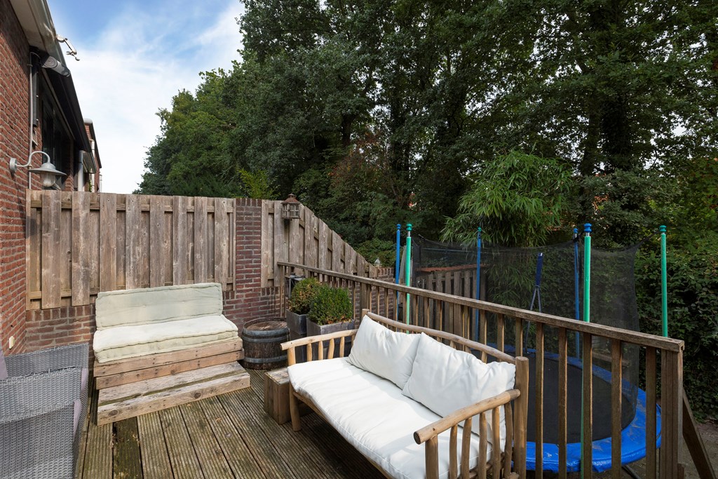 De achtertuin met terras en berging is gelegen op het zuiden. Achter de tuin zijn geen directe buren maar een houtwal met bomen wat voor veel rust en privacy zorgt.