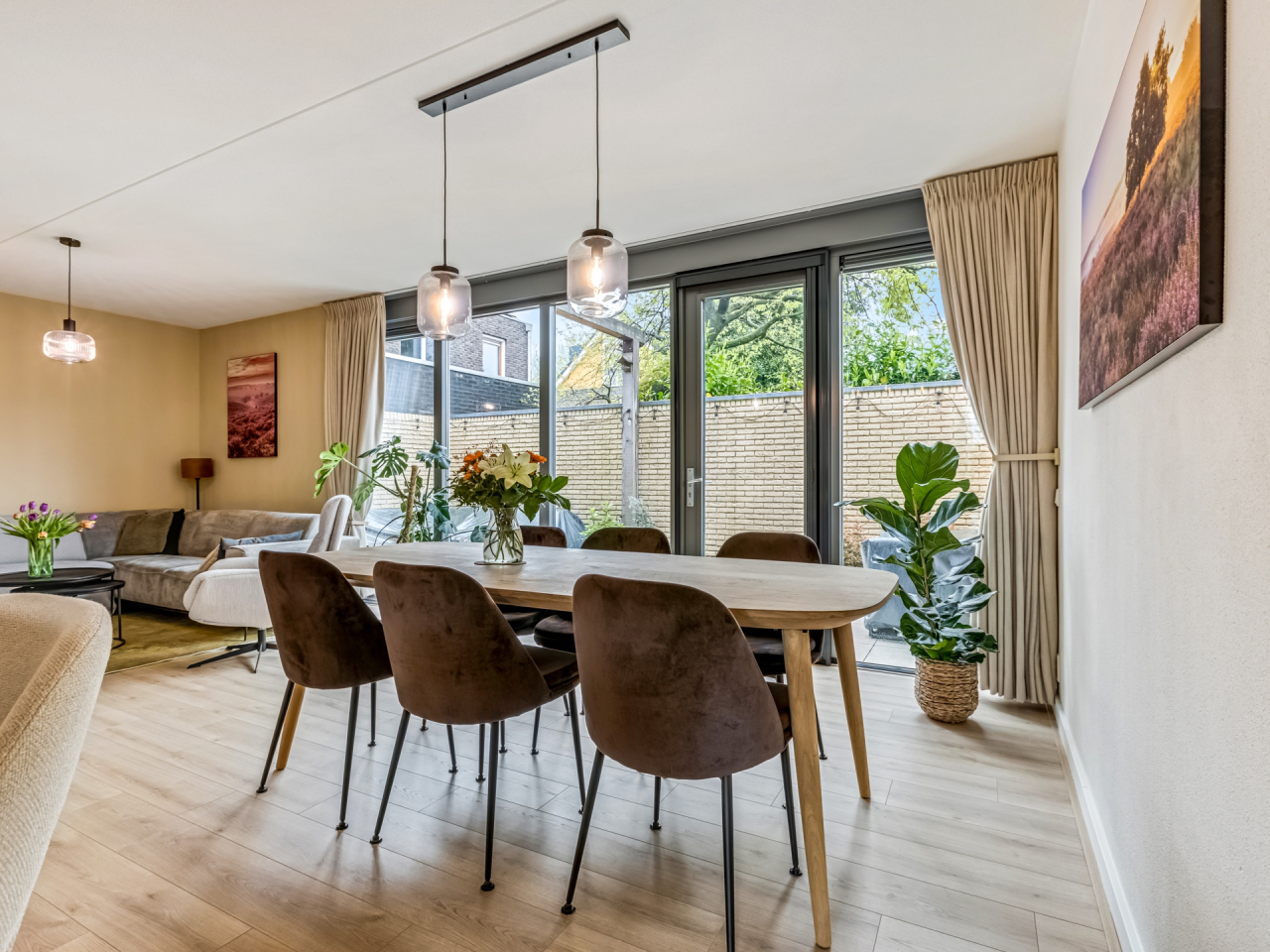 Deze woning ligt op een toplocatie: winkels en horeca bevinden zich op slechts enkele minuten loopafstand. Toch ervaart u hier rust, met een fijne besloten achtertuin om van te genieten en het bos op slechts 10 fietsminuten afstand. Parkeren doet u gemakkelijk op uw eigen dubbele parkeerplaats voor de deur. De inpandige berging biedt ruimte voor fietsen en opslag.