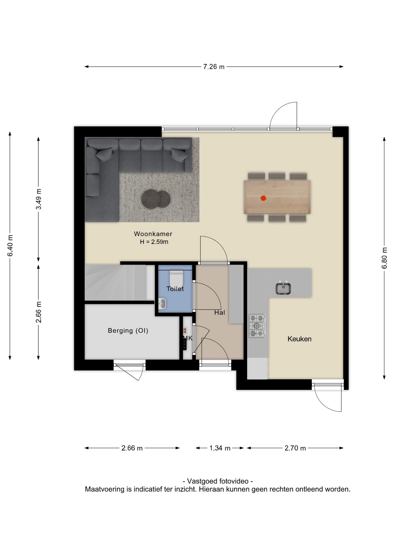 Deze informatie is door ons met de nodige zorgvuldigheid samengesteld. Onzerzijds wordt echter geen enkele aansprakelijkheid aanvaard voor enige onvolledigheid, onjuistheid of anderszins, dan wel de gevolgen daarvan. Alle opgegeven maten en oppervlakten zijn indicatief. Van toepassing zijn de VBO consumenten voorwaarden.