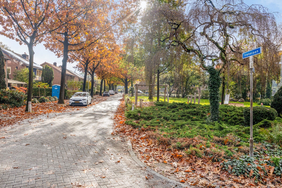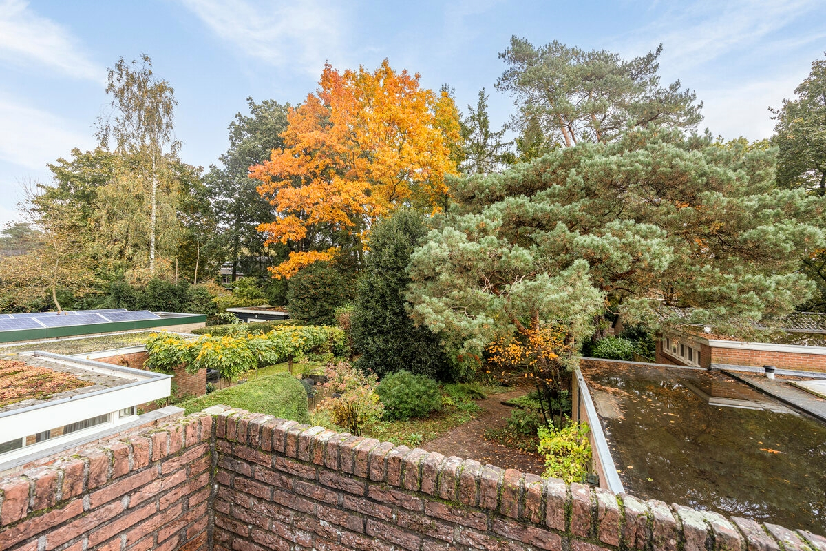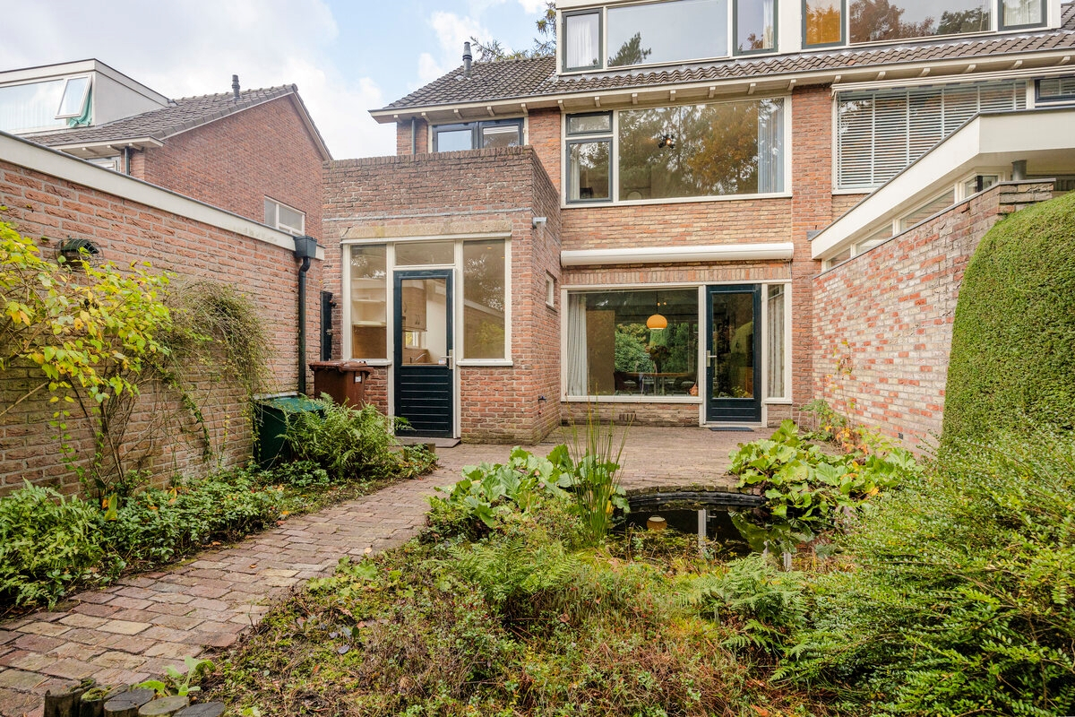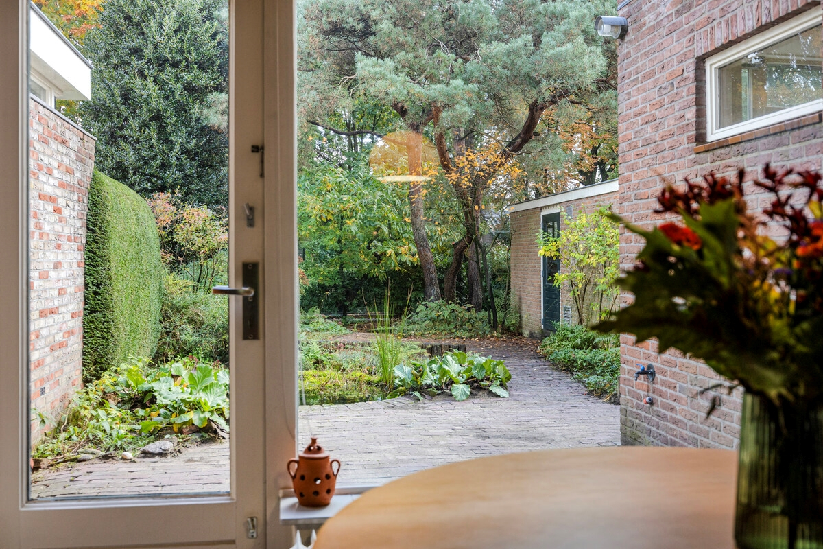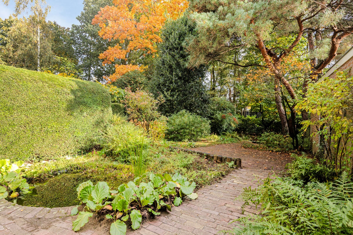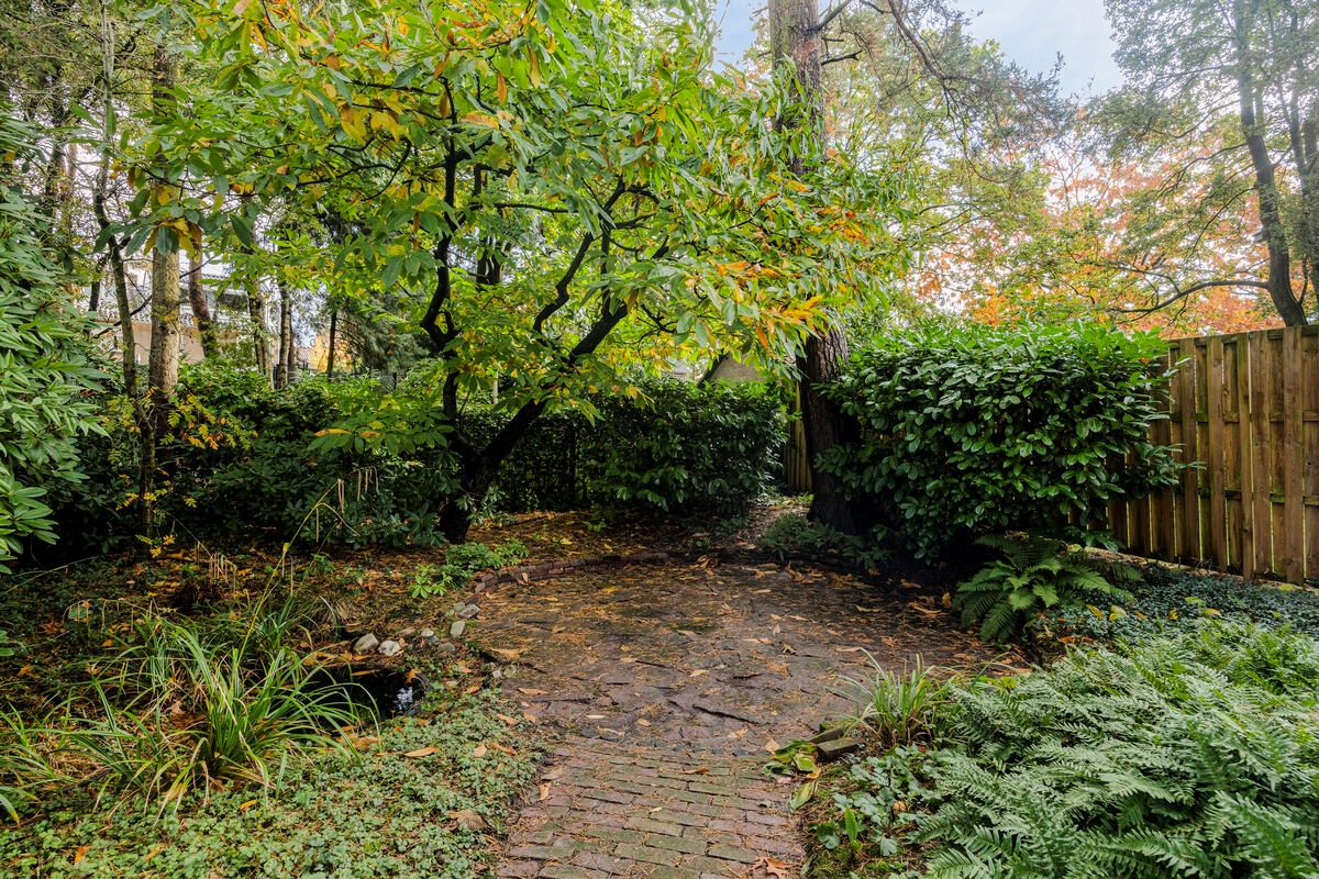 Naast een ruime groene voortuin is er een heerlijke diepe (21 meter) en fraai aangelegde achtertuin op het oosten. De achtertuin biedt veel rust en privacy en beschikt over diverse plantenperken met veel bloemen, enkele markante bomen, 2 vijvers en 3 terrassen waarvan één zonnig terras direct achter de woning, met een elektrisch te bedienen zonnescherm en een tweede terras in het midden van de tuin en een derde terras in de schaduwrijke achtertuin. De achtertuin is ook te bereiken vanaf de oprit via een ingang aan de zijkant.