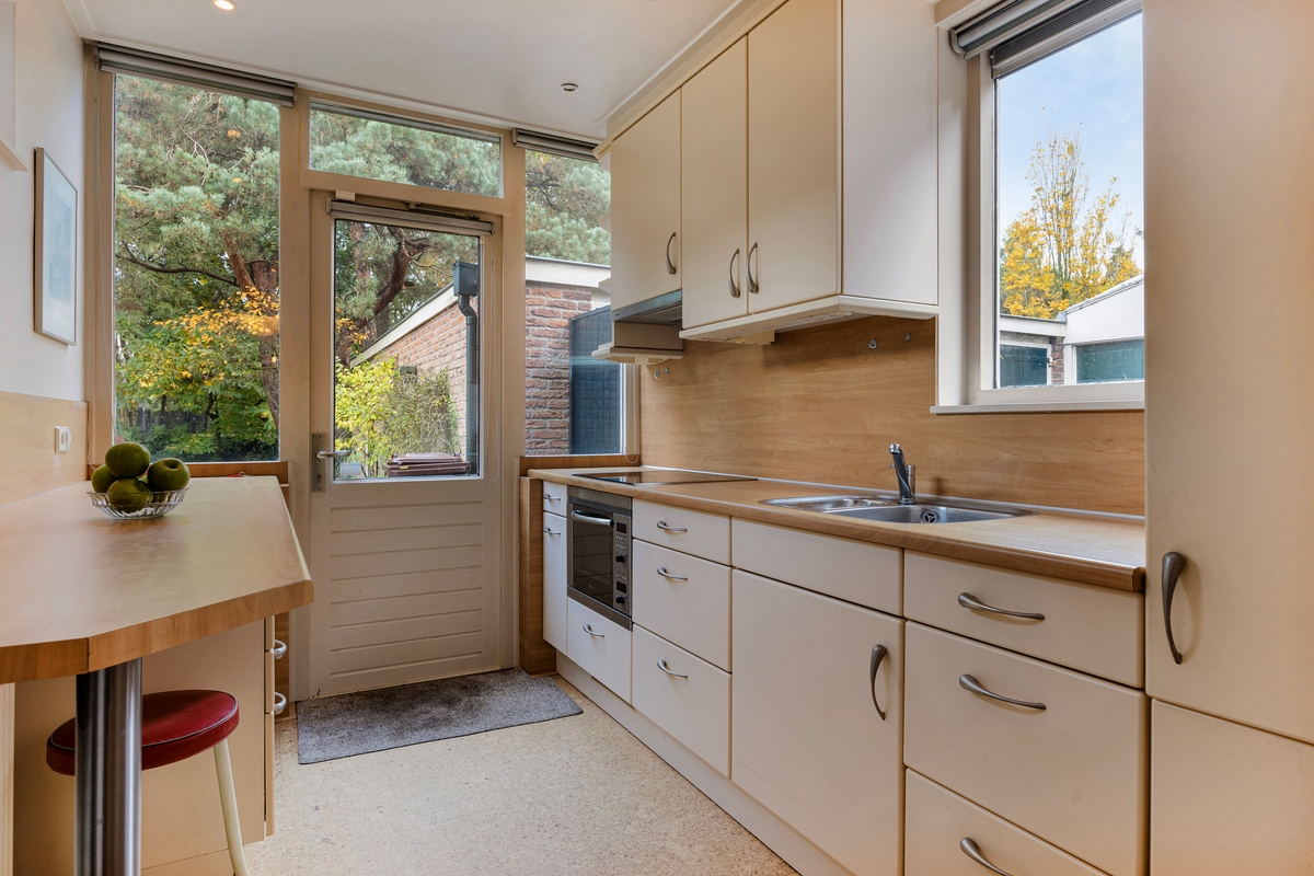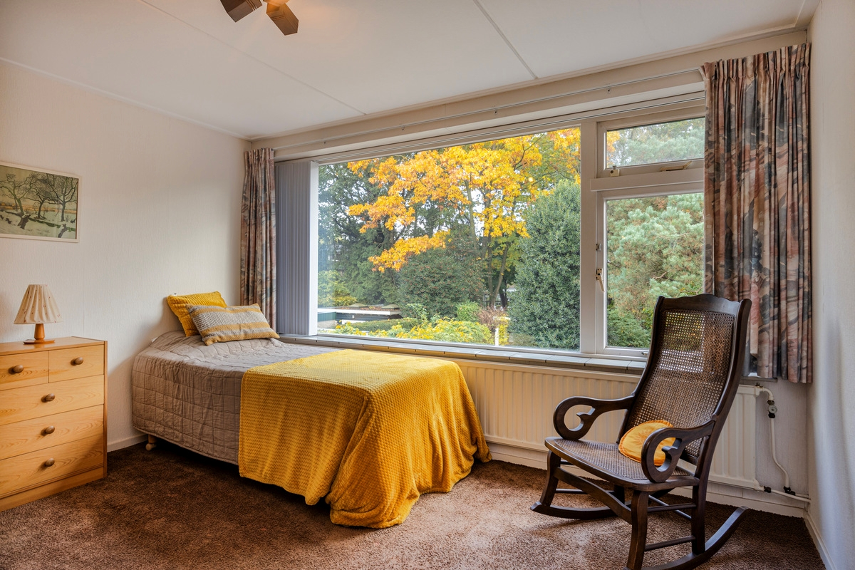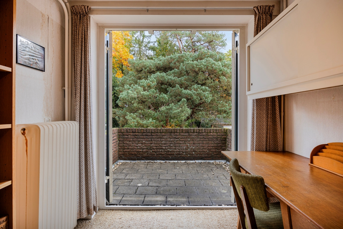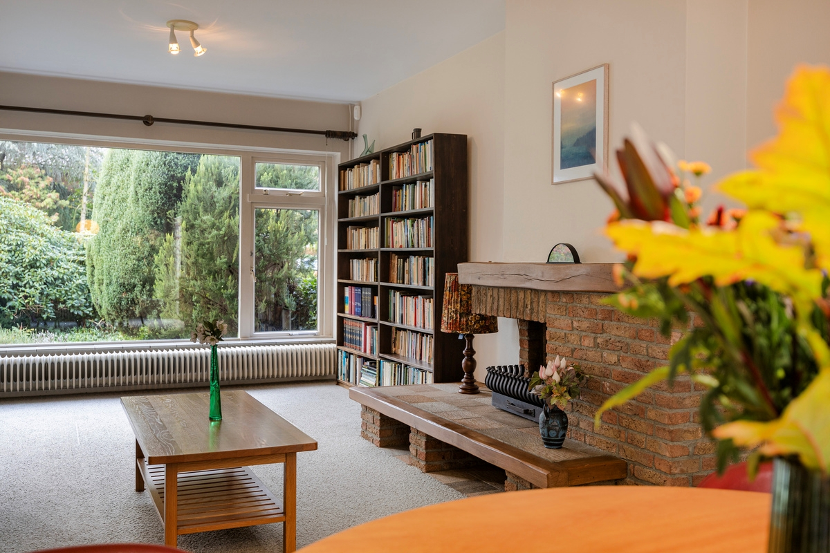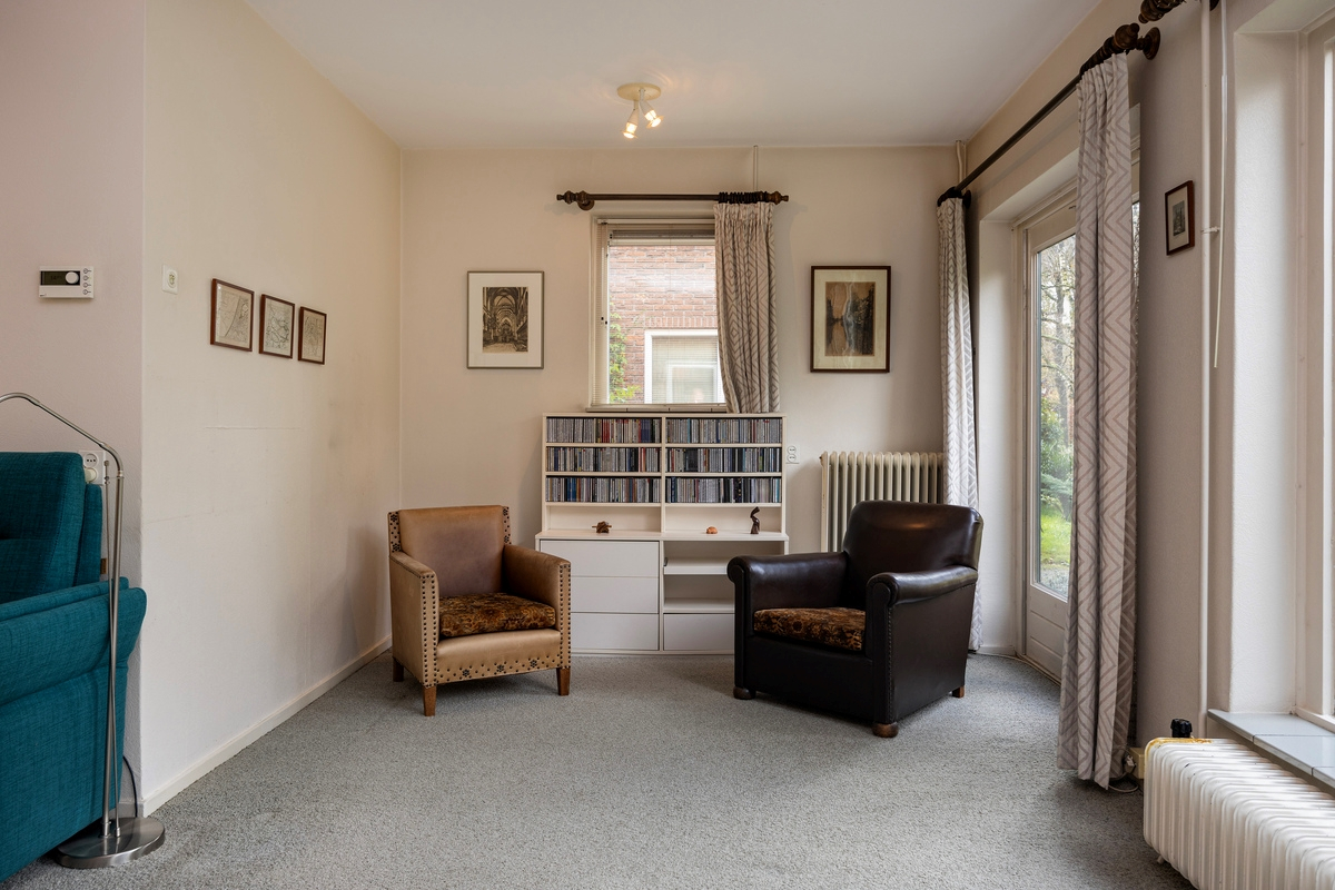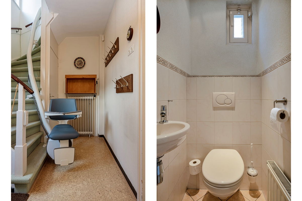 De ingang bevindt zich aan de zijkant van de woning. Entree, hal, meterkast met 9 groepen, kelder op stahoogte, toilet met fonteintje en trapopgang. De aanwezige traplift zal nog verwijderd worden. Vanuit de hal heeft u toegang tot de keuken en woonkamer. De gesloten keuken is voorzien van een 1/½ spoelbak, een 4 zones inductiekookplaat, afzuigkap, koelkast, vriezer, combi-oven, een vaste kast met doorgeefluik naar de woonkamer en een deur die direct toegang biedt tot de achtertuin. De L-vormige woonkamer is door de vele ramen erg licht. De woonkamer beschikt over een gezellige open haard, de aangewezen plek om te genieten van een goed boek, een glas wijn of een fijn gesprek bij een knappend haardvuurtje. Vanuit de woonkamer bereikt u de voortuin via openslaande deuren en de achtertuin via een deur.