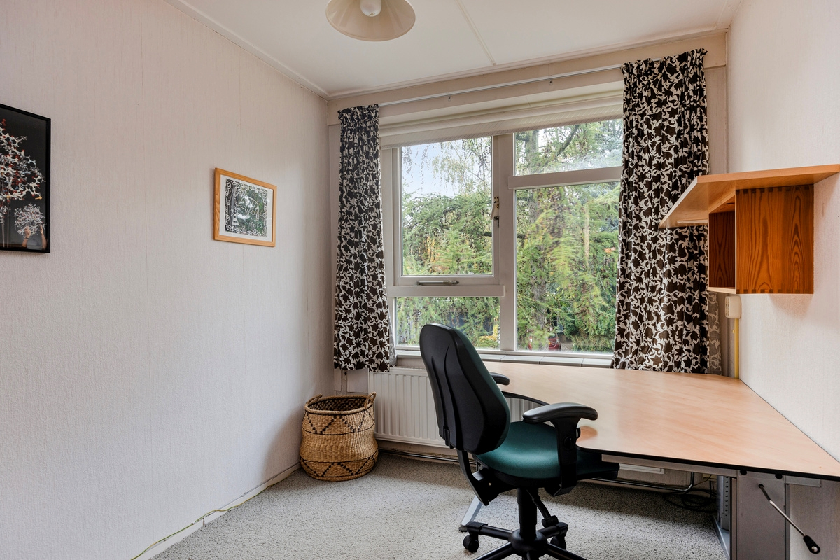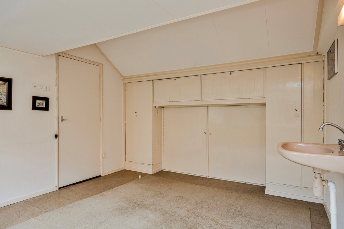 Via een vaste trap bereikt u de voorzolder met CV-opstelling (Nefit HR Topline – 2007) en aansluitingen voor de wasapparatuur. Hiernaast bevindt zich een ruime 5e slaapkamer voorzien van een dakkapel, een wastafel, een grote vaste kast en opbergruimte achter de knieschotten.