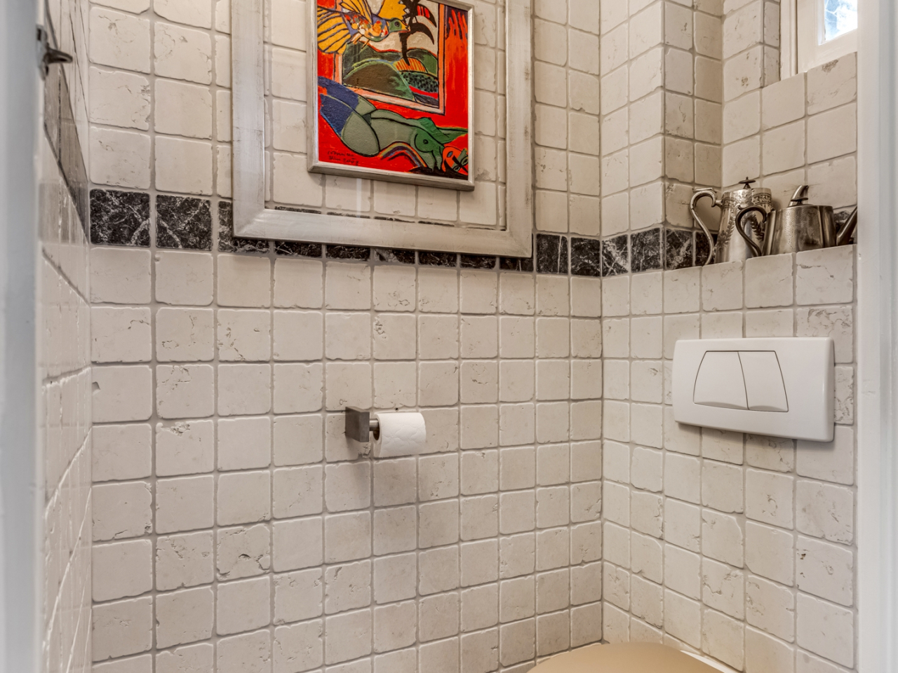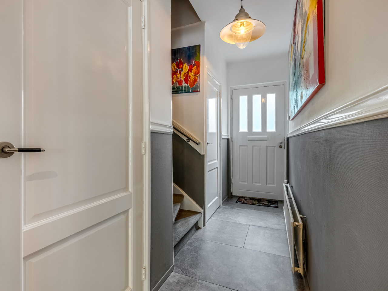 In de lange hal bevinden zich de trapopgang, een toiletruimte en een praktische kelder op stahoogte (ca. 7 m²) met vernieuwde meterkast (2004 – 8 groepen, 2 aardlek-schakelaars).