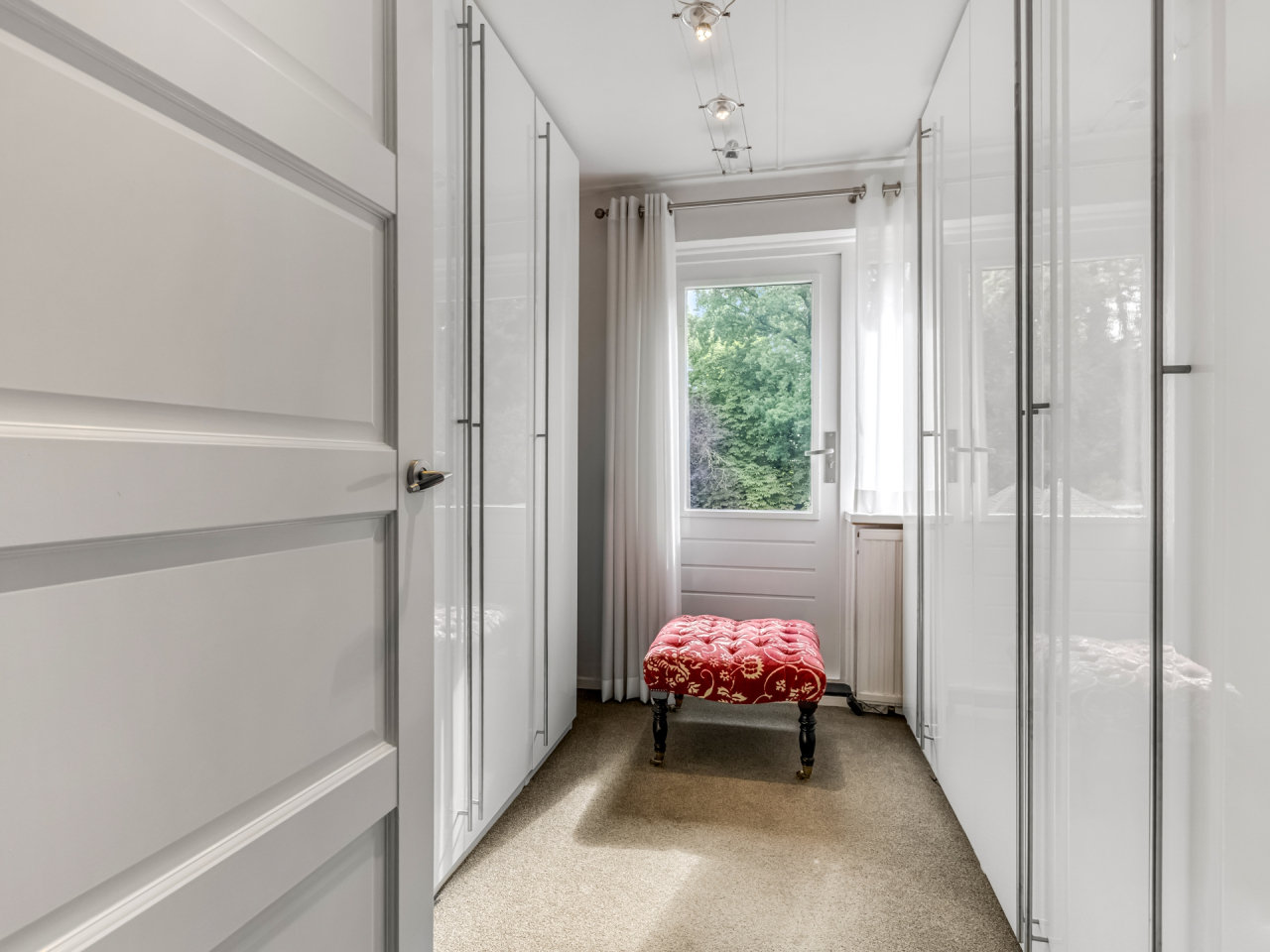 Aan de achterzijde liggen de ouderslaapkamer (ca. 12 m²) en een derde slaapkamer (ca. 5,5 m²), momenteel ingericht als inloopkast. Beide kamers zijn aan de buitenkant voorzien van rolluiken.