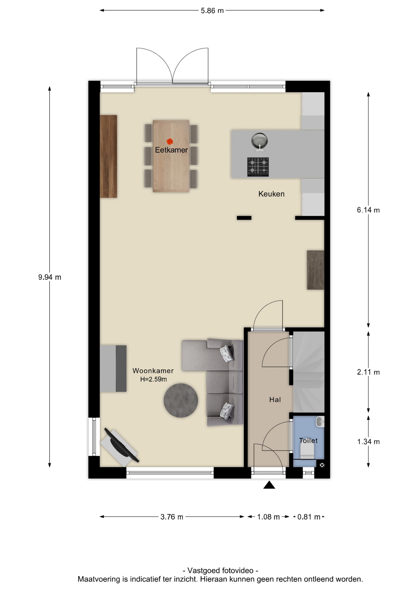 Deze informatie is door ons met de nodige zorgvuldigheid samengesteld. Onzerzijds wordt echter geen enkele aansprakelijkheid aanvaard voor enige onvolledigheid, onjuistheid of anderszins, dan wel de gevolgen daarvan. Alle opgegeven maten en oppervlakten zijn indicatief. Van toepassing zijn de Vastgoed Nederland Consumenten voorwaarden.