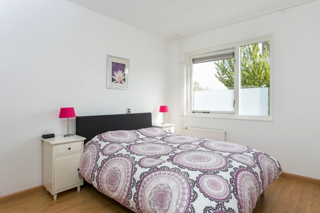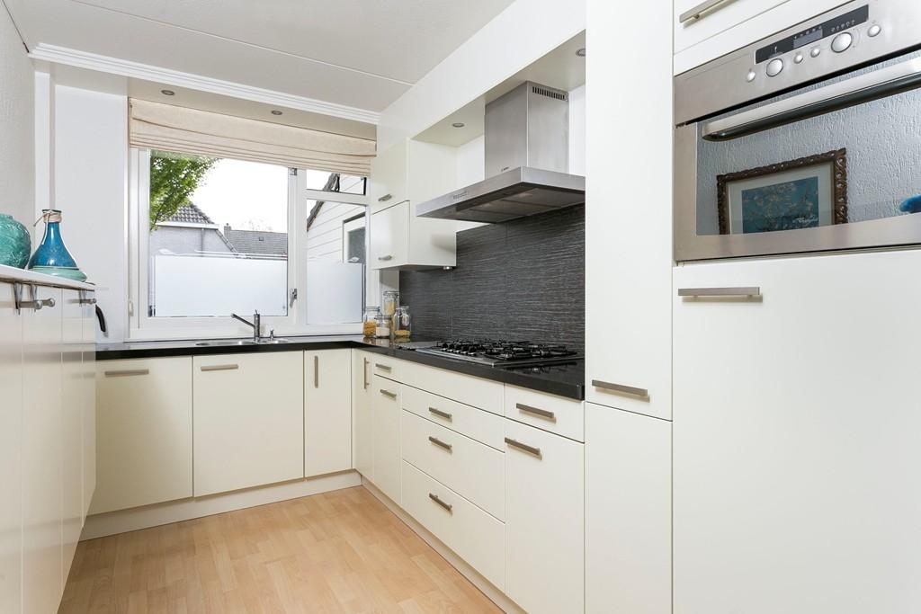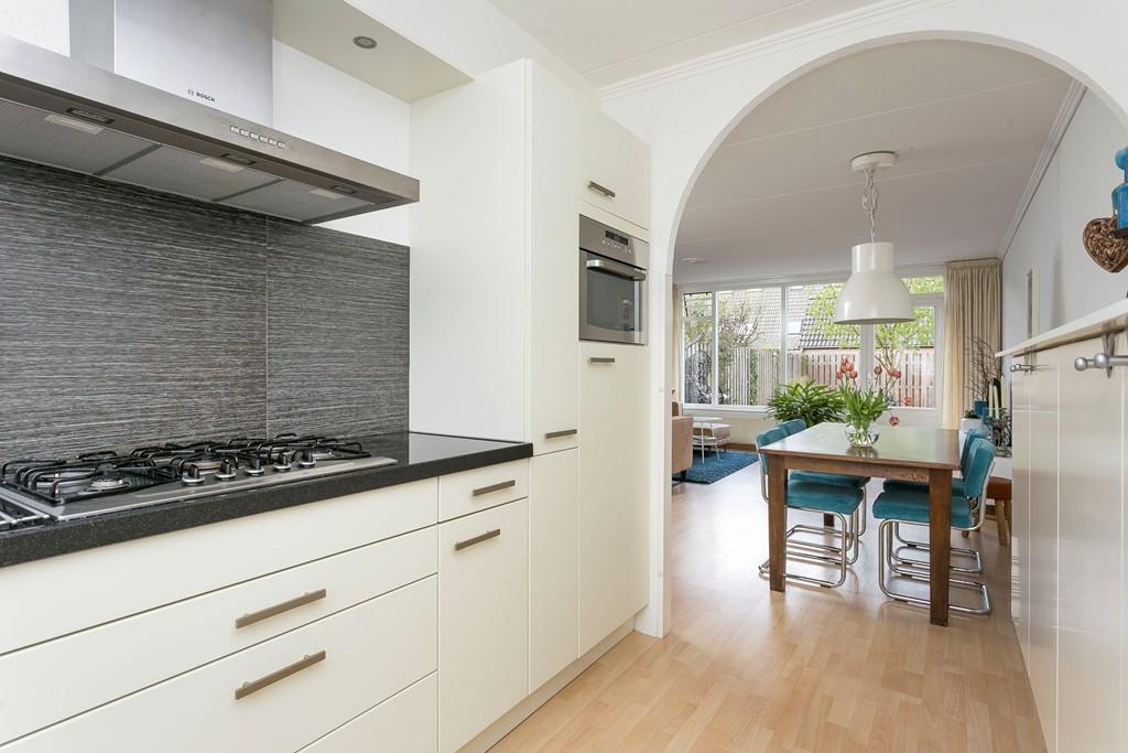 Entree, hal en deur naar de inpandige berging. Meterkast, toilet met fonteintje en een praktische garderobekast. Deur naar de woonkamer. De woonkamer is royaal en tuingericht en is voorzien van een vaste kast en een deur naar de tuin. De open keuken is aan de voorzijde gelegen en is in 2008 geheel vernieuwd. De werkbladen zijn van composiet en de keuken is voorzien van diverse inbouwapparatuur zoals een koelkast met diepvriesvakje, een combi-oven, een 5-pits gasfornuis en en afzuigkap (2015). Voorts is er nog een vaatwasser en een apothekerskast. De gehele begane grond is voorzien van een mooie laminaatvloer.