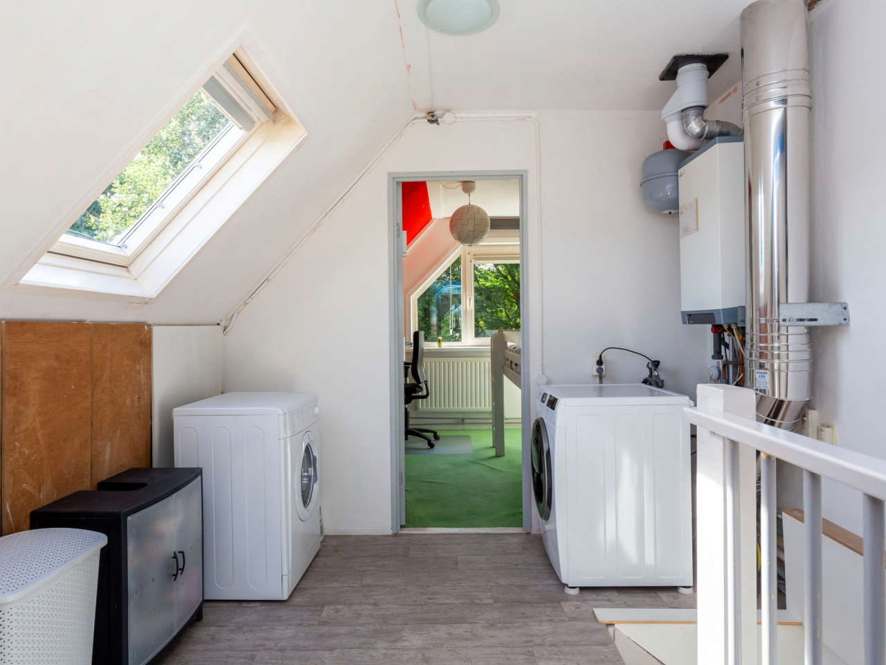 Via een open houten trap bereikt u de voorzolder met Velux dakraam, aansluitingen voor de was-apparatuur, CV-ketel (merk Intergas – 2008 – in eigendom en gereviseerd in 2021) en een mechanische ventilatie box (merk: Itho, 2022). Twee slaapkamers waarvan één aan de voorkant en één aan de achterkant van de woning.