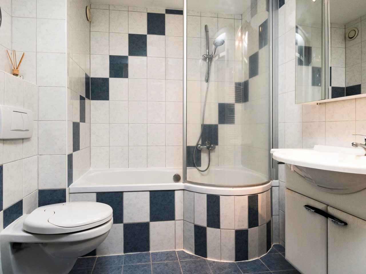 Overloop, 2 royale slaapkamers en toegang tot het balkon. Op het balkon is nog een extra afsluitbare bergruimte aanwezig. Vernieuwde badkamer (2003) ingedeeld met een wastafel, ligbad en 2e toilet.