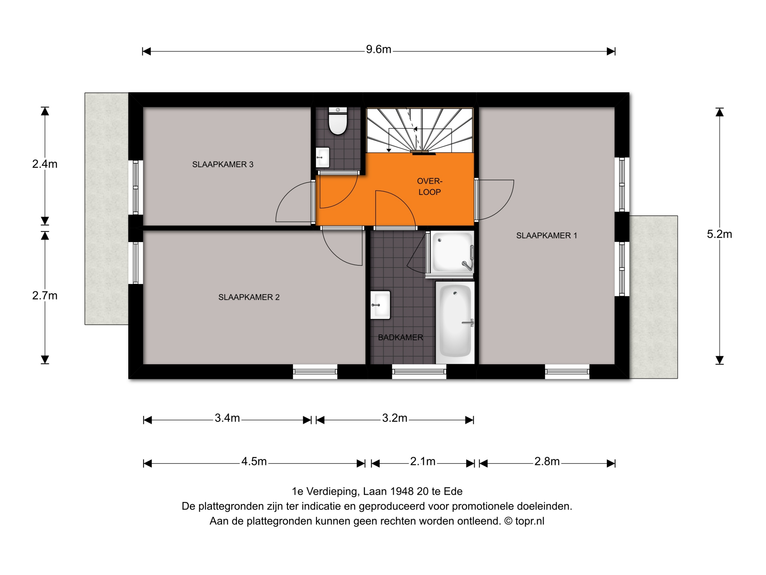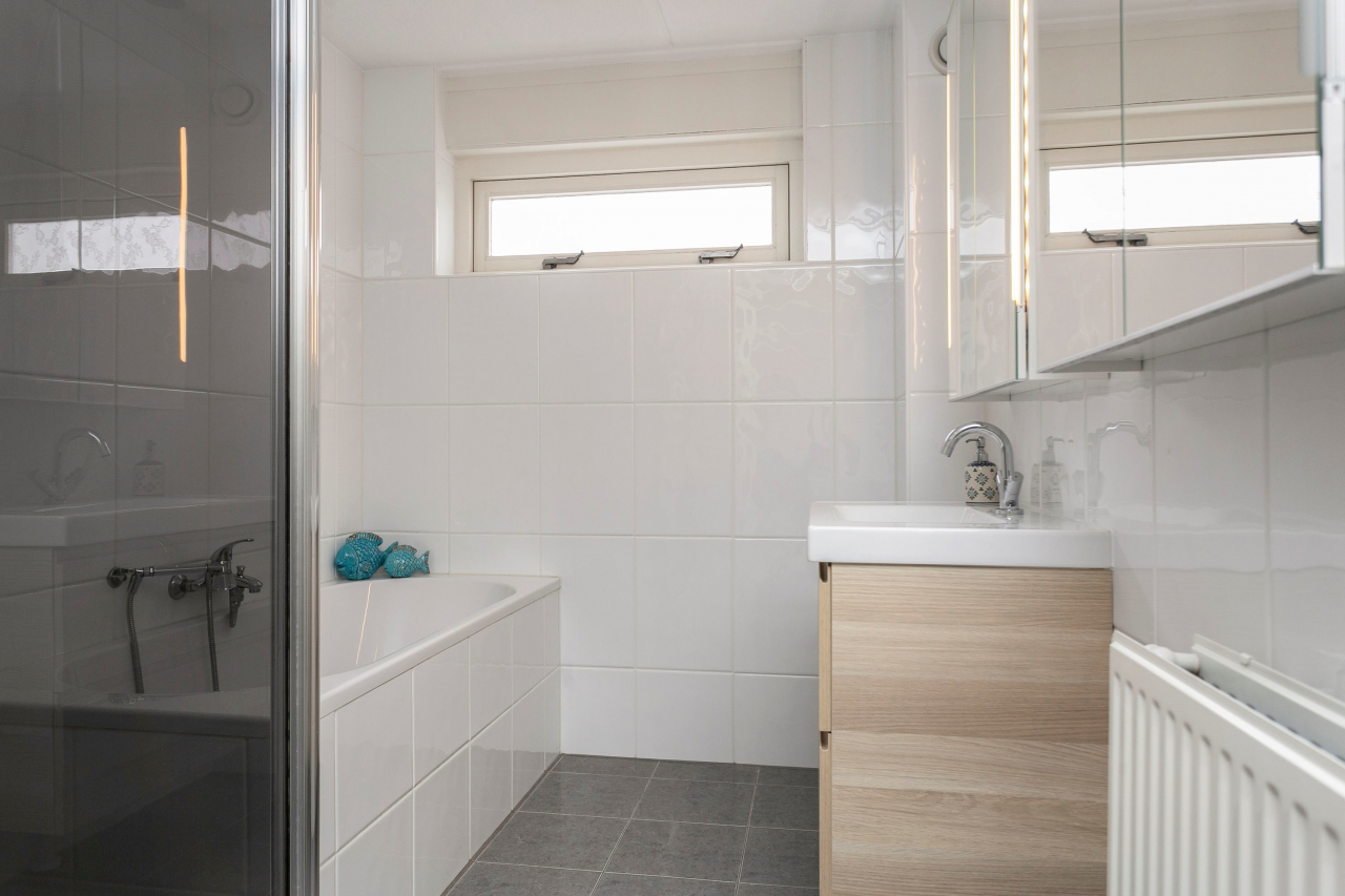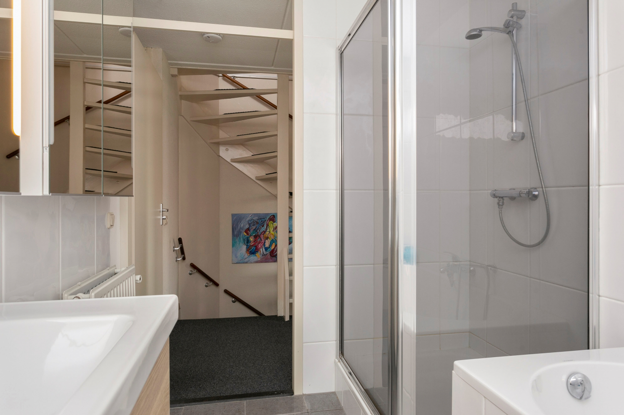 Overloop, 2e toilet met fonteintje, royale ouderslaapkamer aan de voorzijde van de woning en daarnaast nog twee slaapkamers, v.v. laminaatvloeren. De royale badkamer is van alle gemakken voorzien zoals een douche, bad en wastafelmeubel en heeft een neutrale kleurstelling.