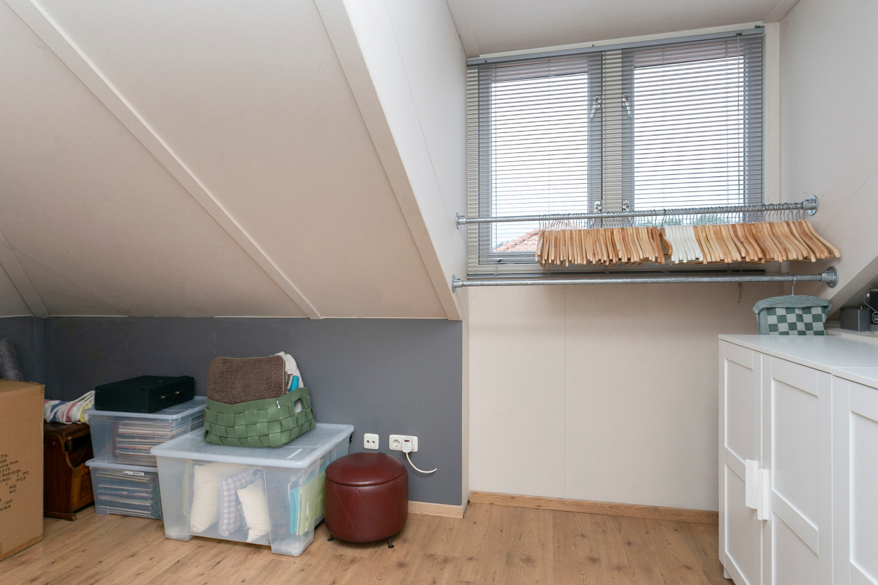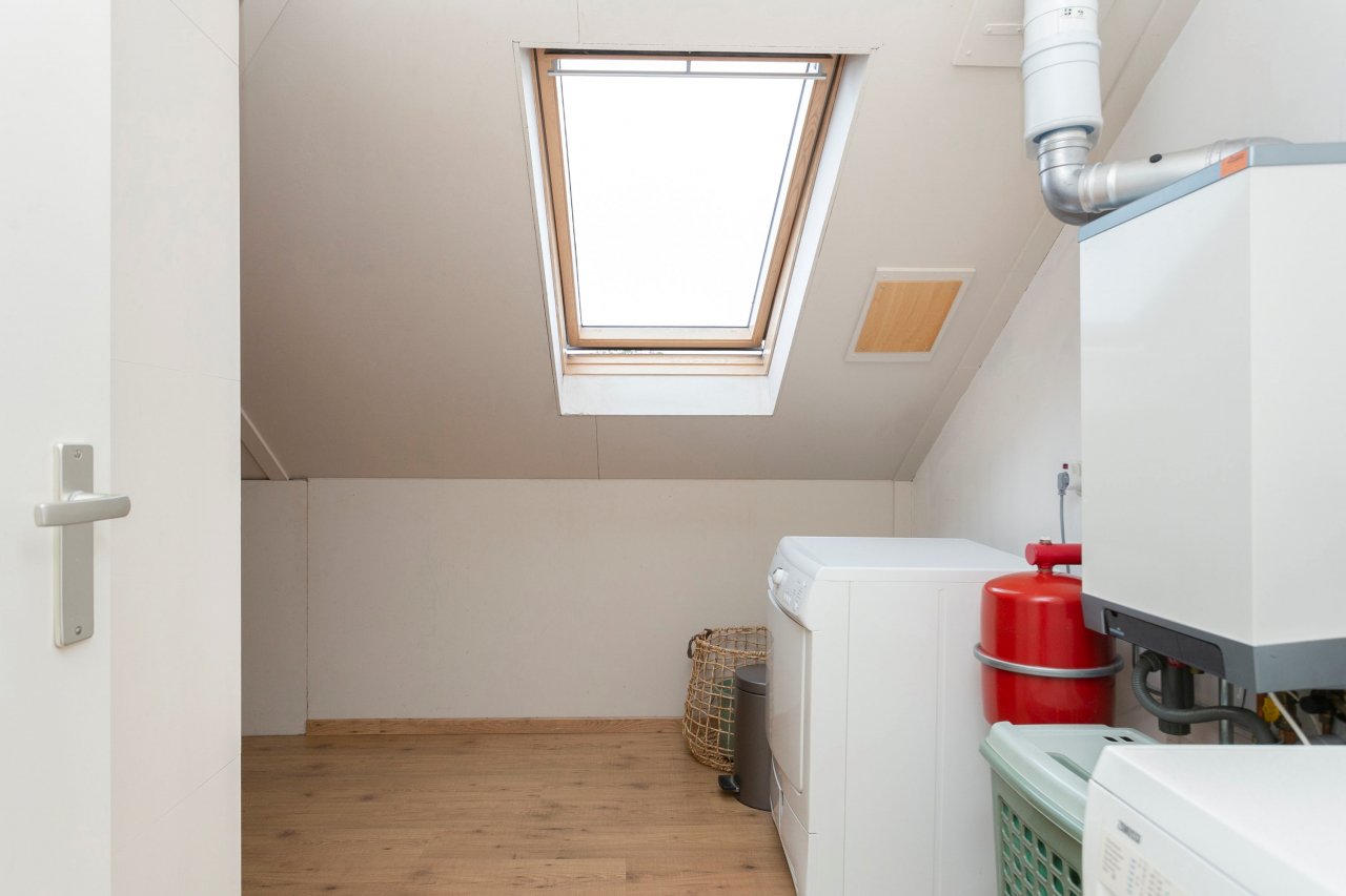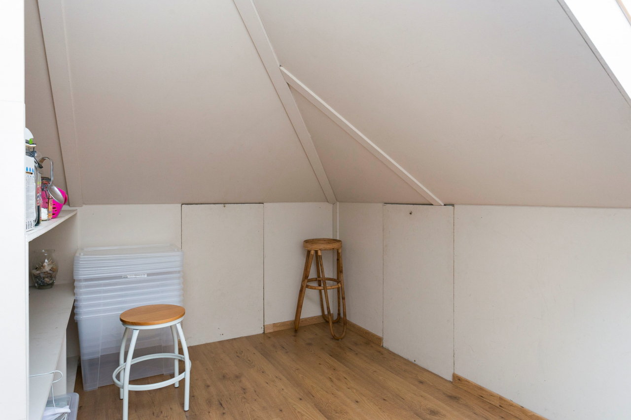 Via een vaste trap bereikt u de voorzolder die voorzien is van een dakkapel. Hier bevindt zich ook een ruimte met aansluitingen voor de was-apparatuur en de CV-ketel (Intergas, 2004). Tevens is er nog een Veluxraam en veel bergruimte achter de knieschotten. De mogelijkheid bestaat om hier nog een extra slaap- of hobbykamer te realiseren.