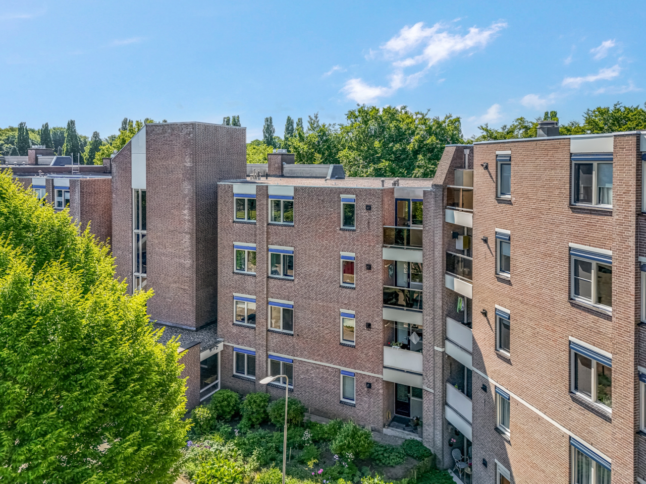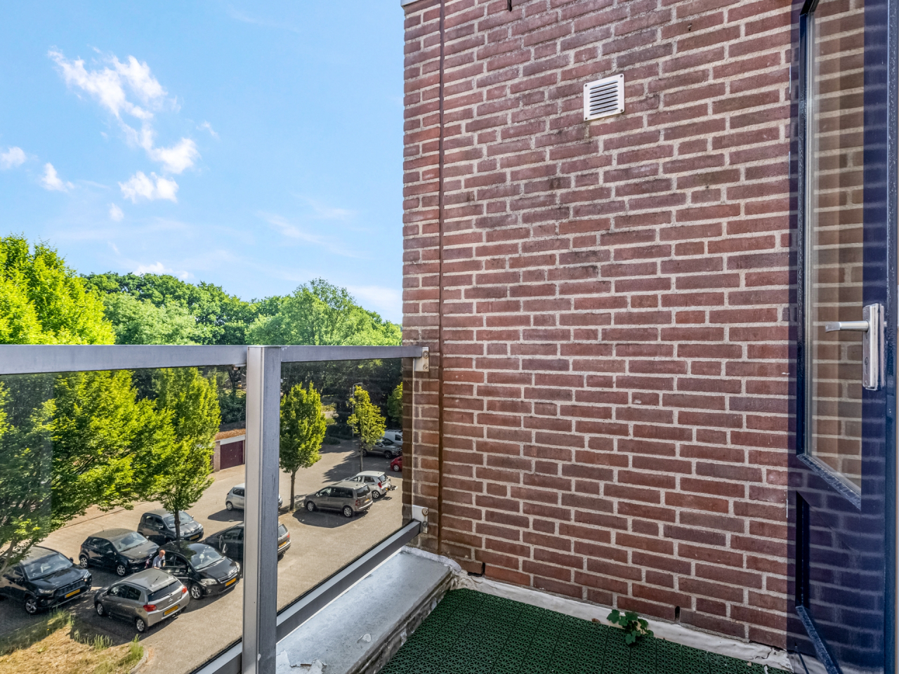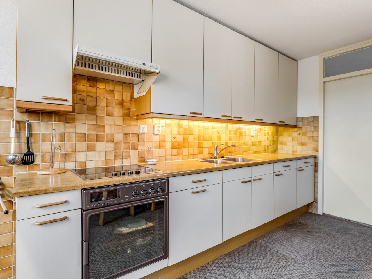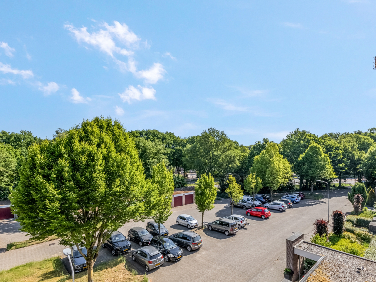 Het appartement bevindt zich op de vierde en bovenste woonlaag. Entree, hal met videofoon, garderobehoek, meterkast en toilet met fonteintje. De royale woonkamer is dankzij de grote raampartijen ook lekker licht. Vanuit de woonkamer heeft u toegang tot het ruime balkon met zonwering. Het balkon met de elektrisch bedienbare zonwering is op het zuiden gelegen en biedt een uniek vrij uitzicht op het groen. De keuken is voorzien van een dubbele spoelbak, een kookplaat, afzuigkap, losse koel-vriescombinatie (ter overname), oven en voldoende opbergruimte. Vanuit de keuken is het op het noorden gelegen tweede balkon bereikbaar. Op onze eigen website kunt u gebruik maken van ons interactieve zon/schaduwstand systeem waarbij u in alle jaargetijden de zon- en schaduwstand ten opzichte van het appartement kunt zien. Technische ruimte met CV-ketel (Bj. 2017 – in eigendom), de mechanische ventilatie en aansluitingen voor wasmachine en droger. Verder beschikt het appartement over drie slaapkamers van een goed formaat. De volledig betegelde badkamer is voorzien van een wastafel met spiegel, inloopdouche, een radiator en mechanische ventilatie. De woning is grotendeels voorzien van tapijt.