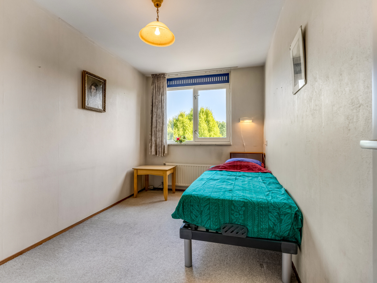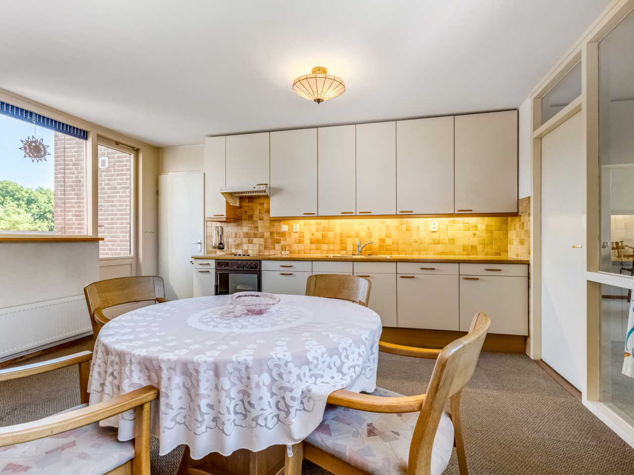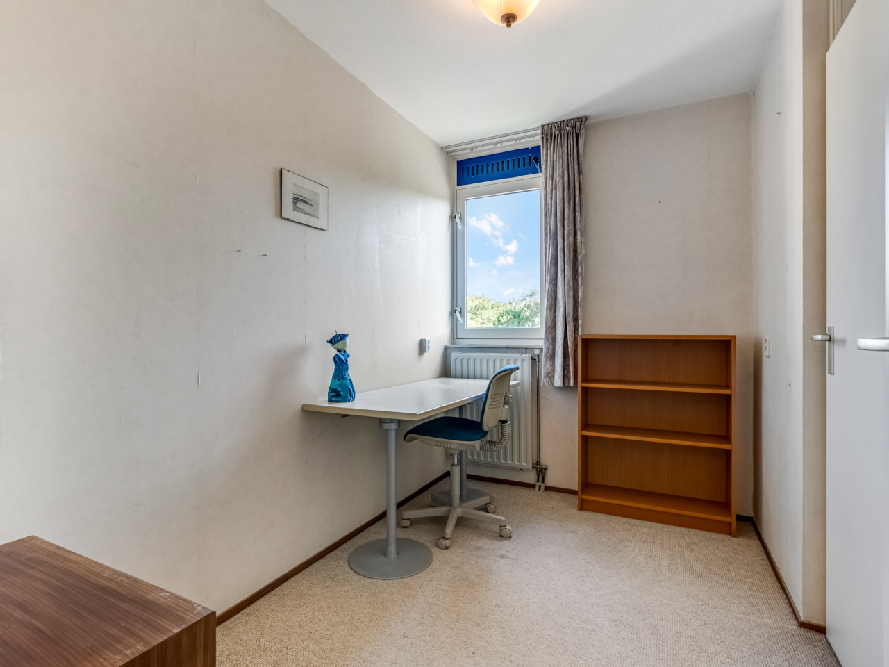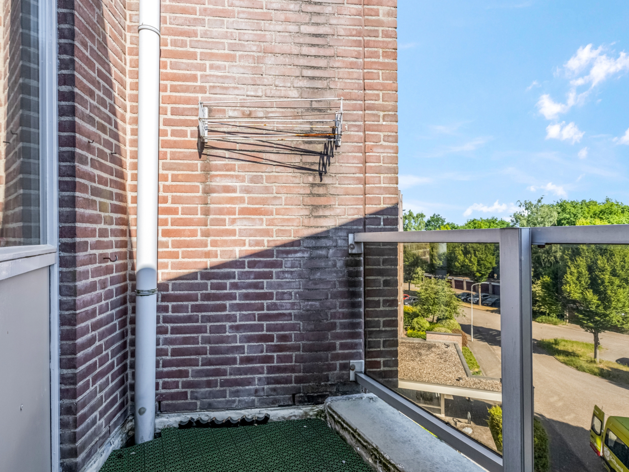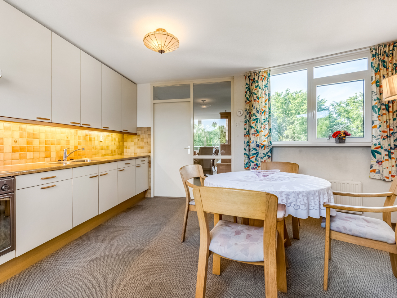 Het appartement bevindt zich op de vierde en bovenste woonlaag. Entree, hal met videofoon, garderobehoek, meterkast en toilet met fonteintje. De royale woonkamer is dankzij de grote raampartijen ook lekker licht. Vanuit de woonkamer heeft u toegang tot het ruime balkon met zonwering. Het balkon met de elektrisch bedienbare zonwering is op het zuiden gelegen en biedt een uniek vrij uitzicht op het groen. De keuken is voorzien van een dubbele spoelbak, een kookplaat, afzuigkap, losse koel-vriescombinatie (ter overname), oven en voldoende opbergruimte. Vanuit de keuken is het op het noorden gelegen tweede balkon bereikbaar. Op onze eigen website kunt u gebruik maken van ons interactieve zon/schaduwstand systeem waarbij u in alle jaargetijden de zon- en schaduwstand ten opzichte van het appartement kunt zien. Technische ruimte met CV-ketel (Bj. 2017 – in eigendom), de mechanische ventilatie en aansluitingen voor wasmachine en droger. Verder beschikt het appartement over drie slaapkamers van een goed formaat. De volledig betegelde badkamer is voorzien van een wastafel met spiegel, inloopdouche, een radiator en mechanische ventilatie. De woning is grotendeels voorzien van tapijt.
