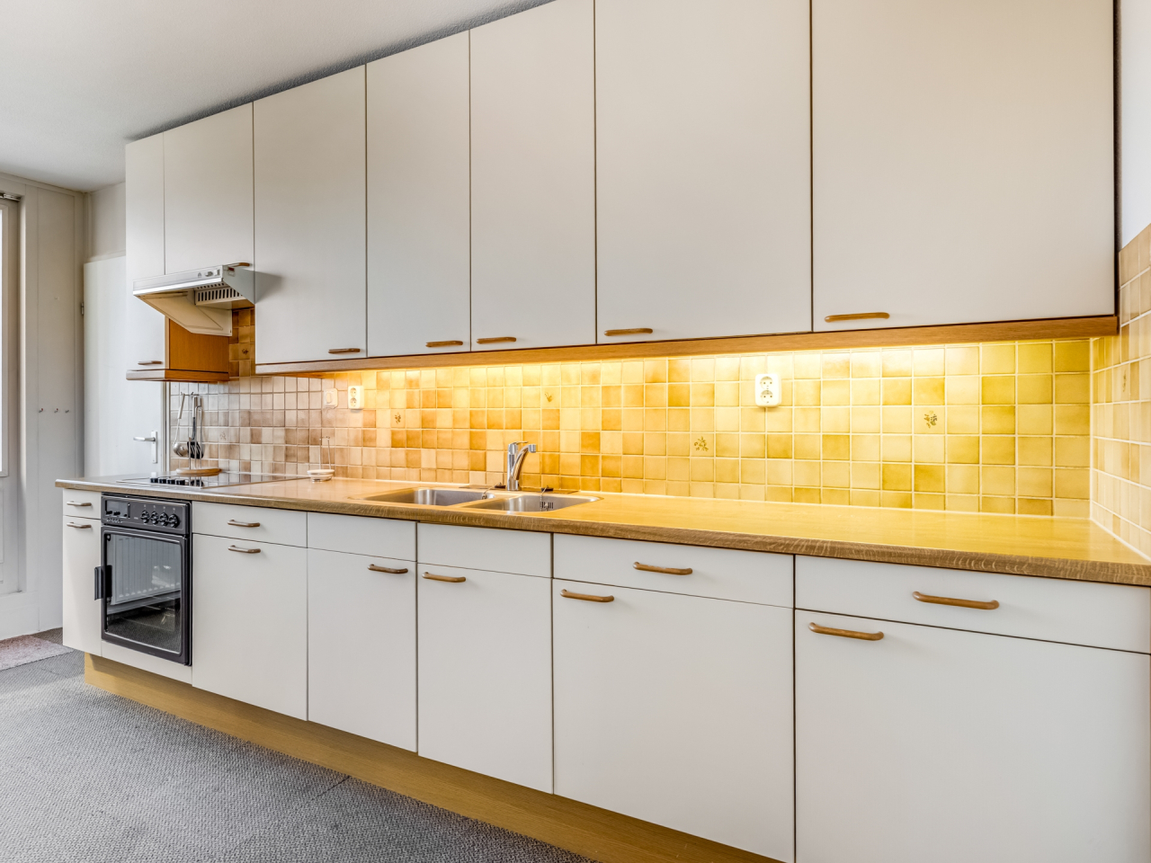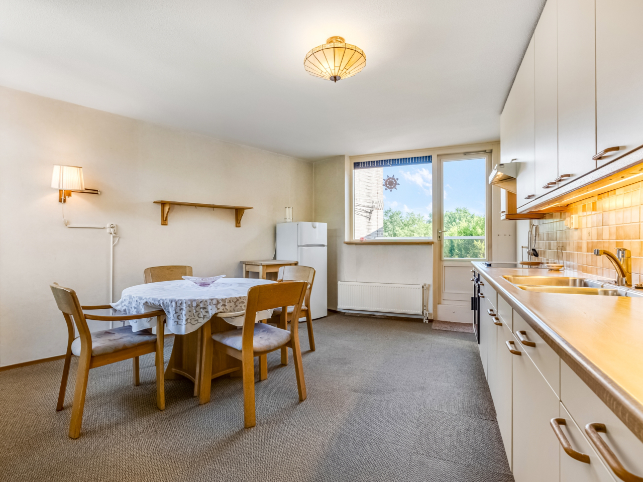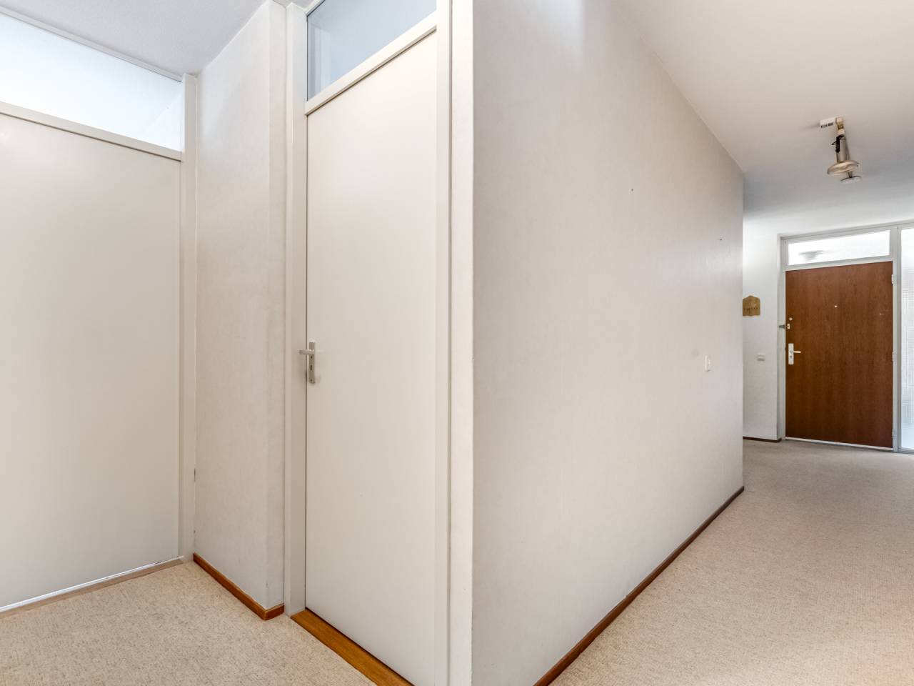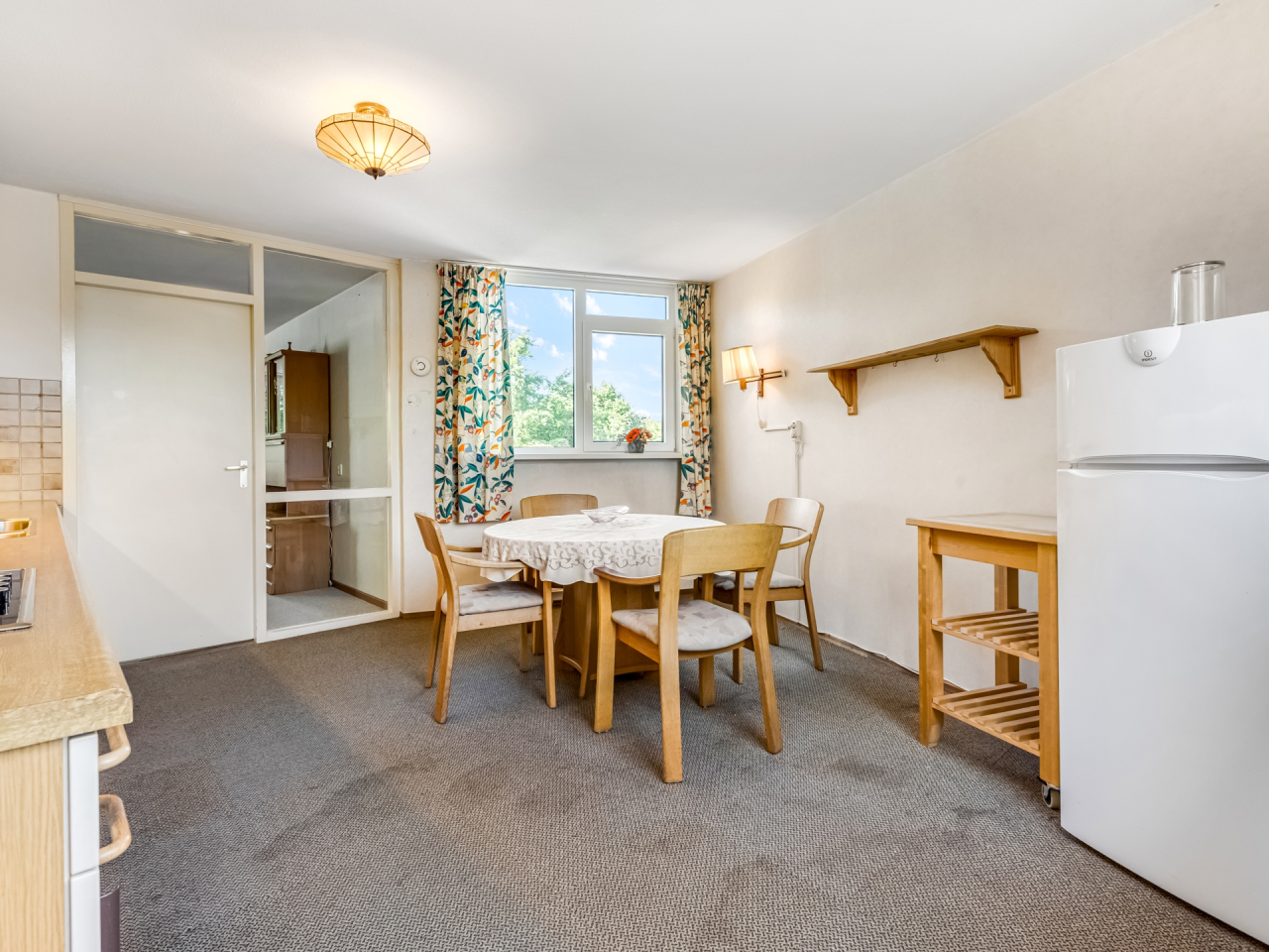 Het appartement bevindt zich op de vierde en bovenste woonlaag. Entree, hal met videofoon, garderobehoek, meterkast en toilet met fonteintje. De royale woonkamer is dankzij de grote raampartijen ook lekker licht. Vanuit de woonkamer heeft u toegang tot het ruime balkon met zonwering. Het balkon met de elektrisch bedienbare zonwering is op het zuiden gelegen en biedt een uniek vrij uitzicht op het groen. De keuken is voorzien van een dubbele spoelbak, een kookplaat, afzuigkap, losse koel-vriescombinatie (ter overname), oven en voldoende opbergruimte. Vanuit de keuken is het op het noorden gelegen tweede balkon bereikbaar. Op onze eigen website kunt u gebruik maken van ons interactieve zon/schaduwstand systeem waarbij u in alle jaargetijden de zon- en schaduwstand ten opzichte van het appartement kunt zien. Technische ruimte met CV-ketel (Bj. 2017 – in eigendom), de mechanische ventilatie en aansluitingen voor wasmachine en droger. Verder beschikt het appartement over drie slaapkamers van een goed formaat. De volledig betegelde badkamer is voorzien van een wastafel met spiegel, inloopdouche, een radiator en mechanische ventilatie. De woning is grotendeels voorzien van tapijt.