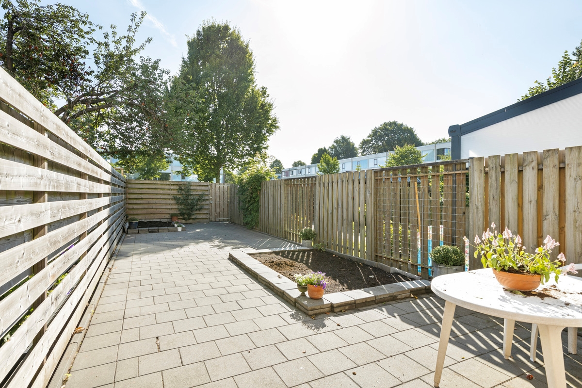 De vrije achtertuin is gelegen op het oosten en kan naar eigen inzicht verder worden ingedeeld. De ideale plek om in de ochtendzon te genieten van de mooie dagen!