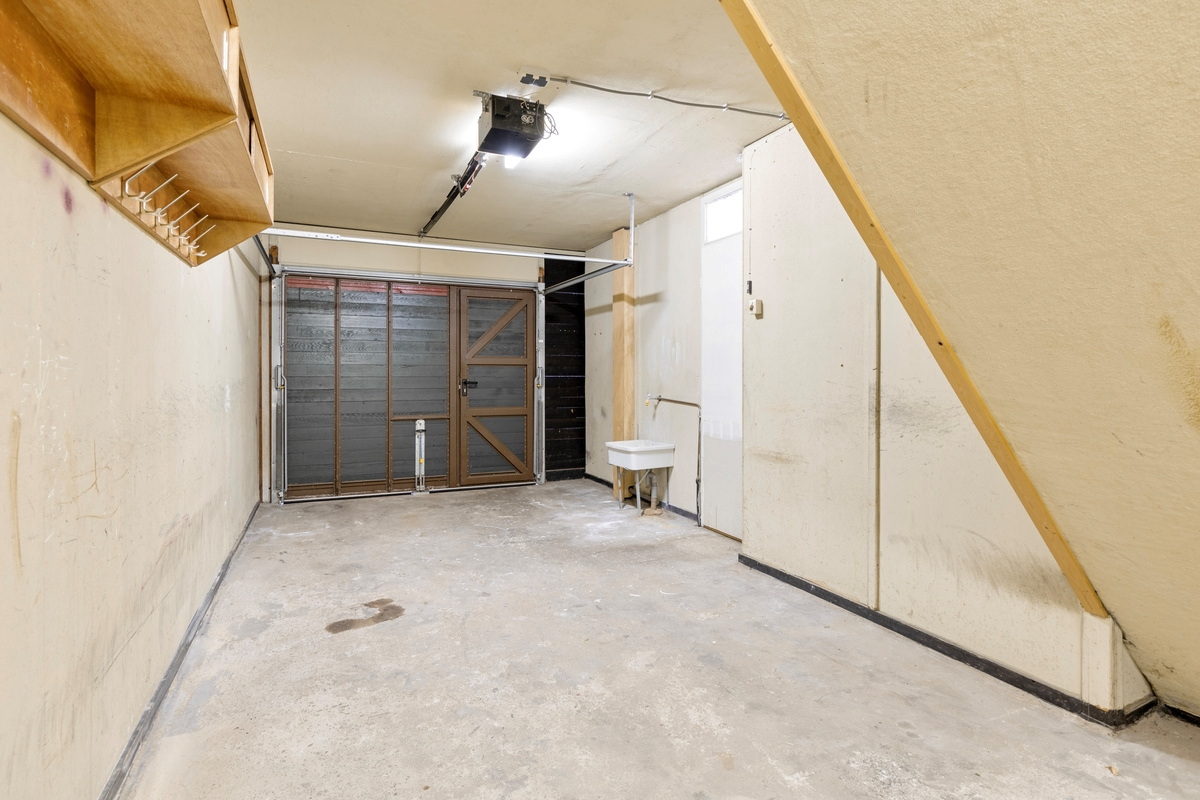 U kunt parkeren aan de voorzijde van de woning of in de inpandige garage/berging die voorzien is van een wasbak en een kanteldeur.