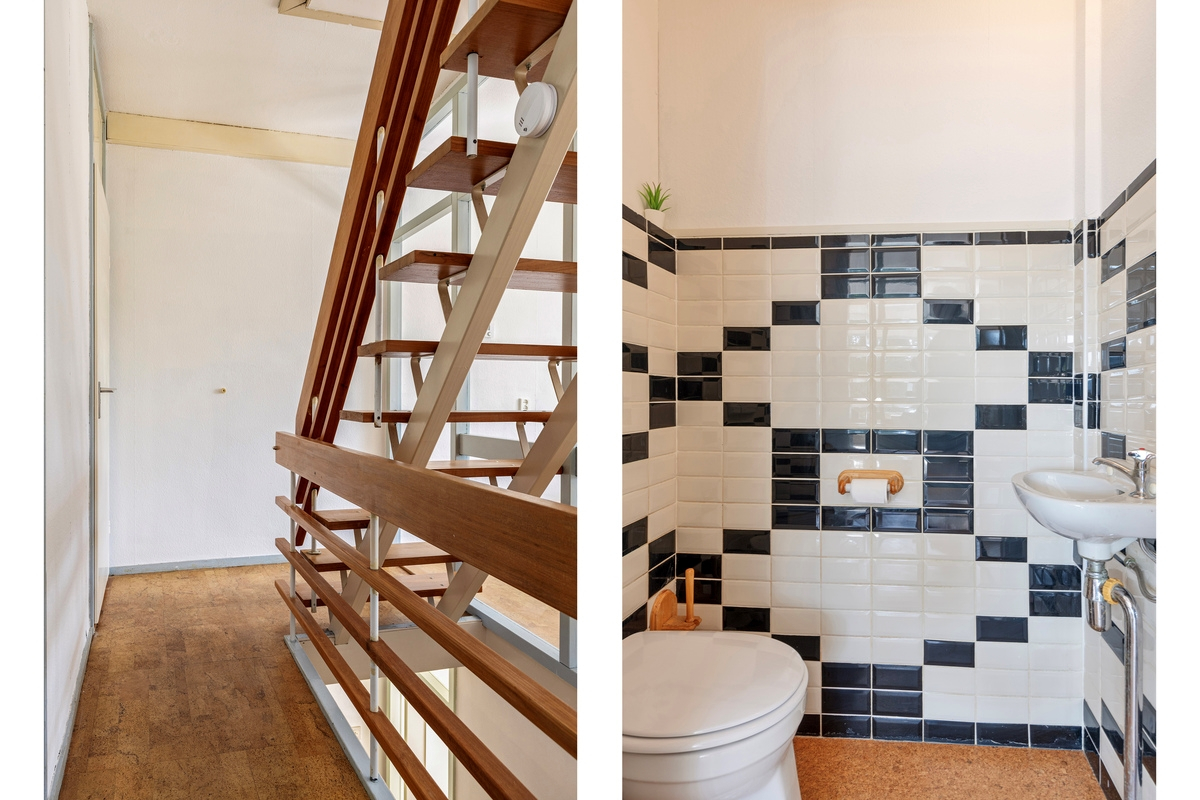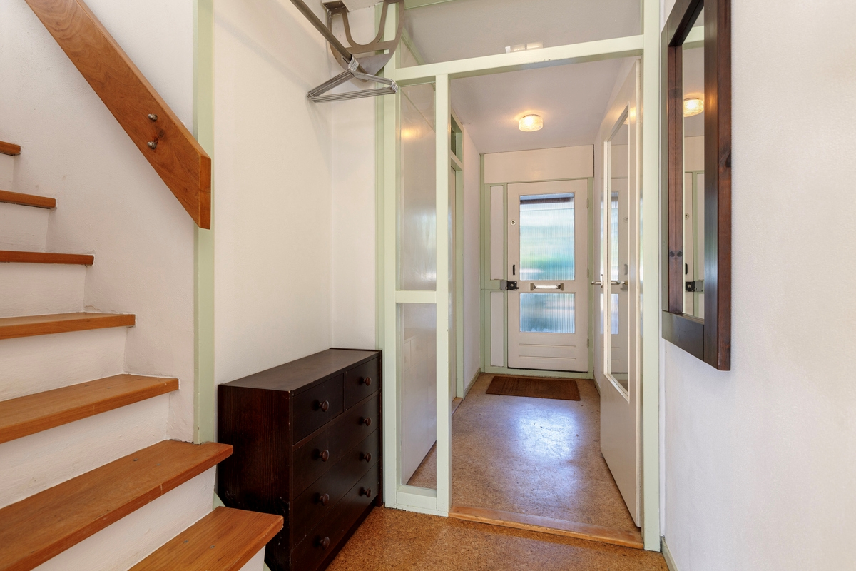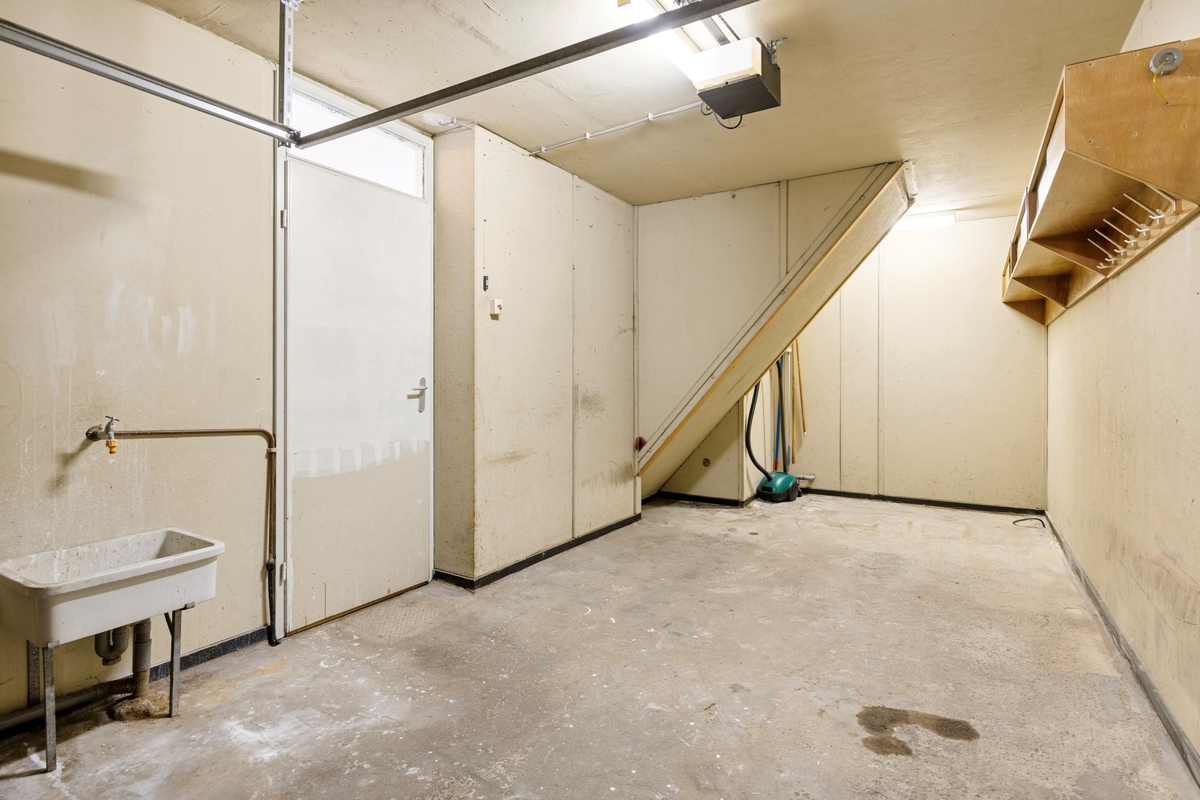 Entree, hal met meterkast, toegang naar de inpandige garage/berging met een wasbak en voorzien van een kanteldeur. Ruime tuinkamer met een vaste kast met daarin de aansluiting voor de wasmachine en een heerlijk uitzicht op de achtertuin. Deze multifunctionele ruimte is ideaal als werkkamer, een kantoor aan huis voor ZZP’ers, hobbykamer of als extra slaapkamer.