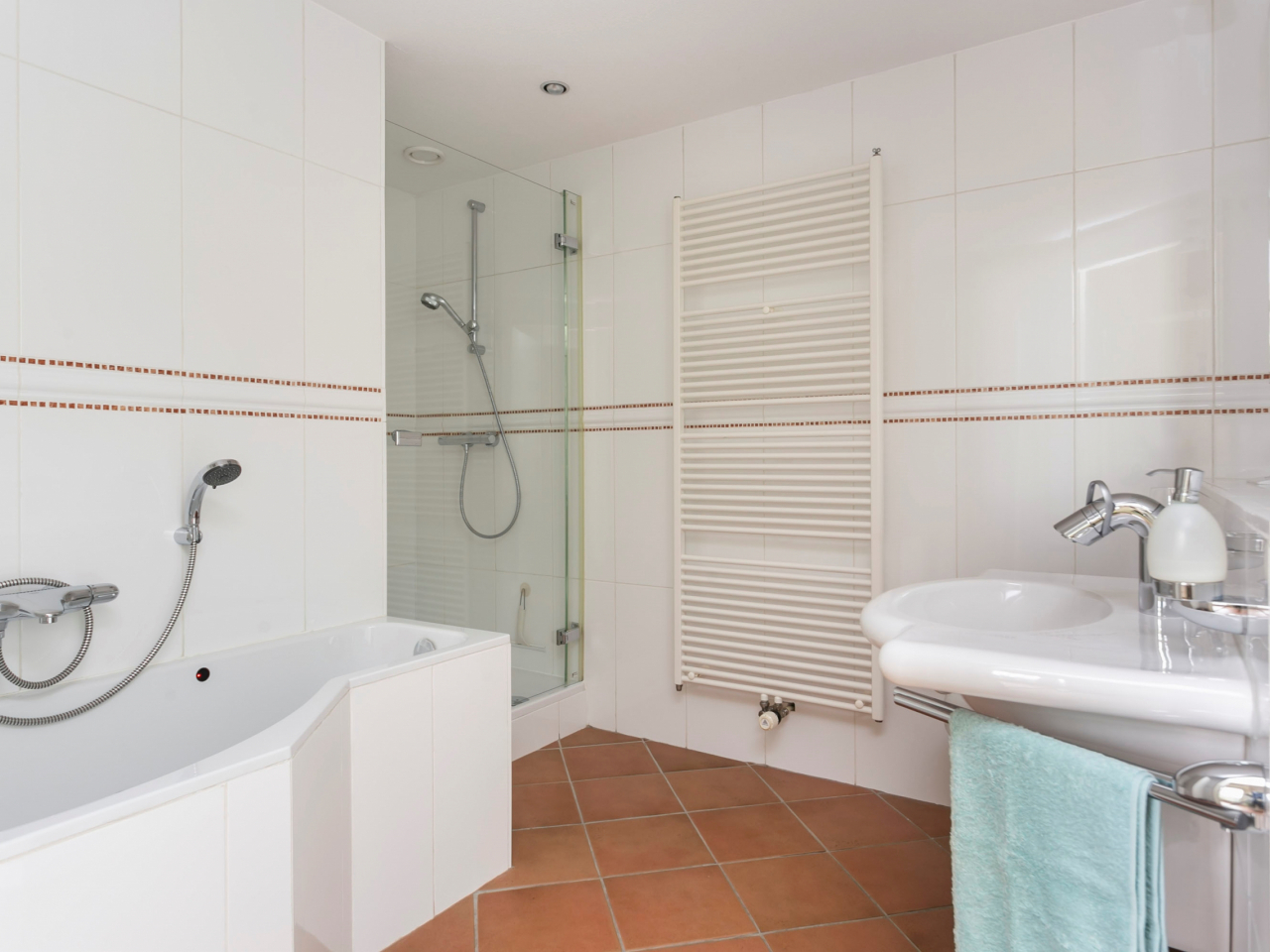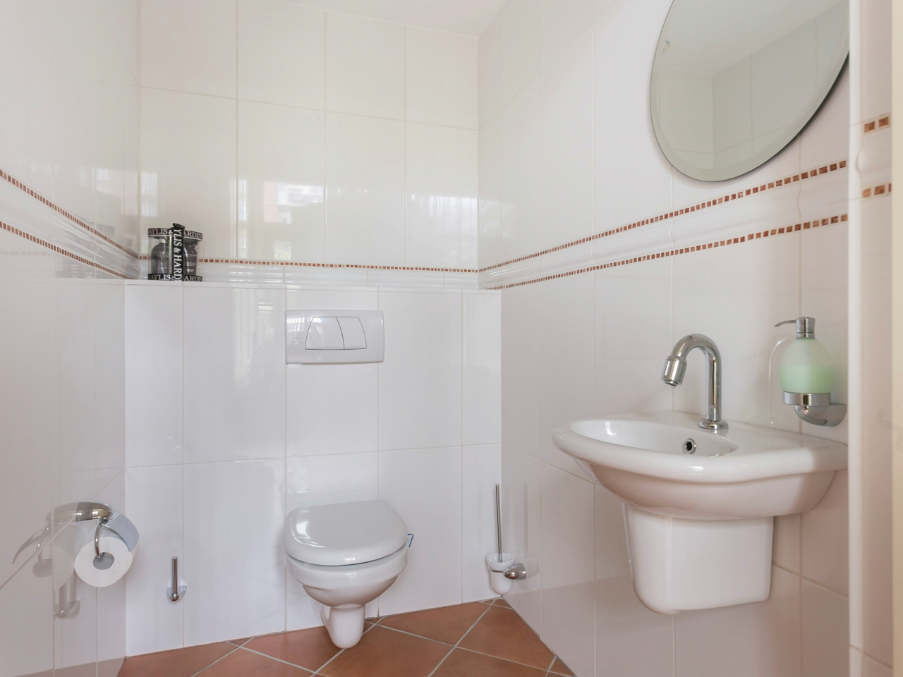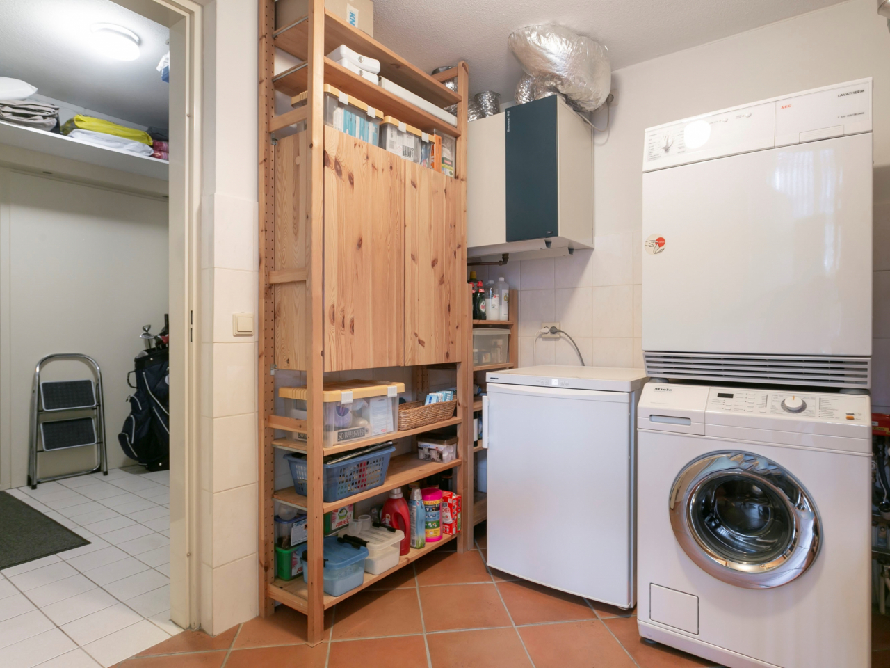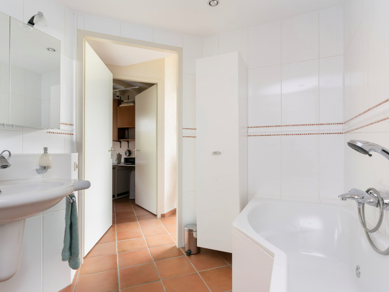 Achter de keuken is een ruime tweede hal met een deur naar de tuin, een toiletruimte met hangend toilet en fonteintje, een technische ruimte met HR-combiketel (Vaillant - 2001 - in eigendom), ventilatie-unit, WTW-installatie en wasmachine aansluiting. Achter de technische ruimte bevind zich nog een inpandige berging die voldoende ruimte biedt voor de fietsen en klusgereedschappen. Deze berging is overigens eveneens van buitenaf bereikbaar. De woning beschikt verder over 3 rustige slaapkamers die aan de achterzijde van de woning zijn gelegen. Dan is er nog een volledig betegelde badkamer met wastafel, daarboven een spiegelkast met verlichting (Whisperpool), een douchecabine, ligbad, handdoekradiator, ventilatie en een plafond met inbouwspotjes. Bijna alle vertrekken in de woning zijn voorzien van comfortabele vloerverwarming, met uitzondering van de master bedroom. Tevens is de woning voorzien van een centraal stofafzuiging systeem.