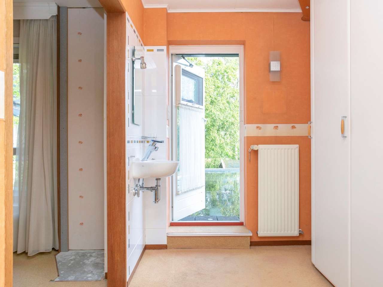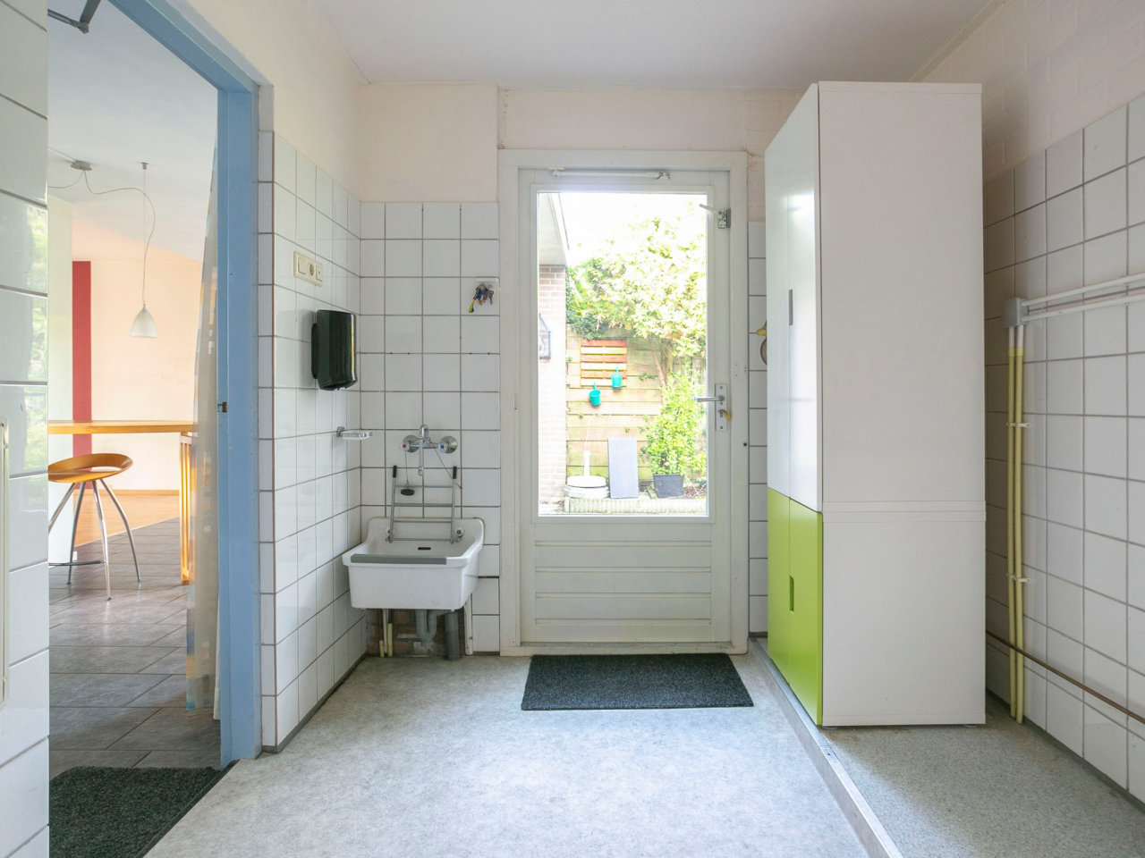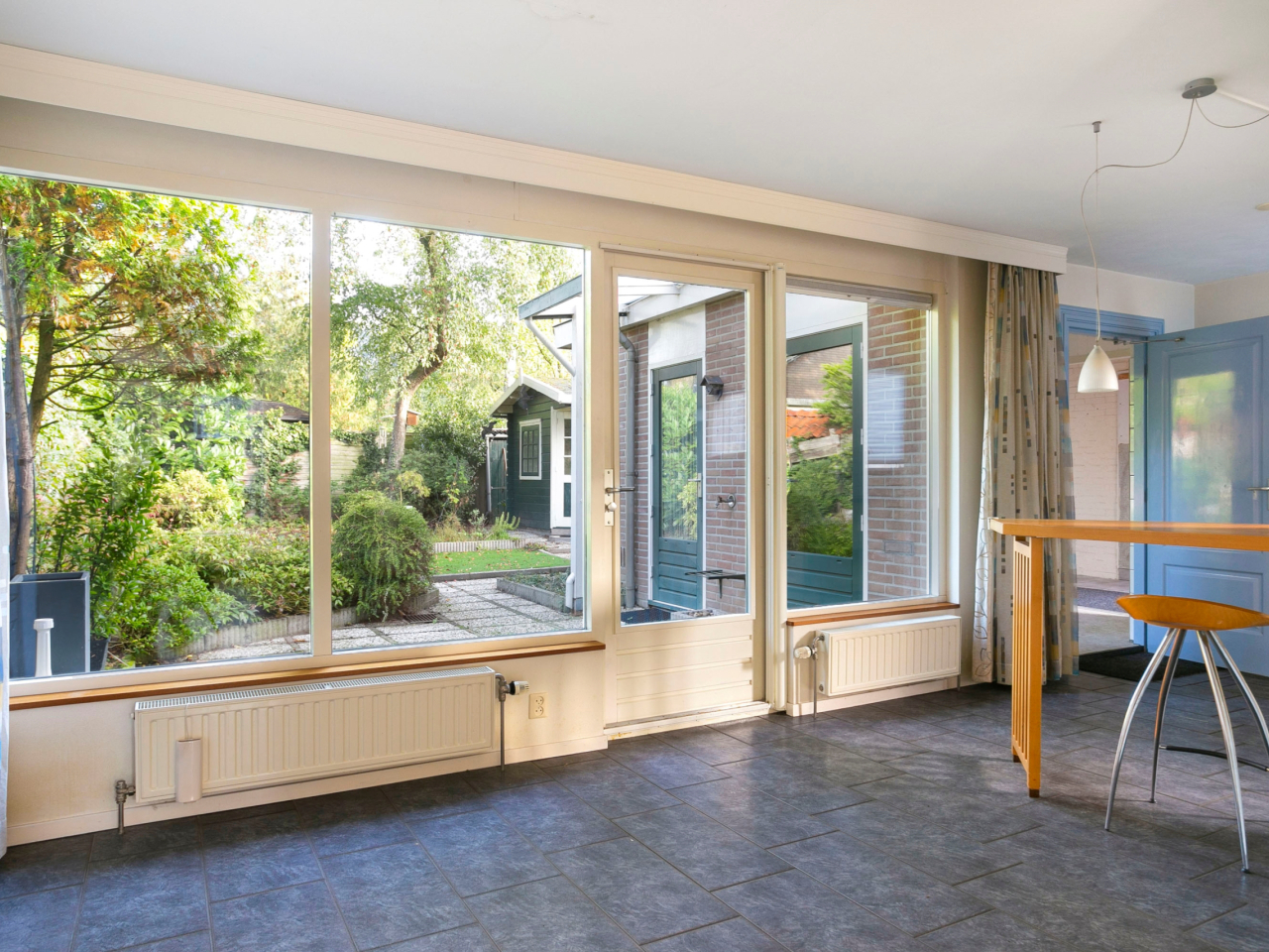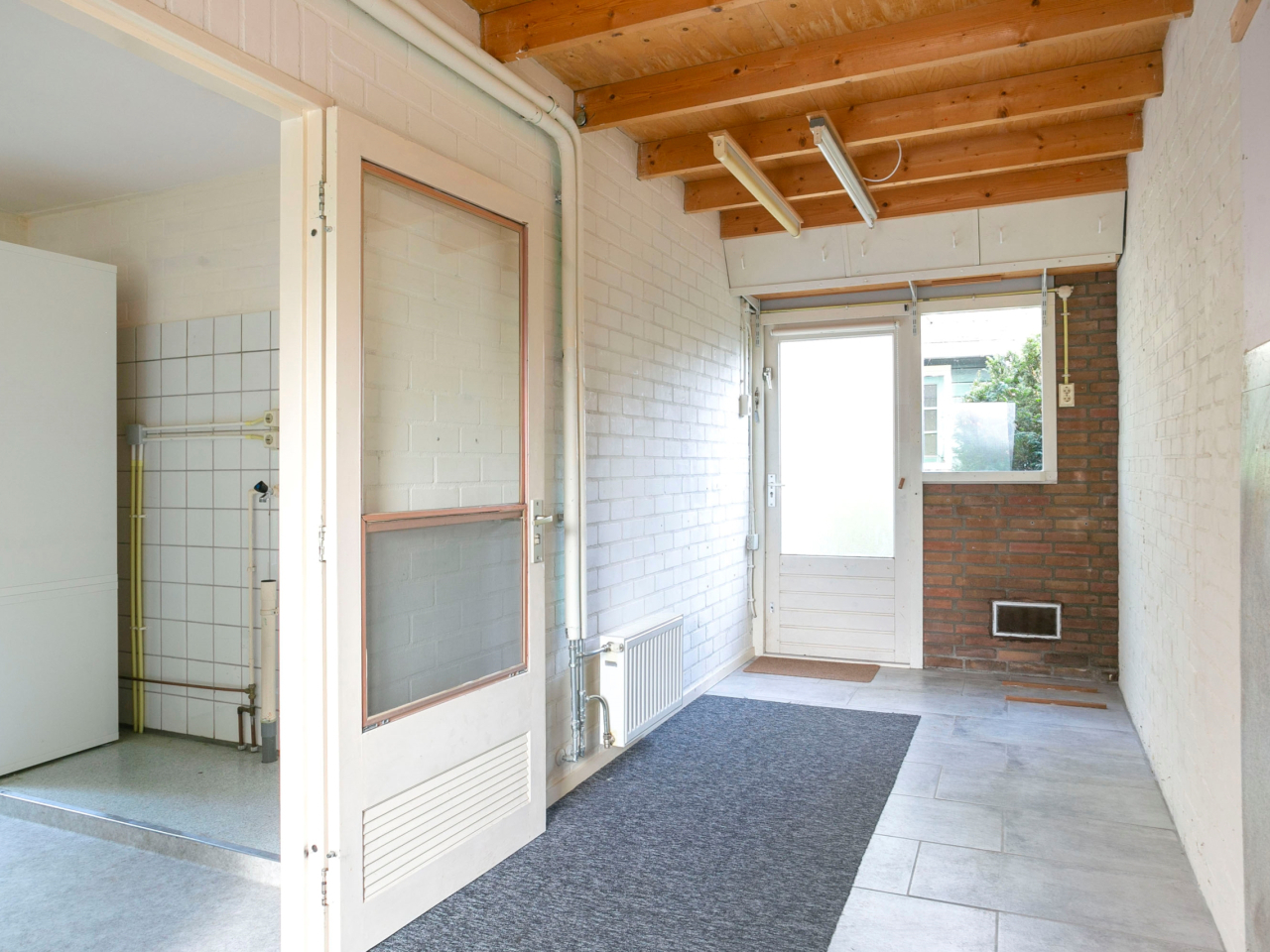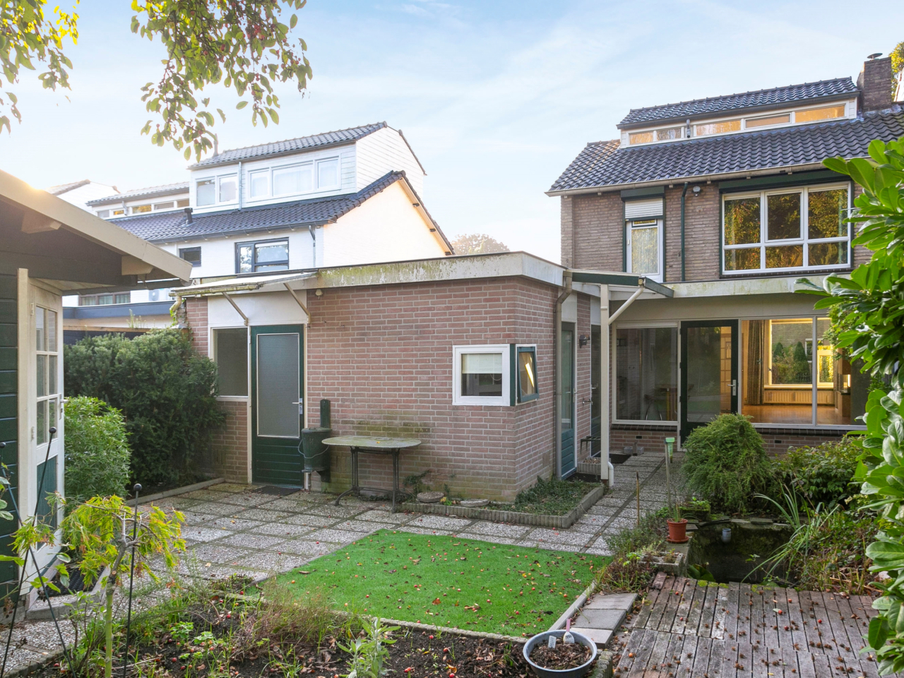 De achtertuin is eveneens via de bijkeuken bereikbaar. Aan de zijkant van de woning is er nog een inpandige berging waar ook de CV-ketel (2015) geïnstalleerd is. Achter de bijkeuken is buitenom nog een verwarmde werkkamer bereikbaar.