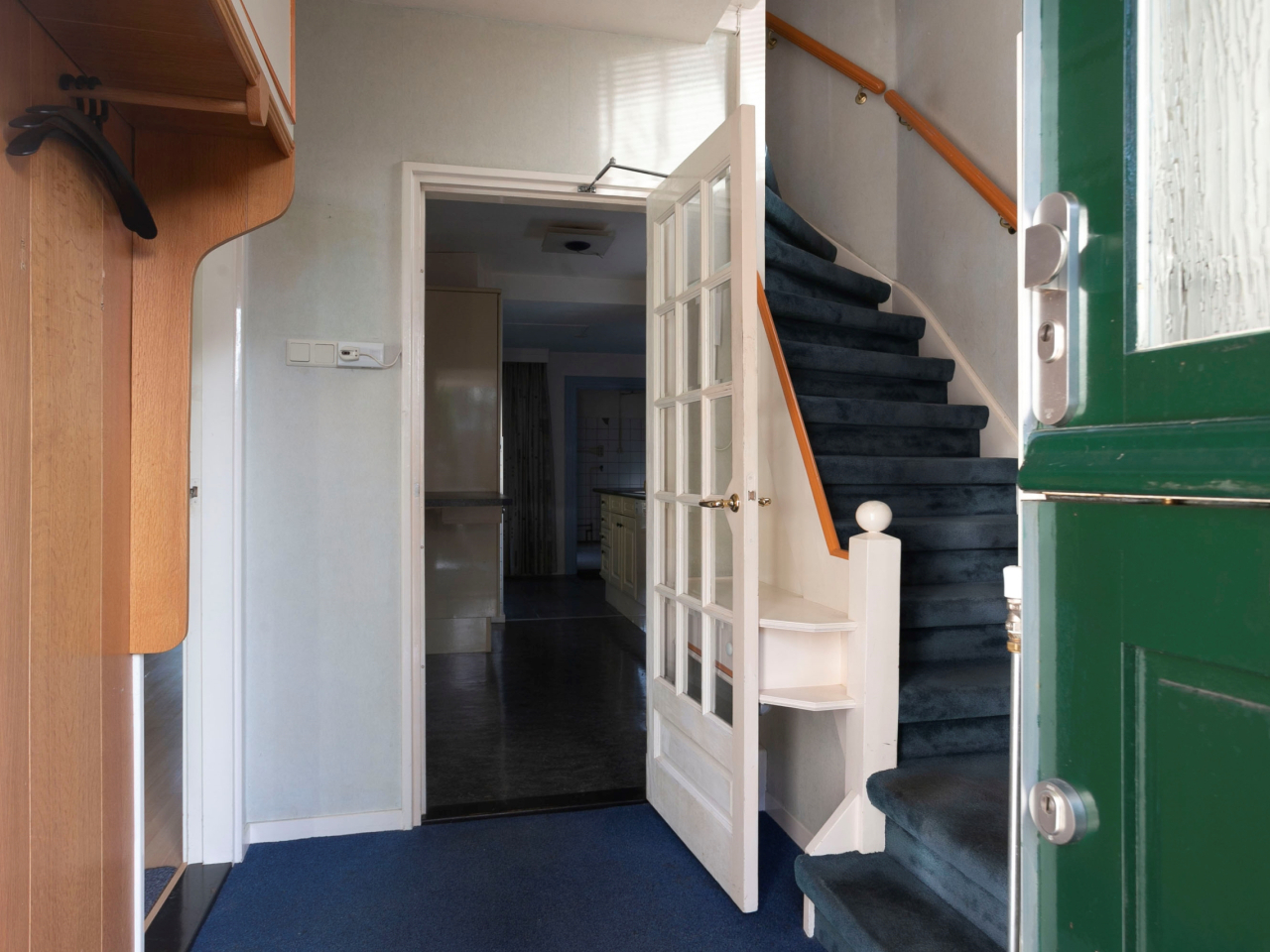 Je komt binnen in de hal; hier vind je de meterkast, de toiletruimte en de trap naar de eerste verdieping. De woonkamer is aan de achterzijde uitgebouwd, waardoor de totale leefruimte ruim 9 meter diep is. Bij het zitgedeelte is de schouw met inbouwgashaard sfeerbepalend. Dit is een prima plek om bij de haard te genieten van een drankje na een boswandeling. Aan de achterzijde van de woning in de aanbouw is er een deur naar de achtertuin. De halfopen keuken met aansluitend een ontbijtbar is voorzien van inbouwapparatuur zoals een oven, gaskookplaat, afzuigkap en koelkast.