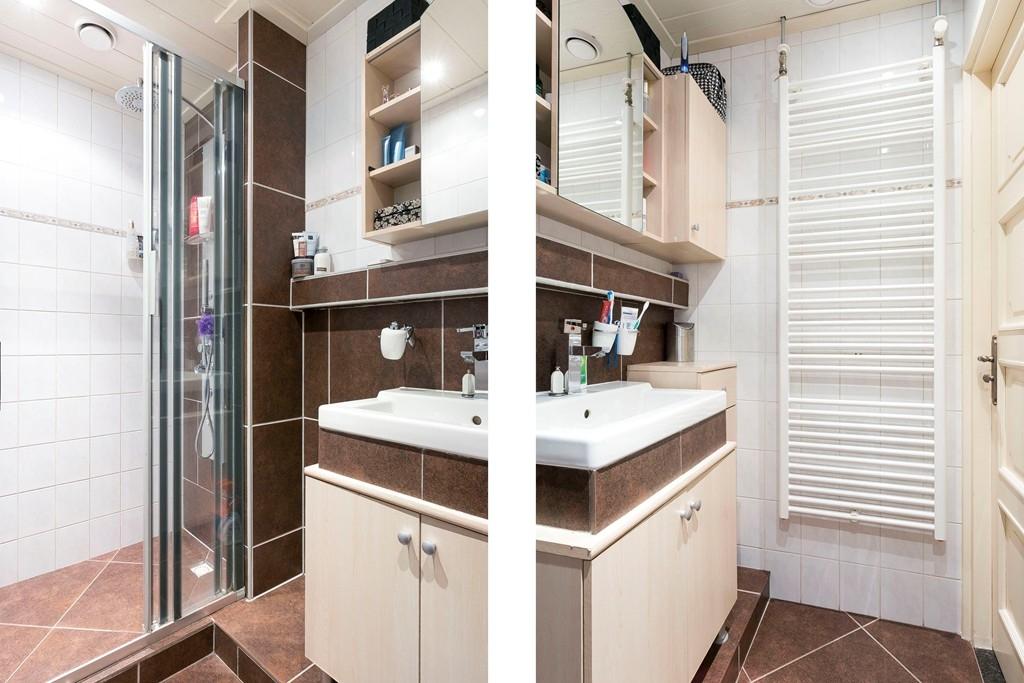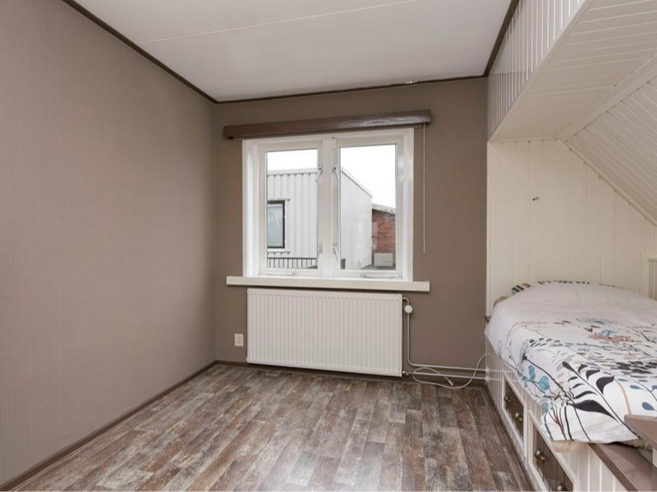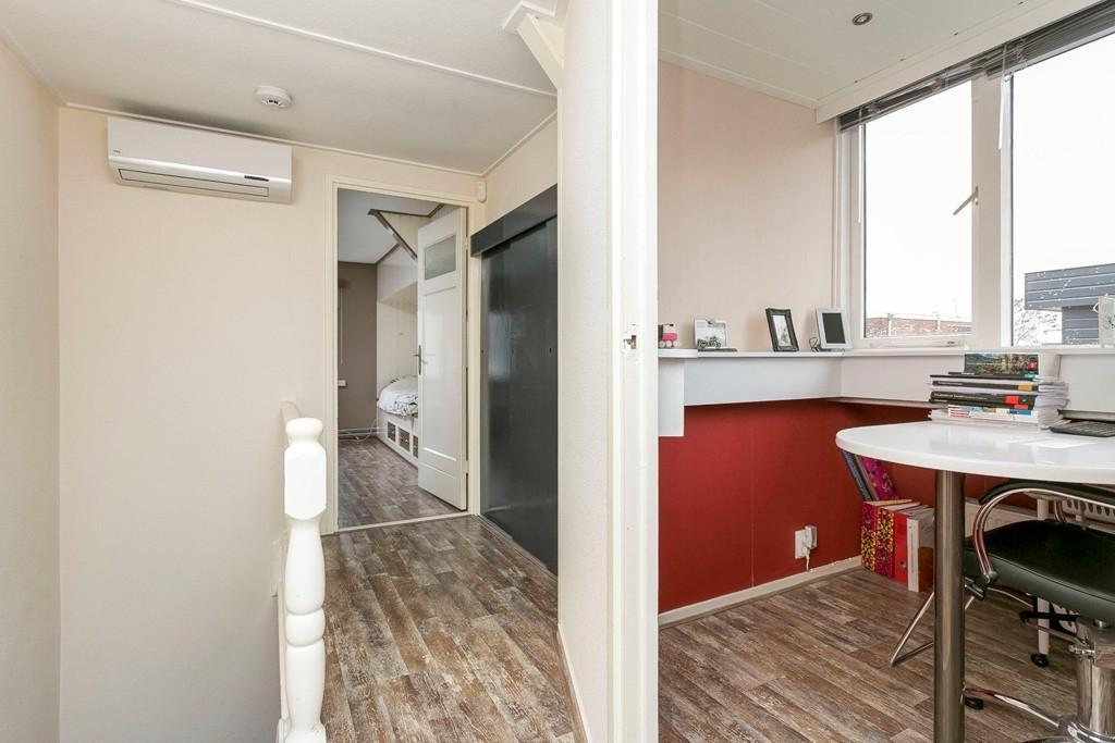 Overloop v.v. airco en vaste kast. Drie slaapkamers met laminaatvloer. Een slaapkamer is v.v. een vast bed, bureau en wastafel.