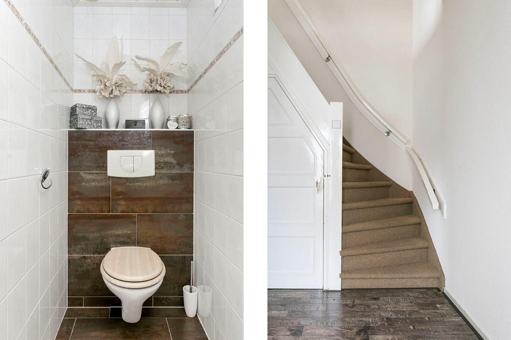 Entree, hal, kast met CV-ketel (Remeha, 2008) en aansluitingen voor wasmachine en droger. Dichte keuken met granieten werkblad en voorzien van de volgende inbouwapparatuur: Sfeervolle 4-pits gasfornuis met oven, afzuigkap, koelkast en vaatwasser (2016). Verder nog een praktische apothekerskast en ruimte voor een losse magnetron. Plavuizen vloer met vloerverwarming. Via luik bereikbare kelder. Badkamer met wastafelmeubel, douche, apart toilet en v.v. vloerverwarming en radiator. Gezellig woonkamer met laminaatvloer en sfeerhaard. Separate eetkamer.